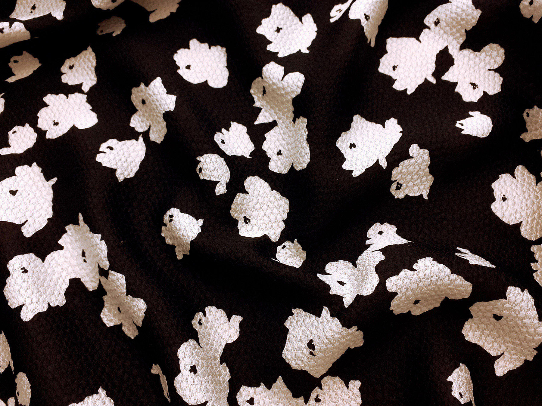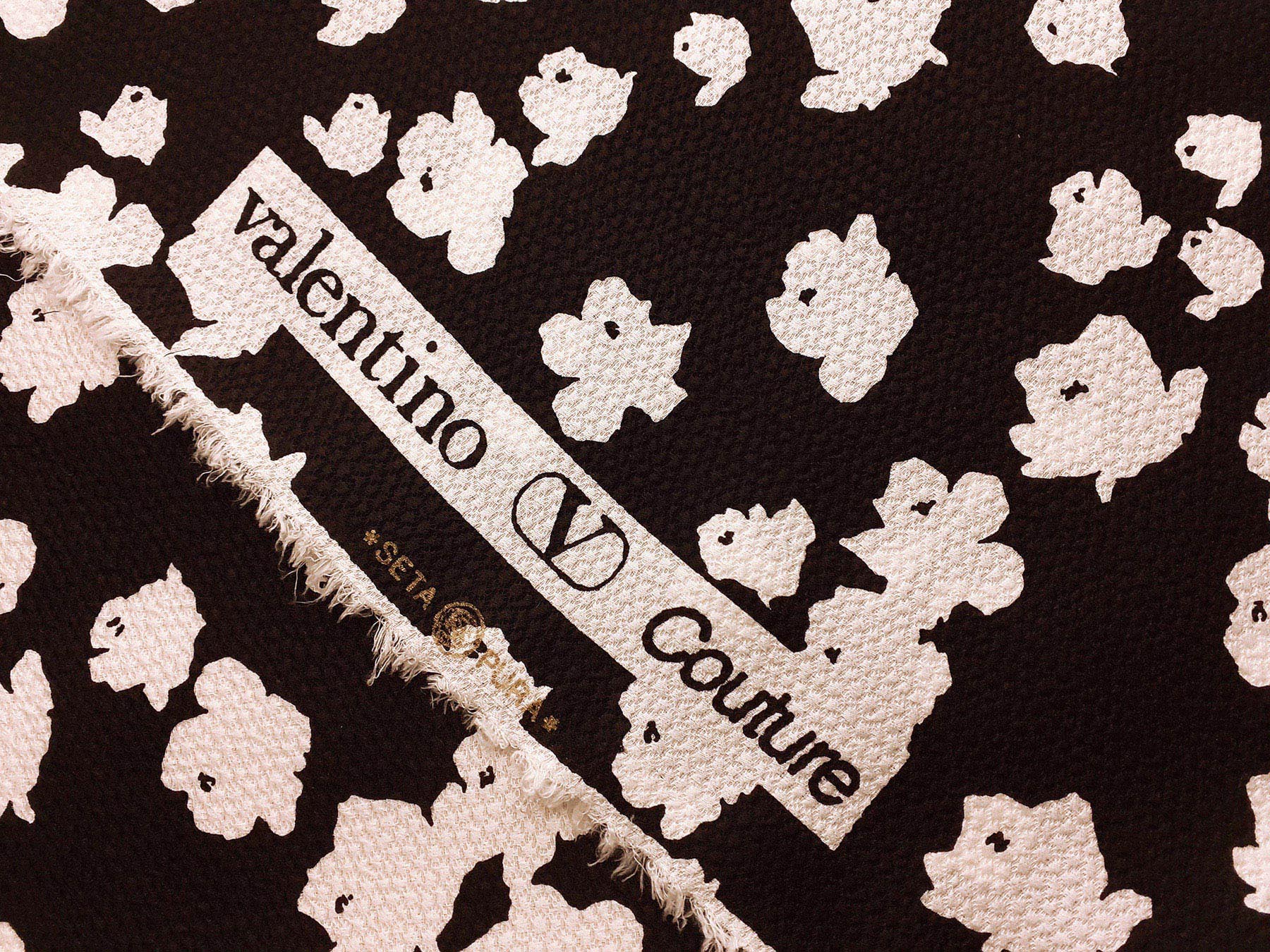Seta jacquard fantasia floreale su fondo nero. Valentino Couture