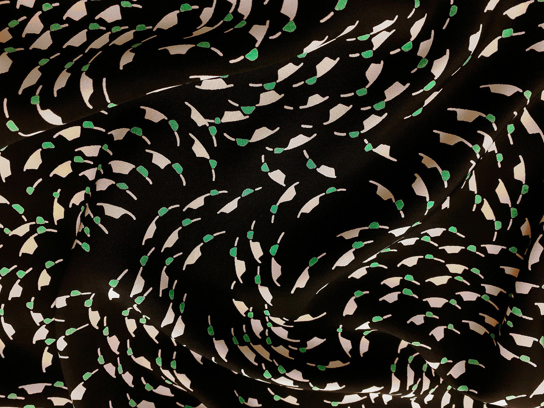 Crepe de Chine in seta fantasia astratta su fondo nero