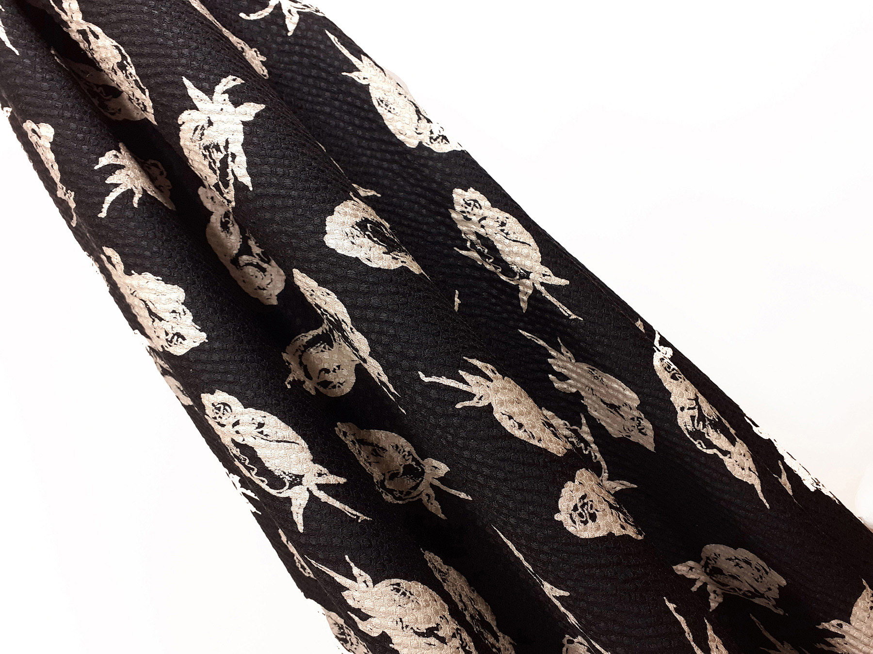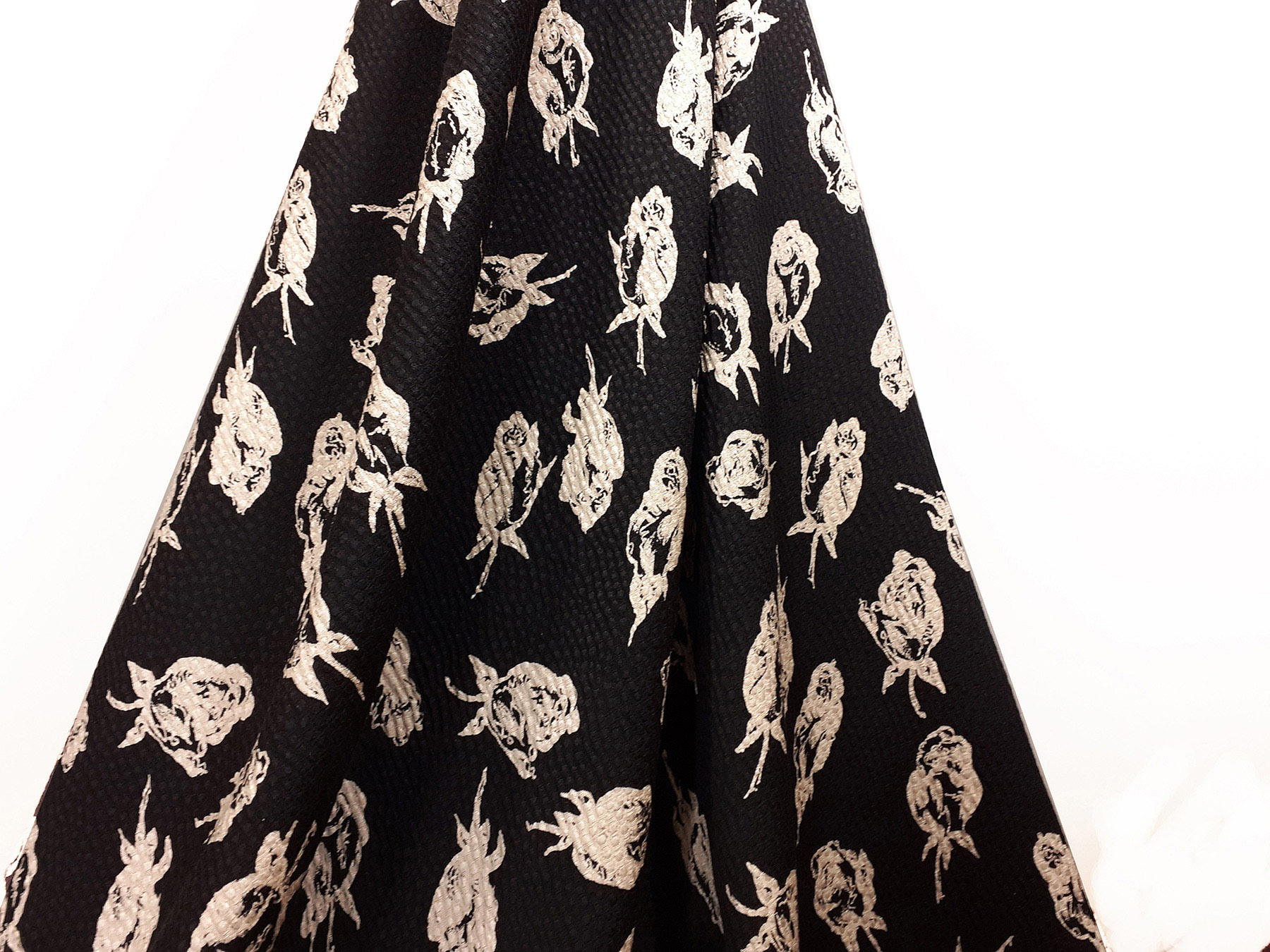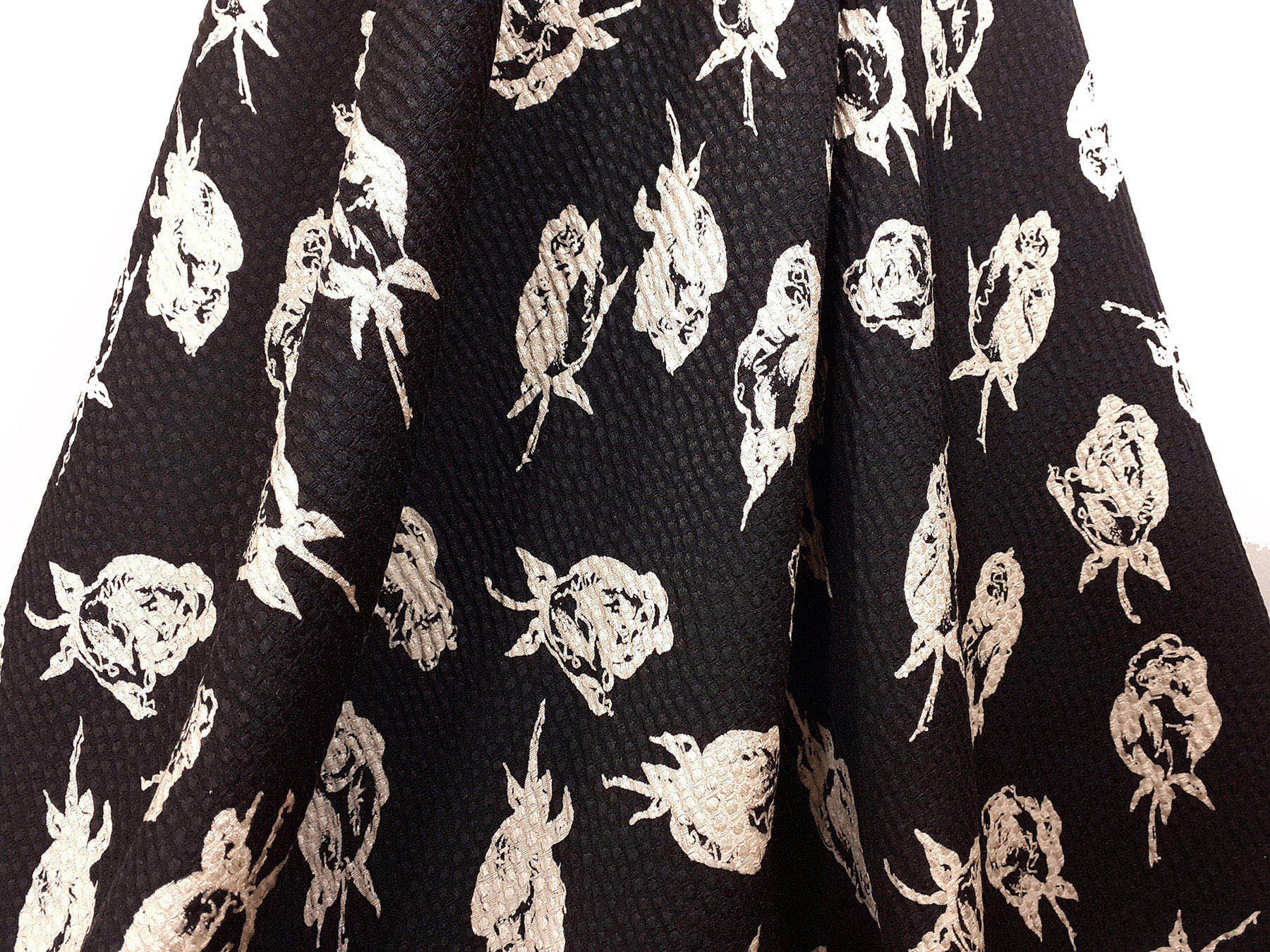 Seta jacquard fantasia stilizzata floreale su fondo nero. Valentino Miss V