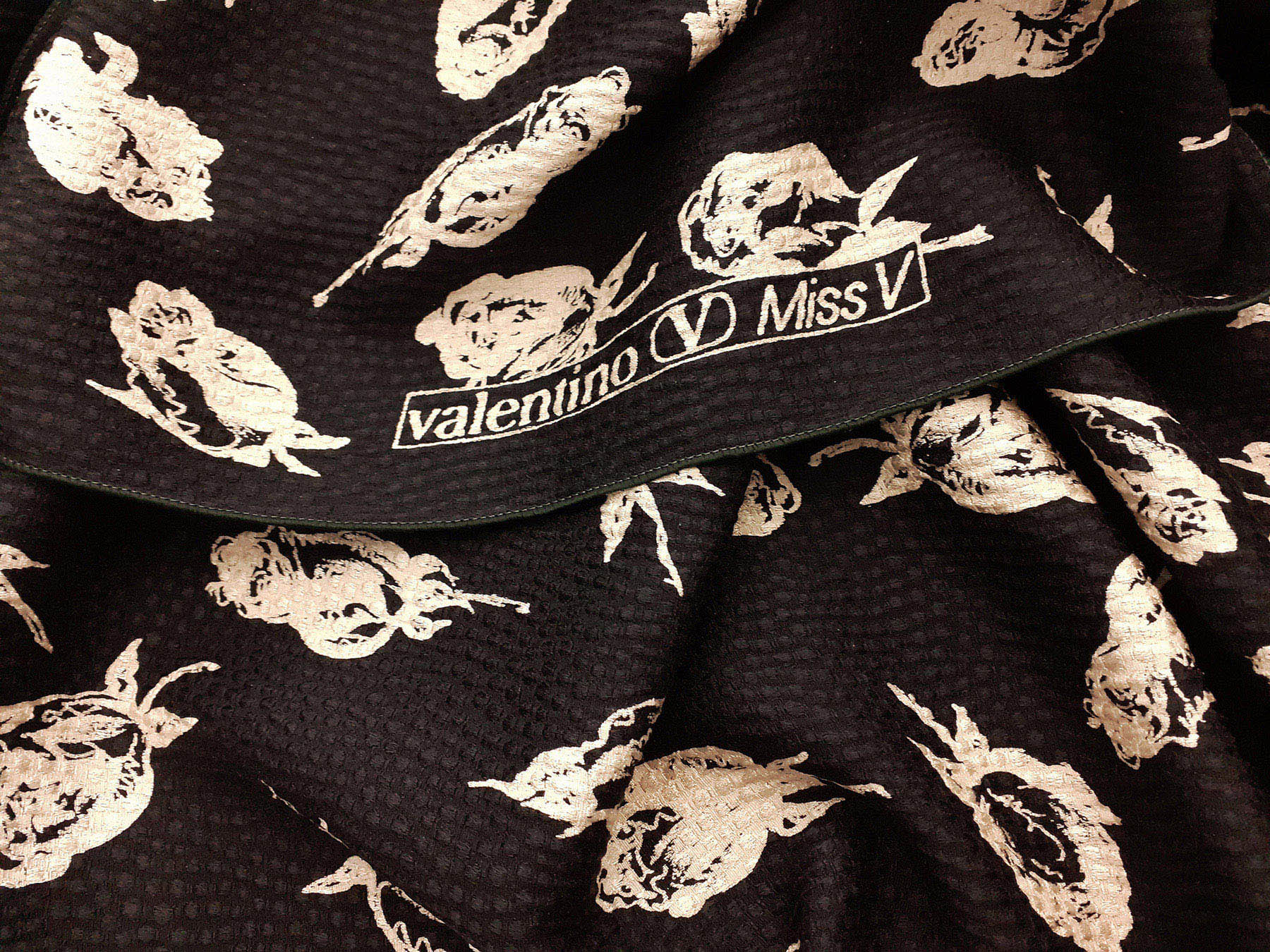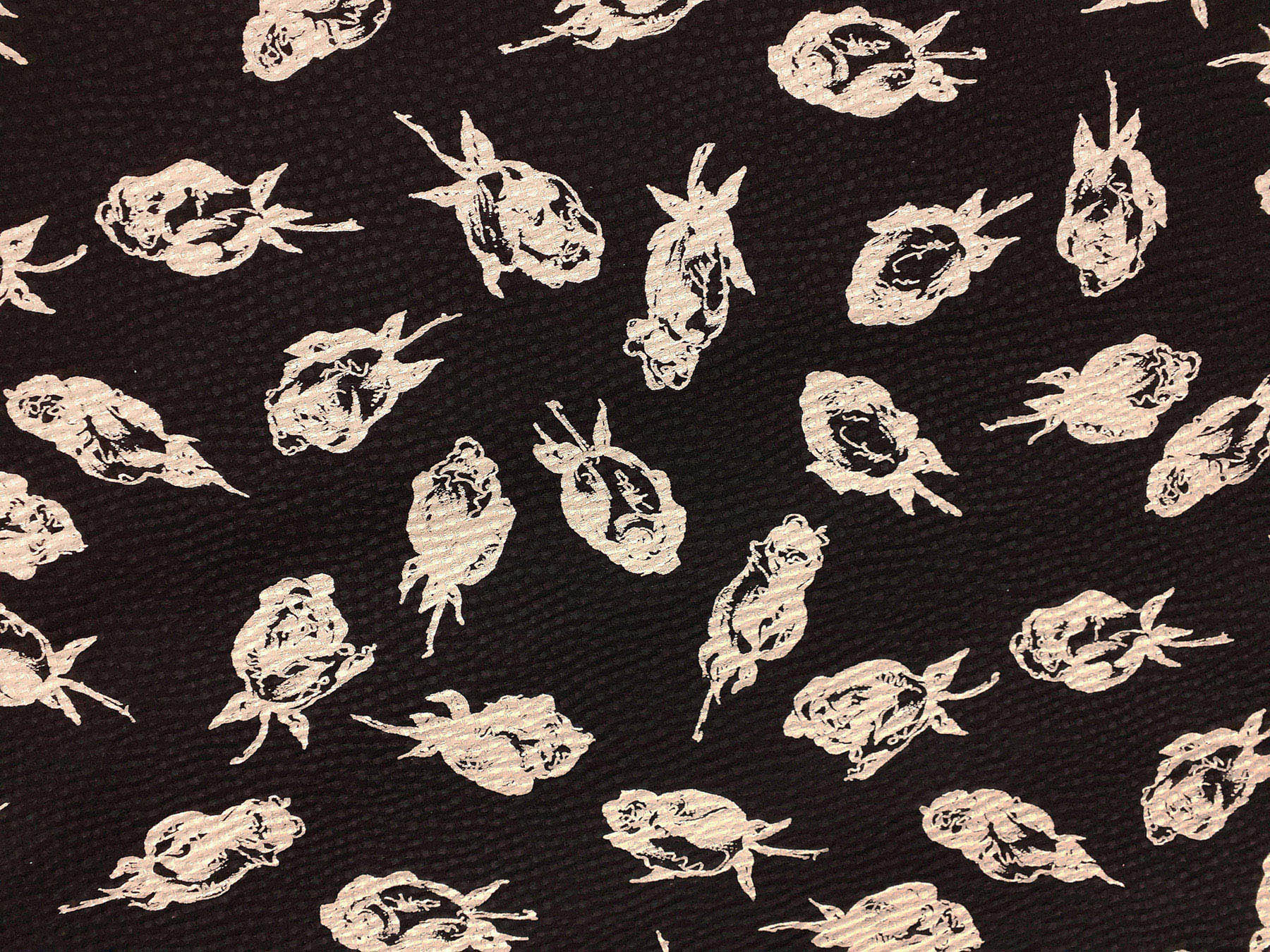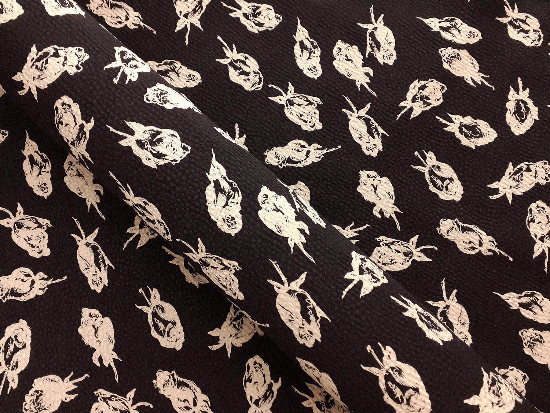 Seta jacquard fantasia stilizzata floreale su fondo nero. Valentino Miss V