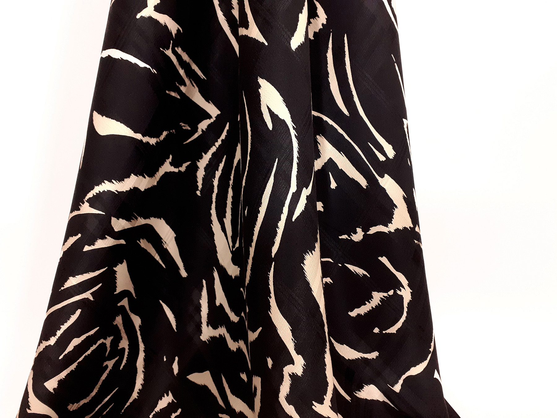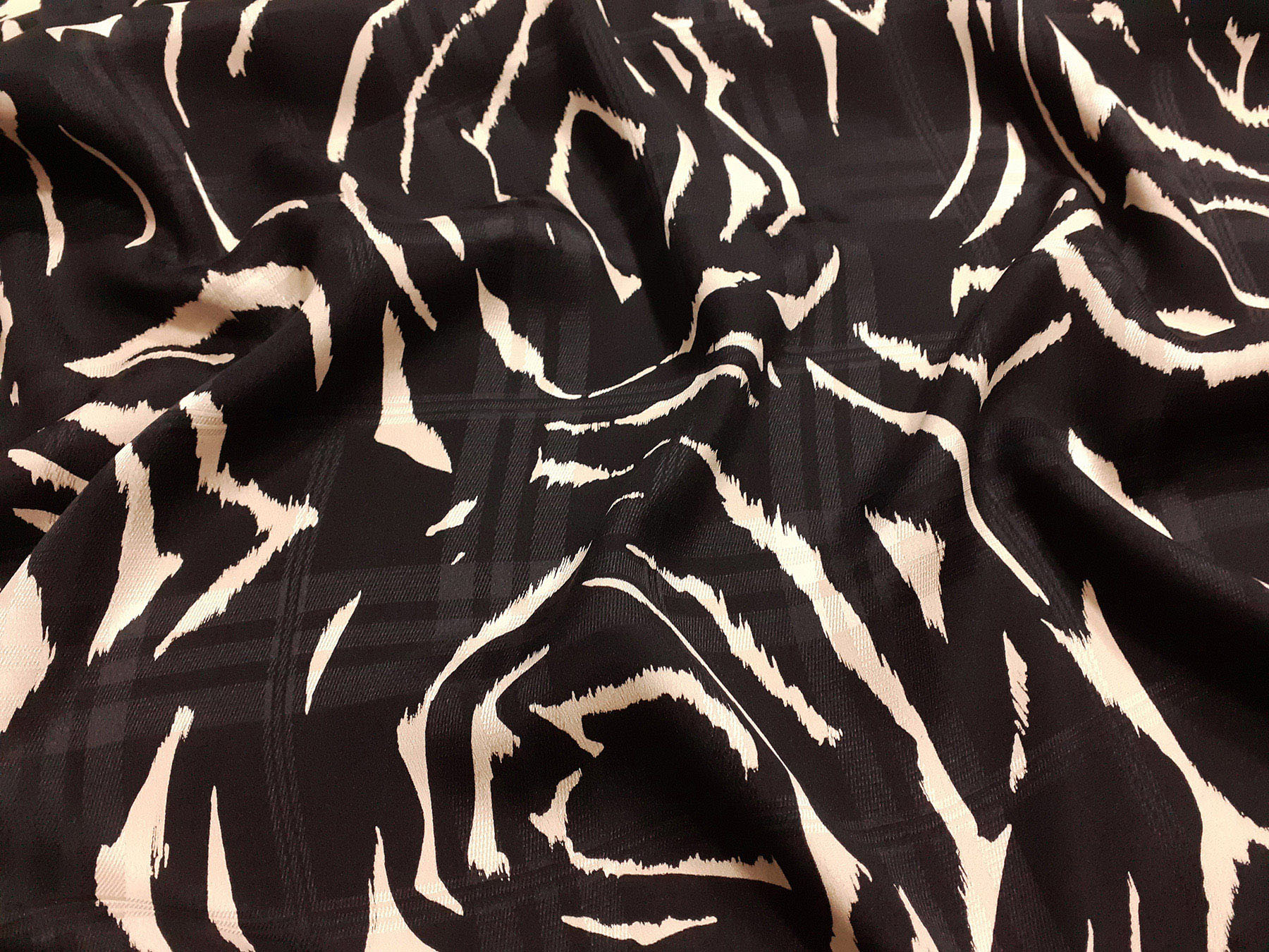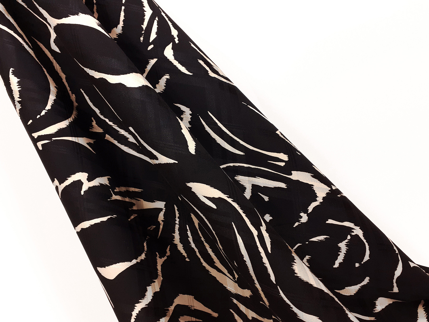 Seta jacquard fantasia avorio astratta su fondo nero