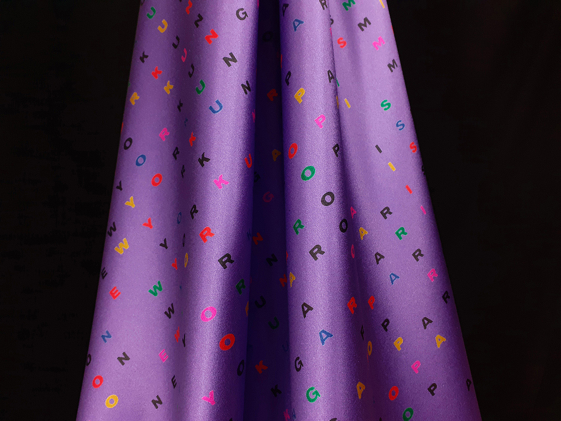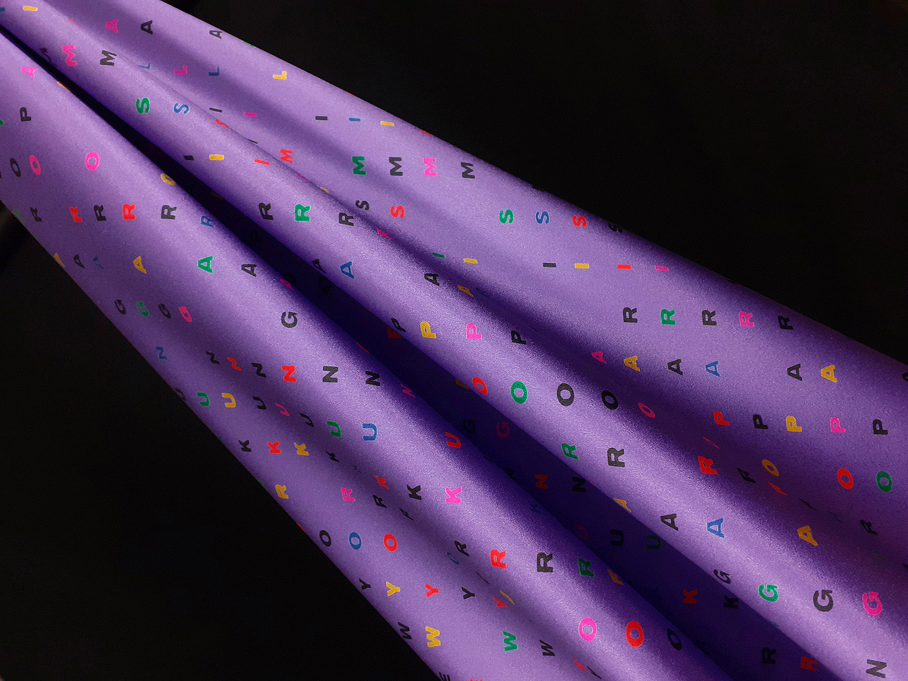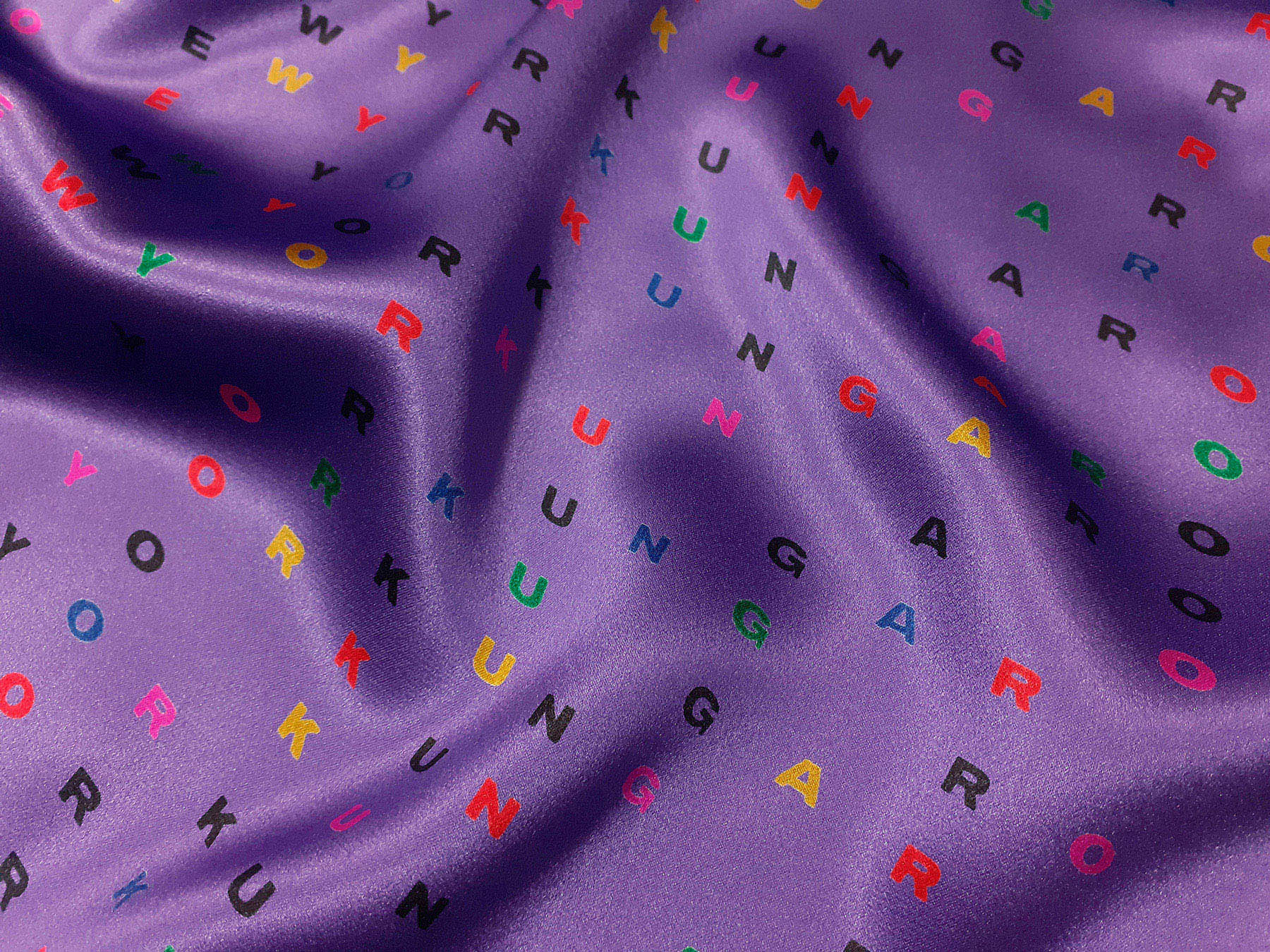 Raso di seta fantasia astratta fondo viola ametista. Ungaro