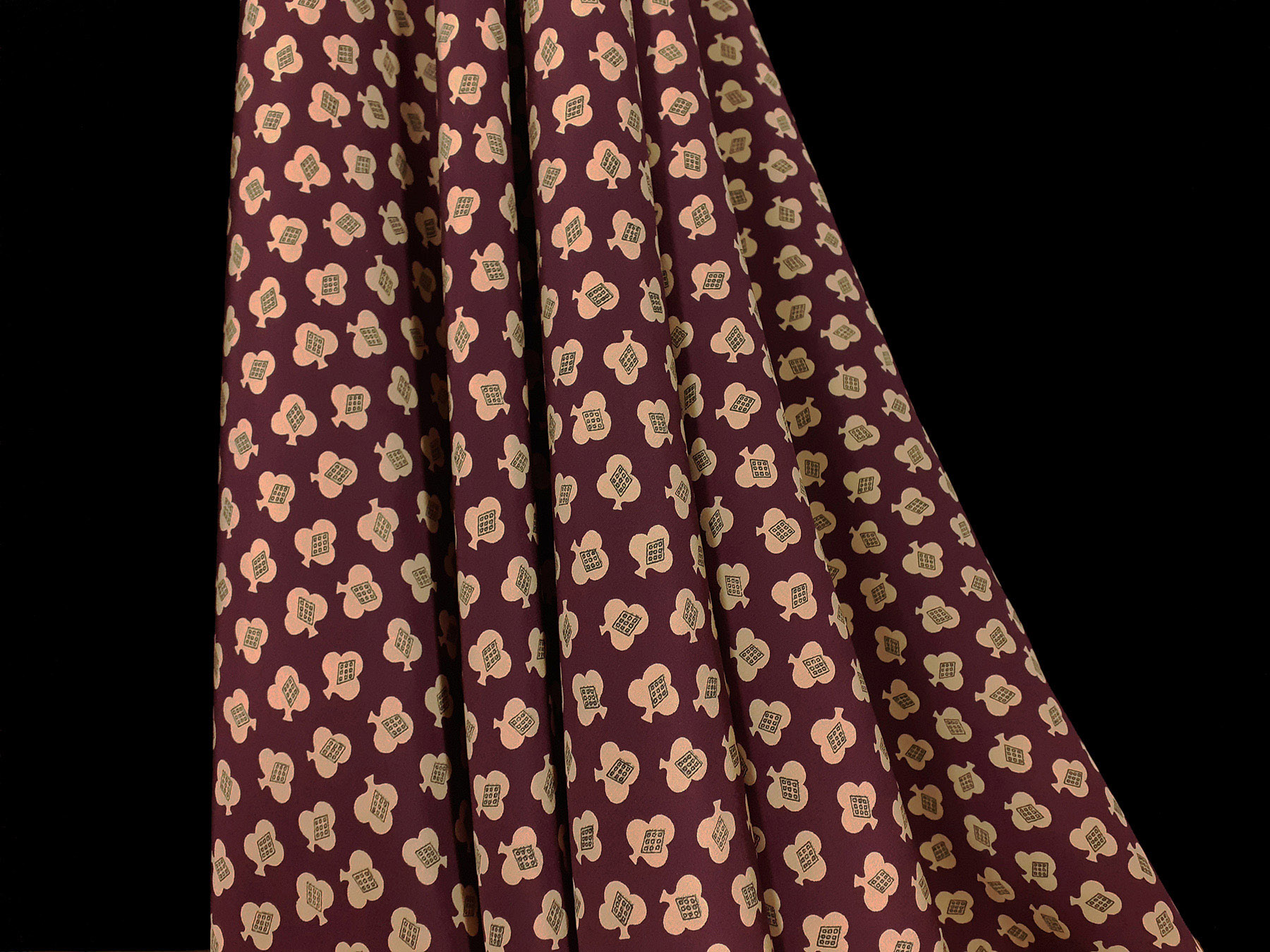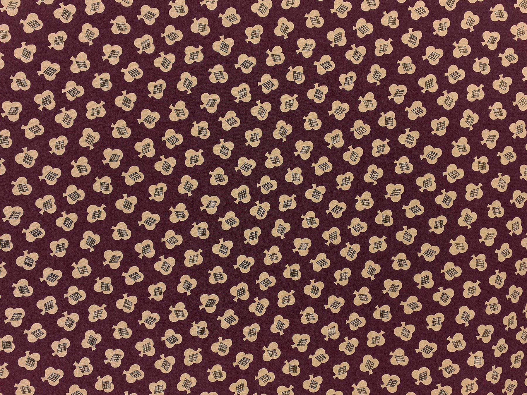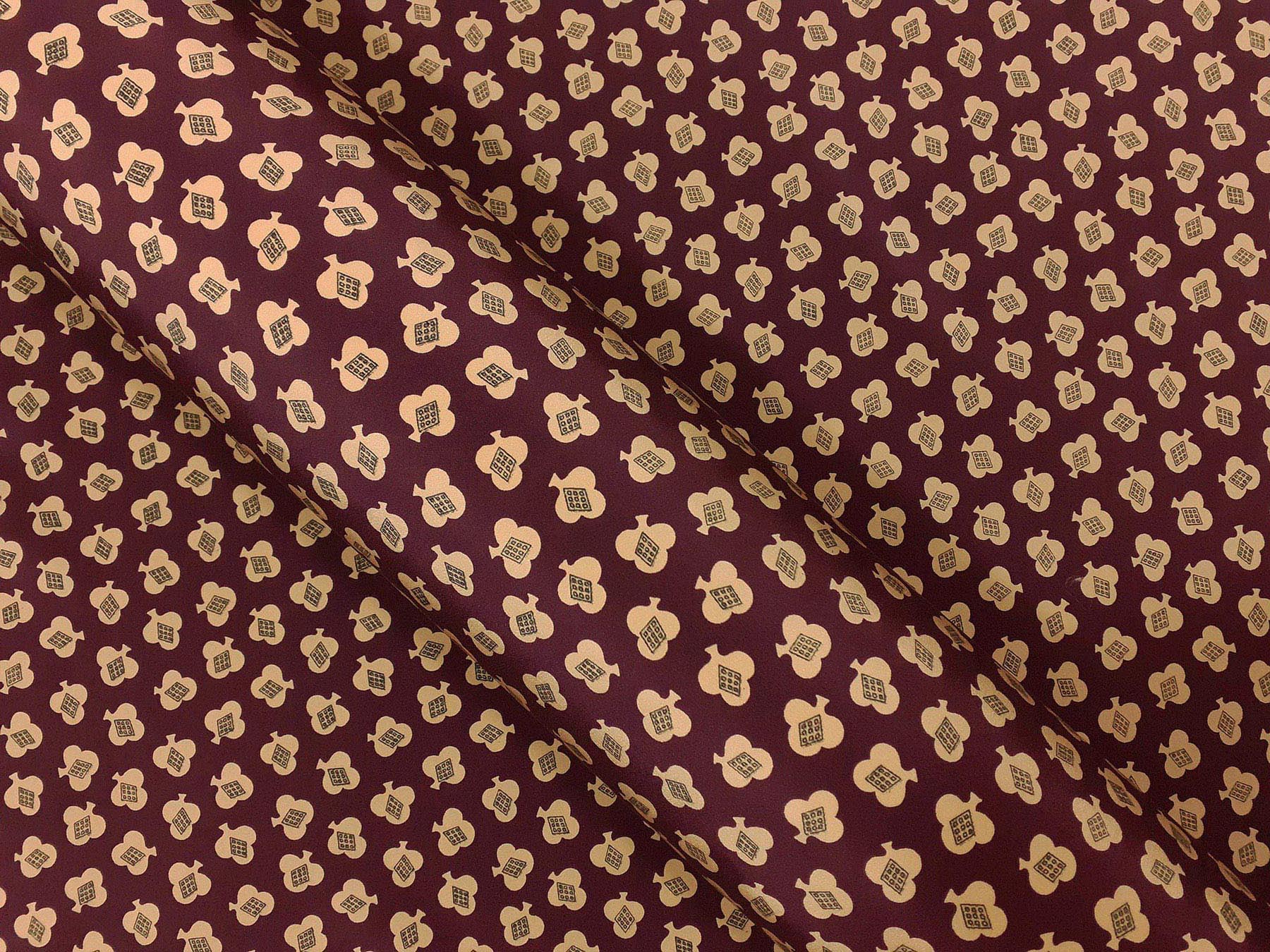 Crepe de Chine in seta fantasia piccoli flori avorio su fondo bordeaux