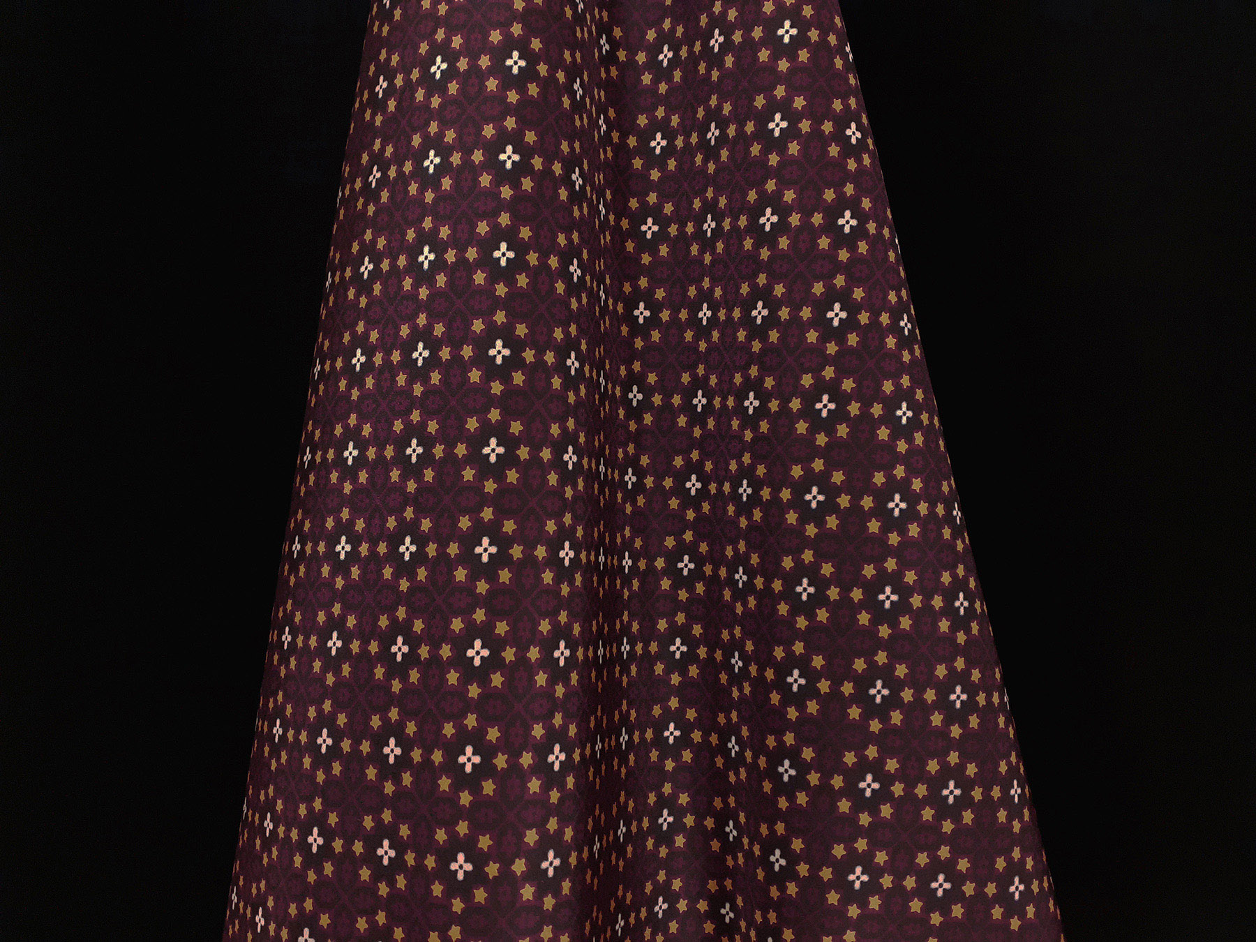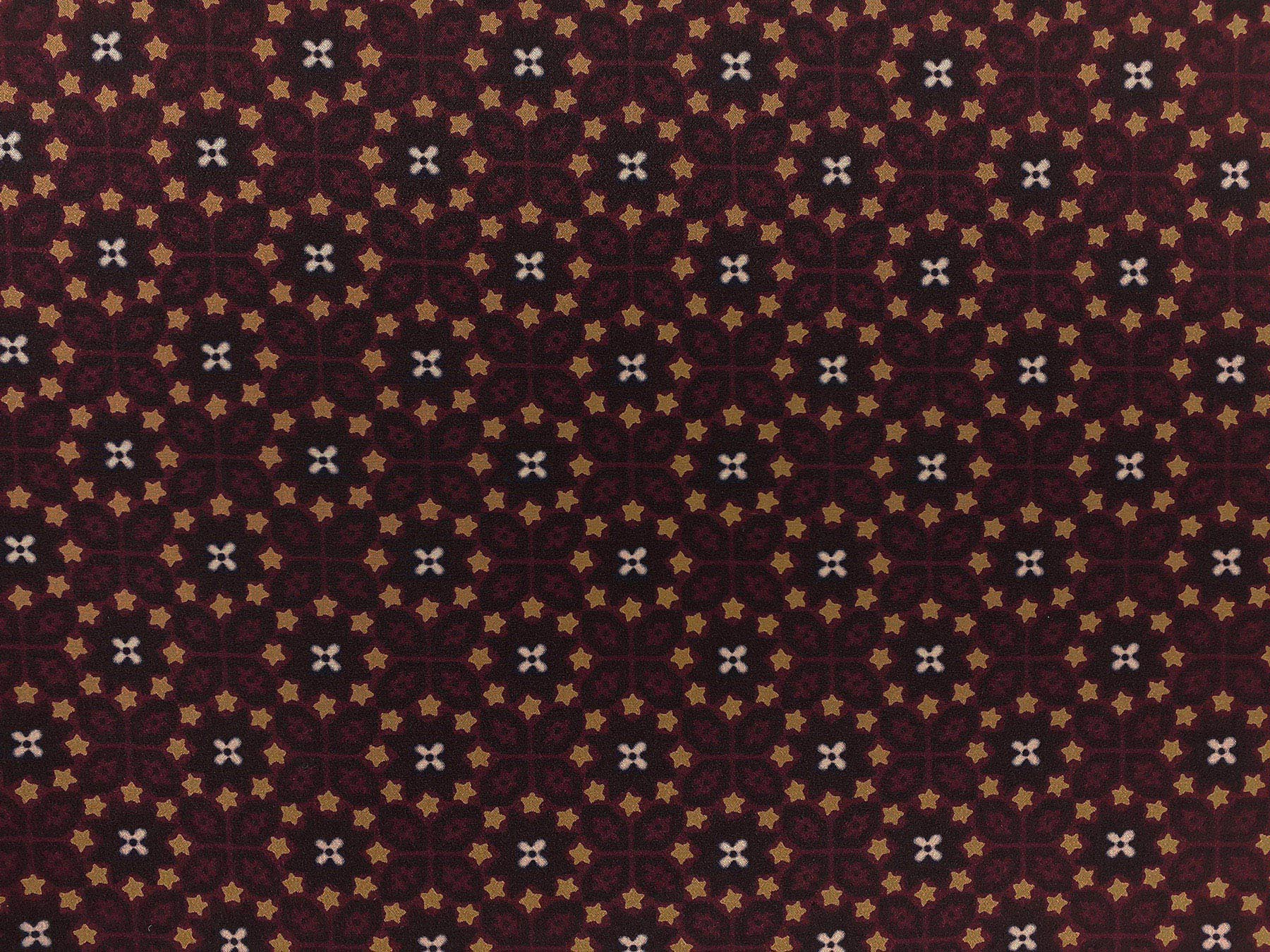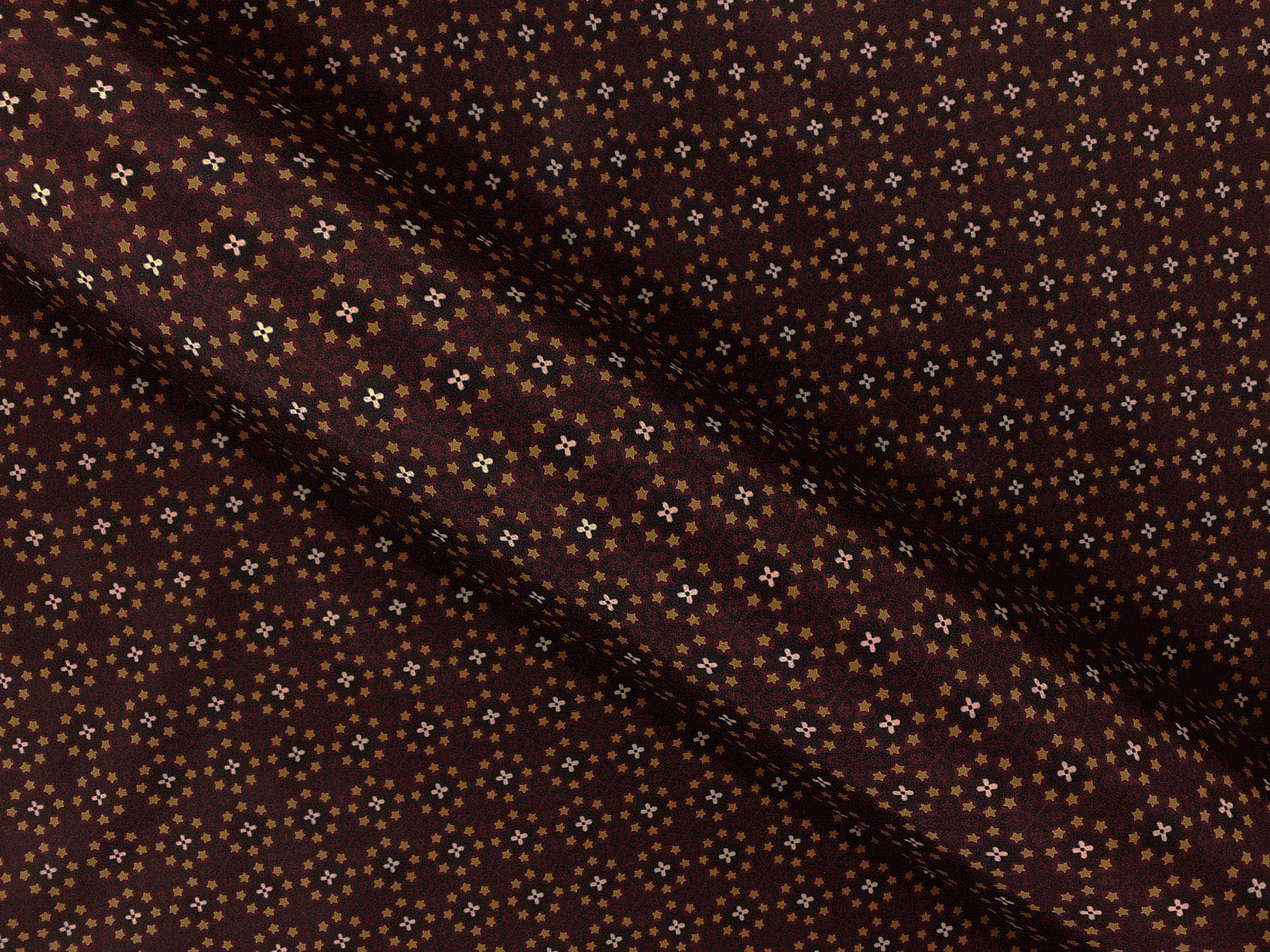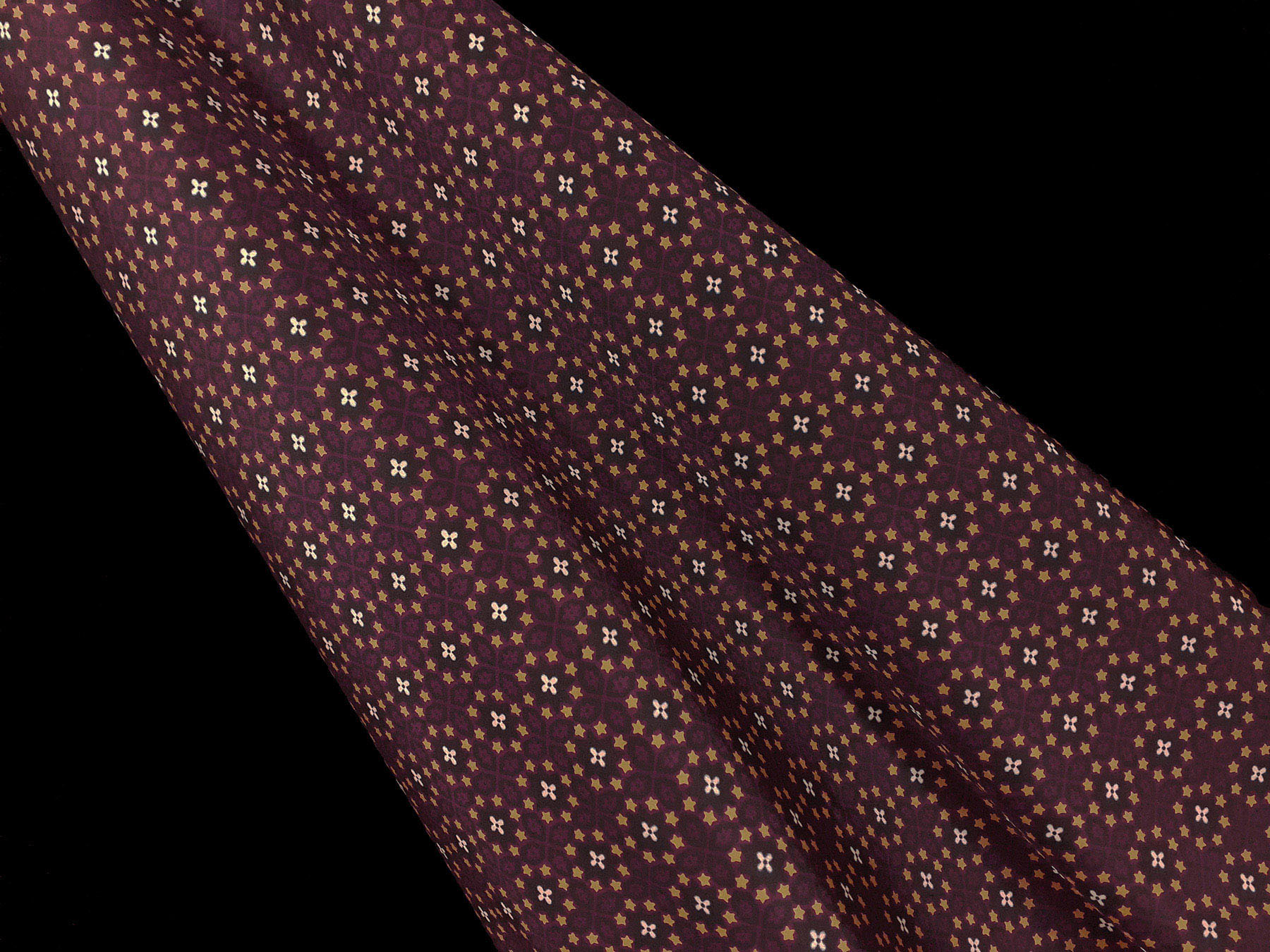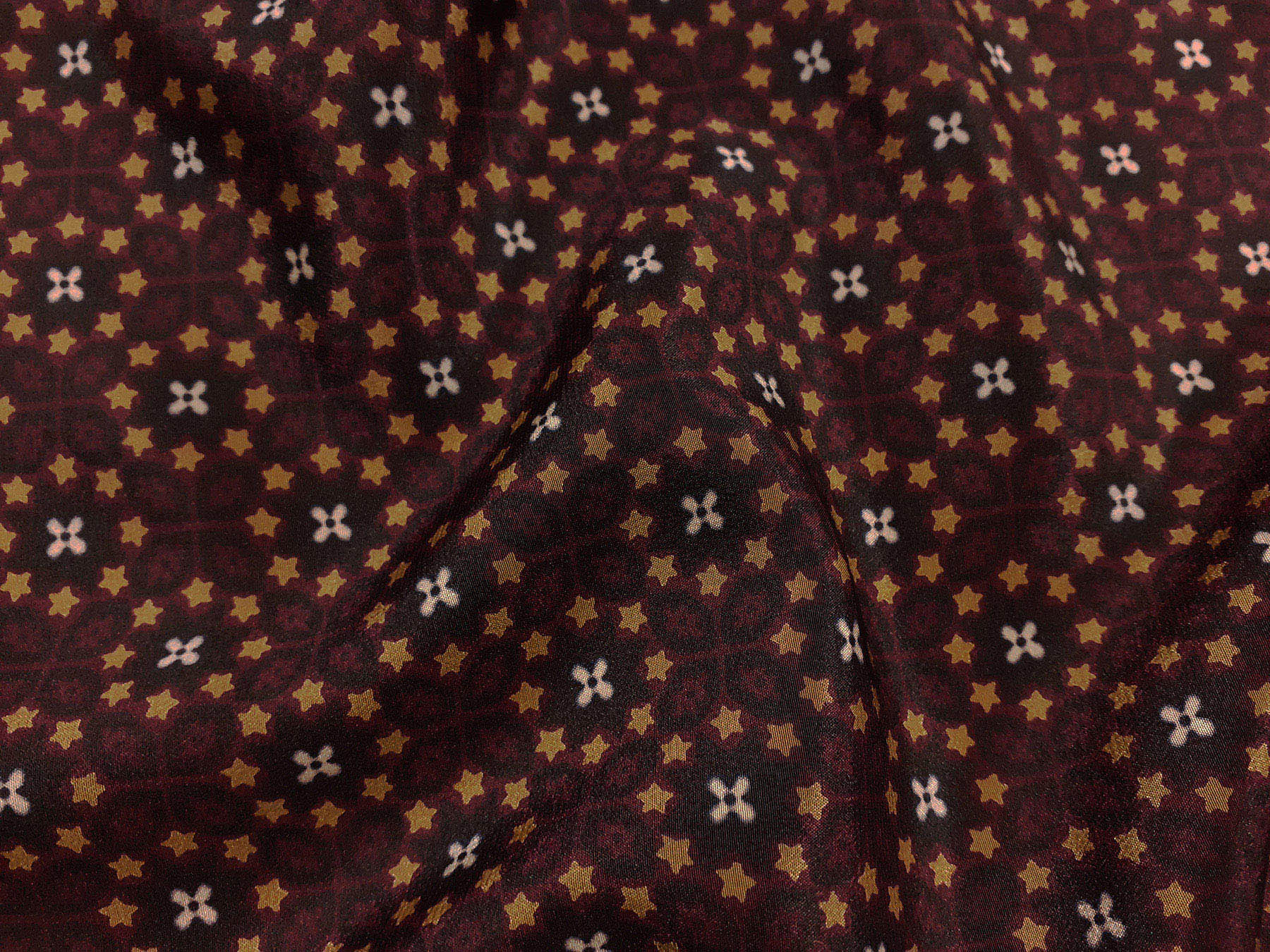 Crepe de Chine in seta fantasia stelline oro su fondo bordeaux