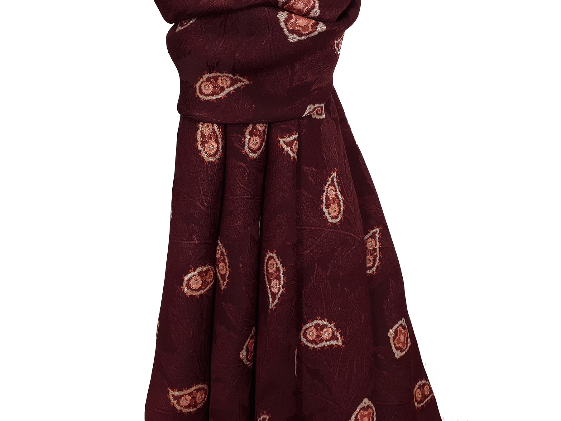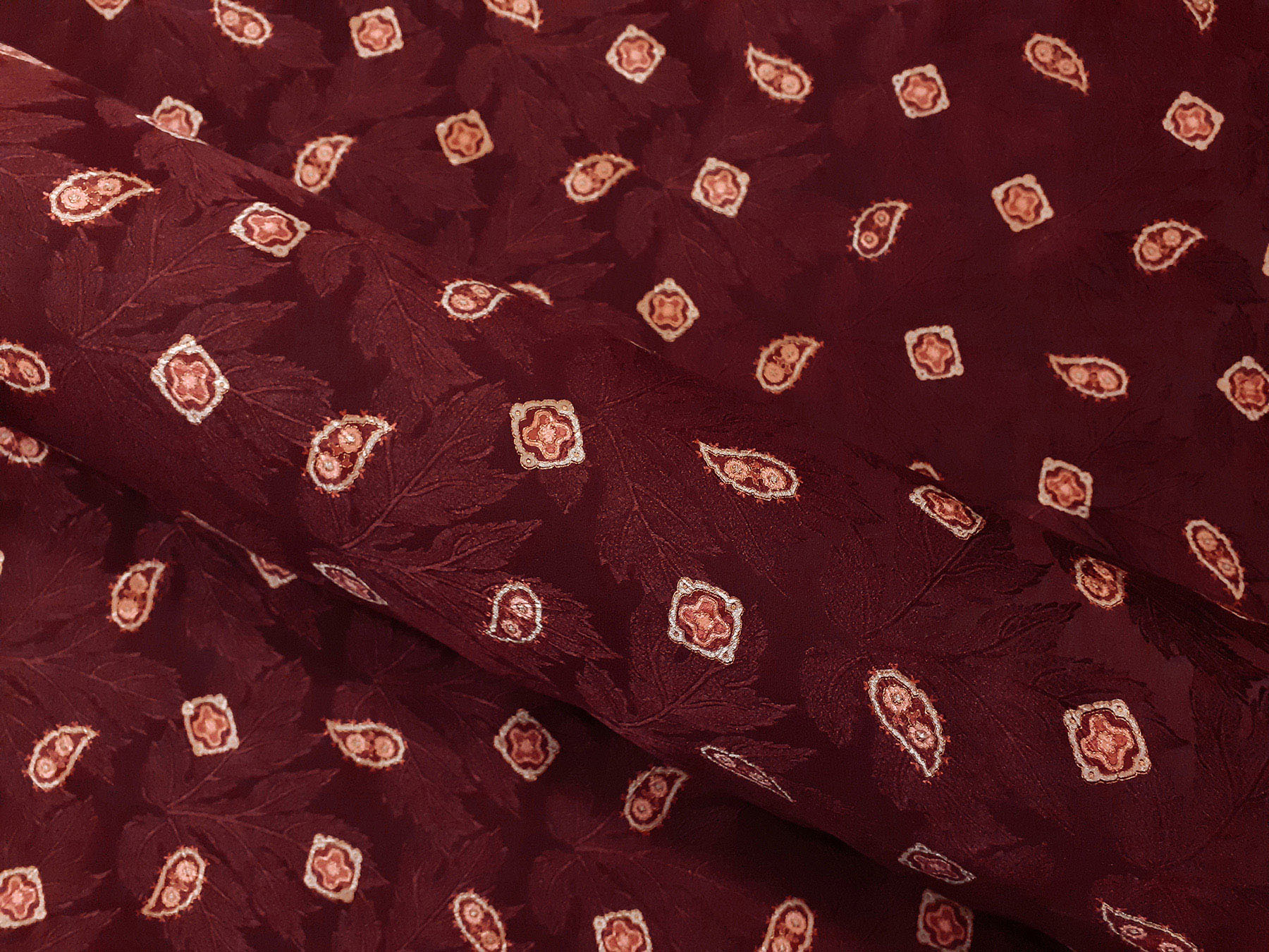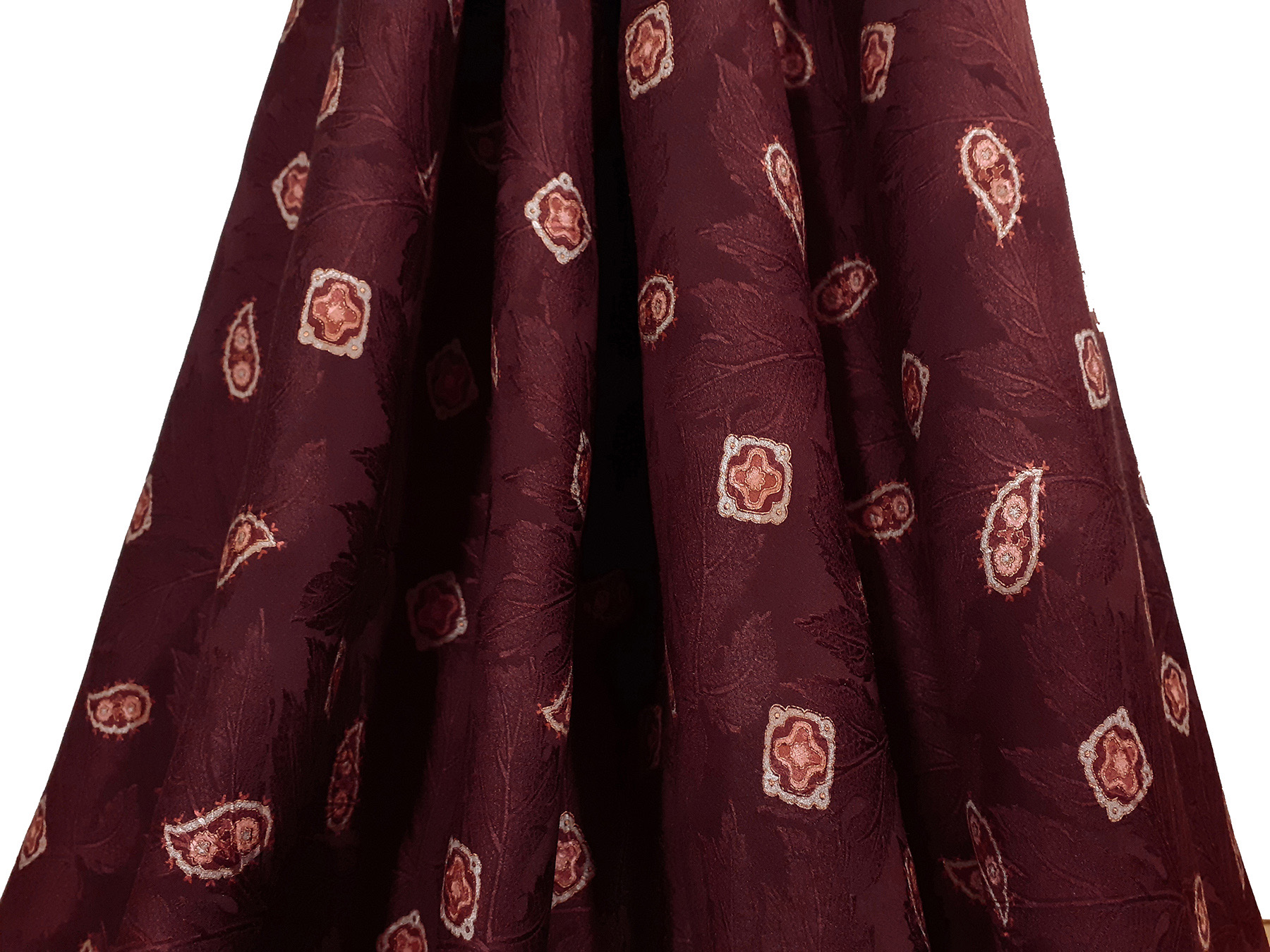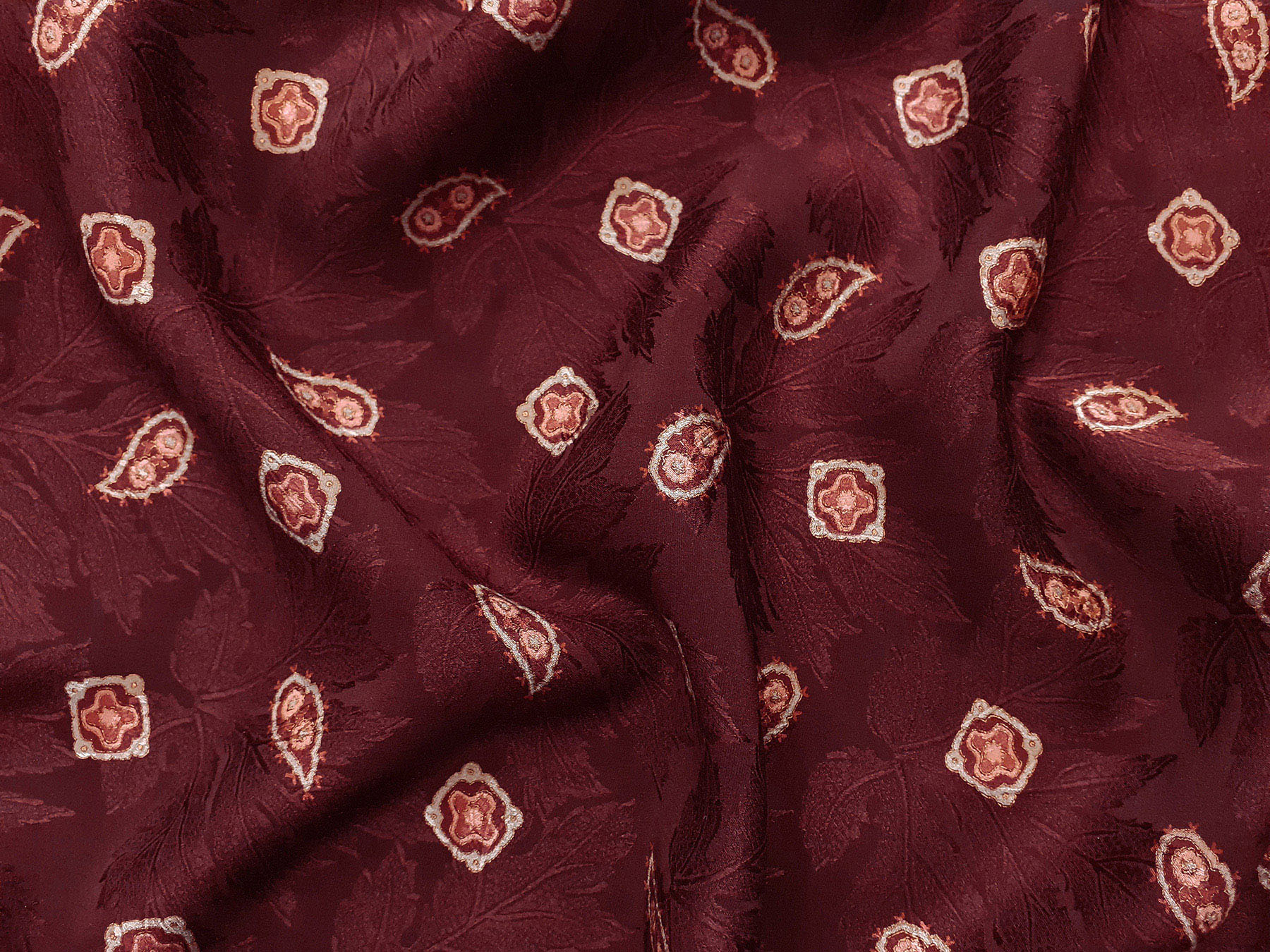 Seta jacquard fantasia cashmere su fondo bordeaux