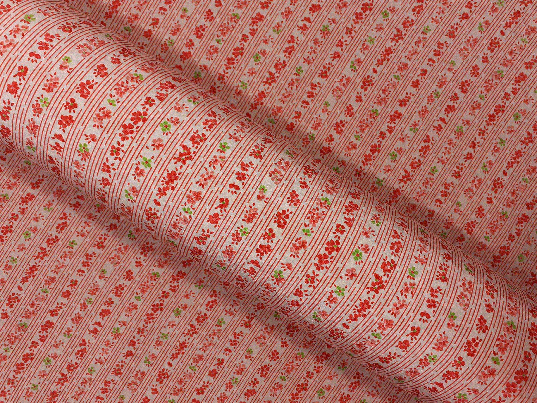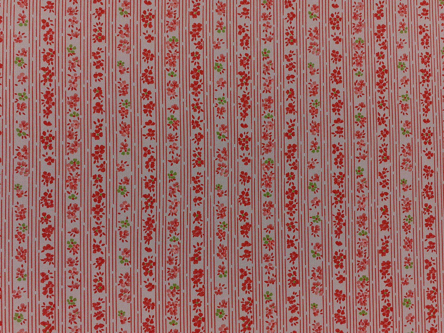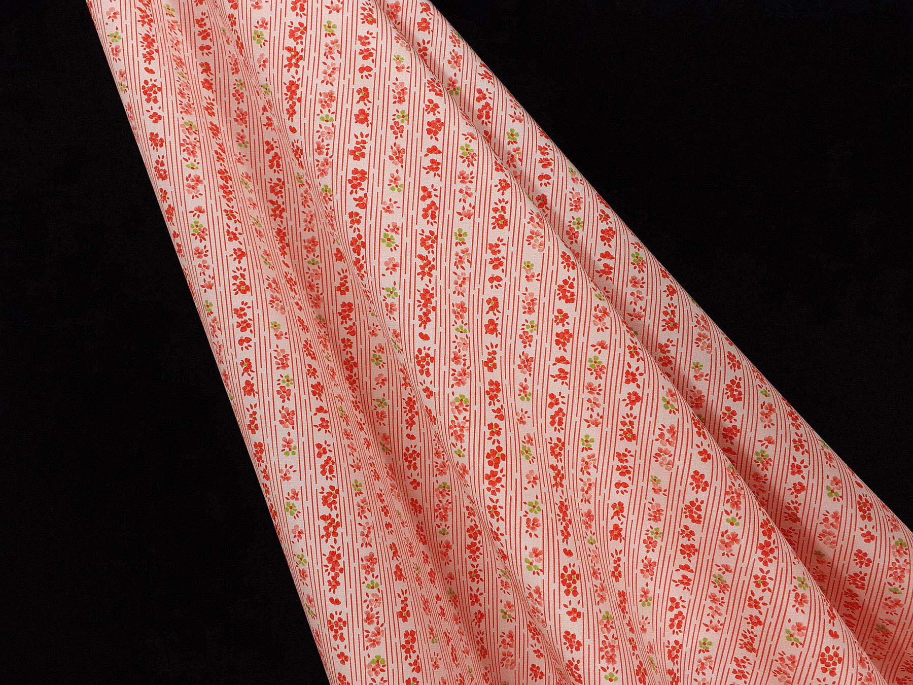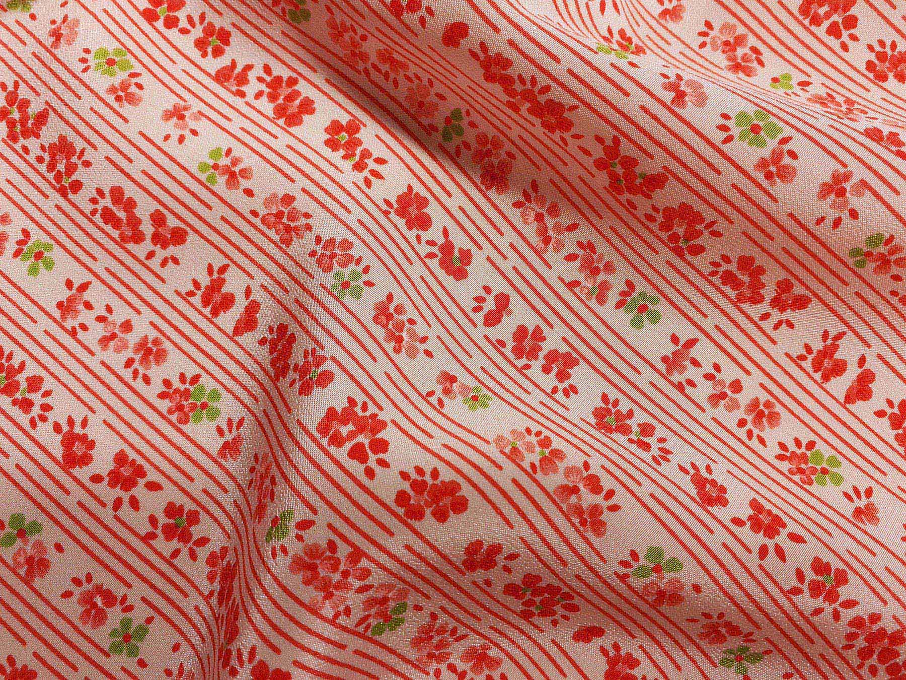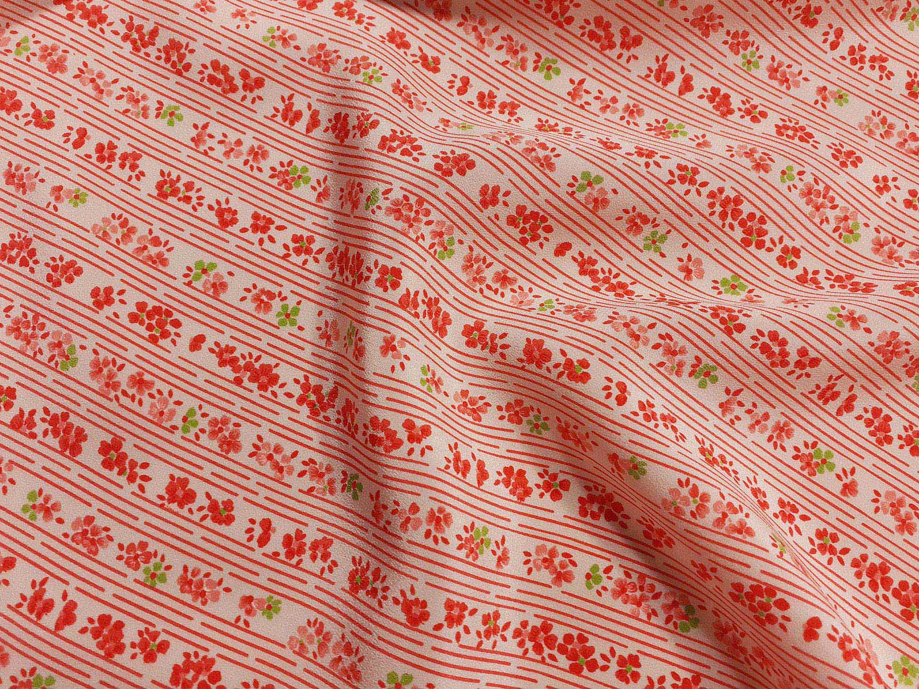 Crepe de Chine in seta fiorellini rossi su fondo bianco