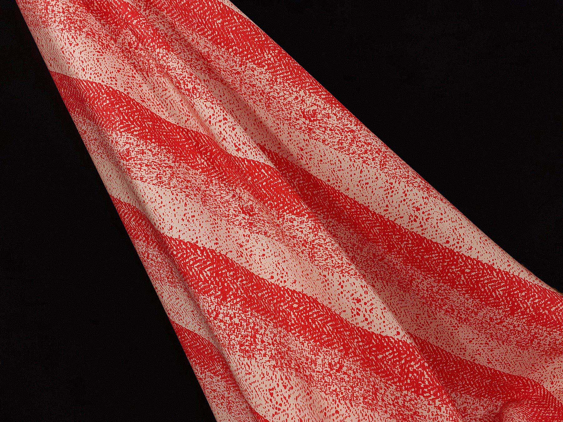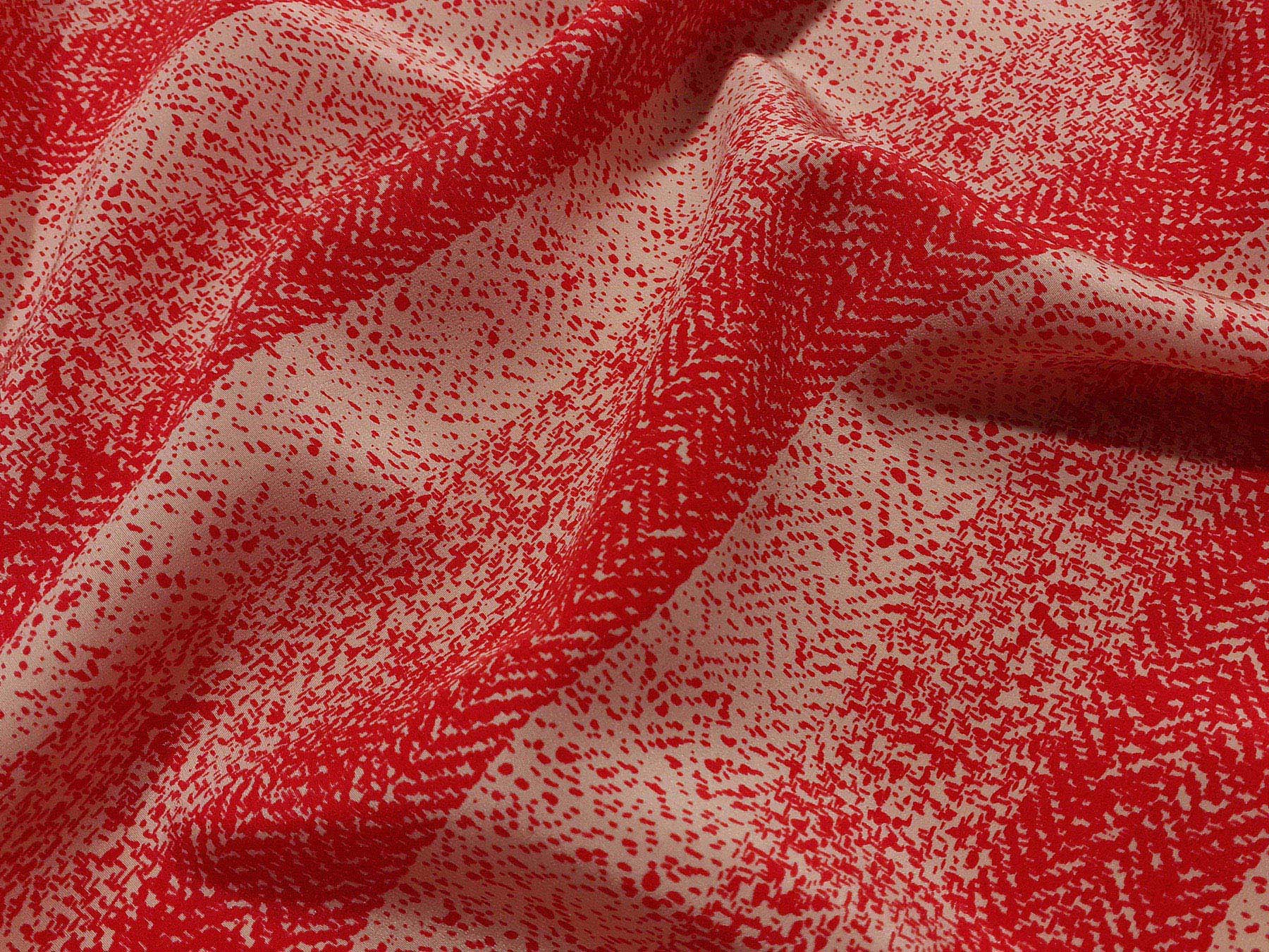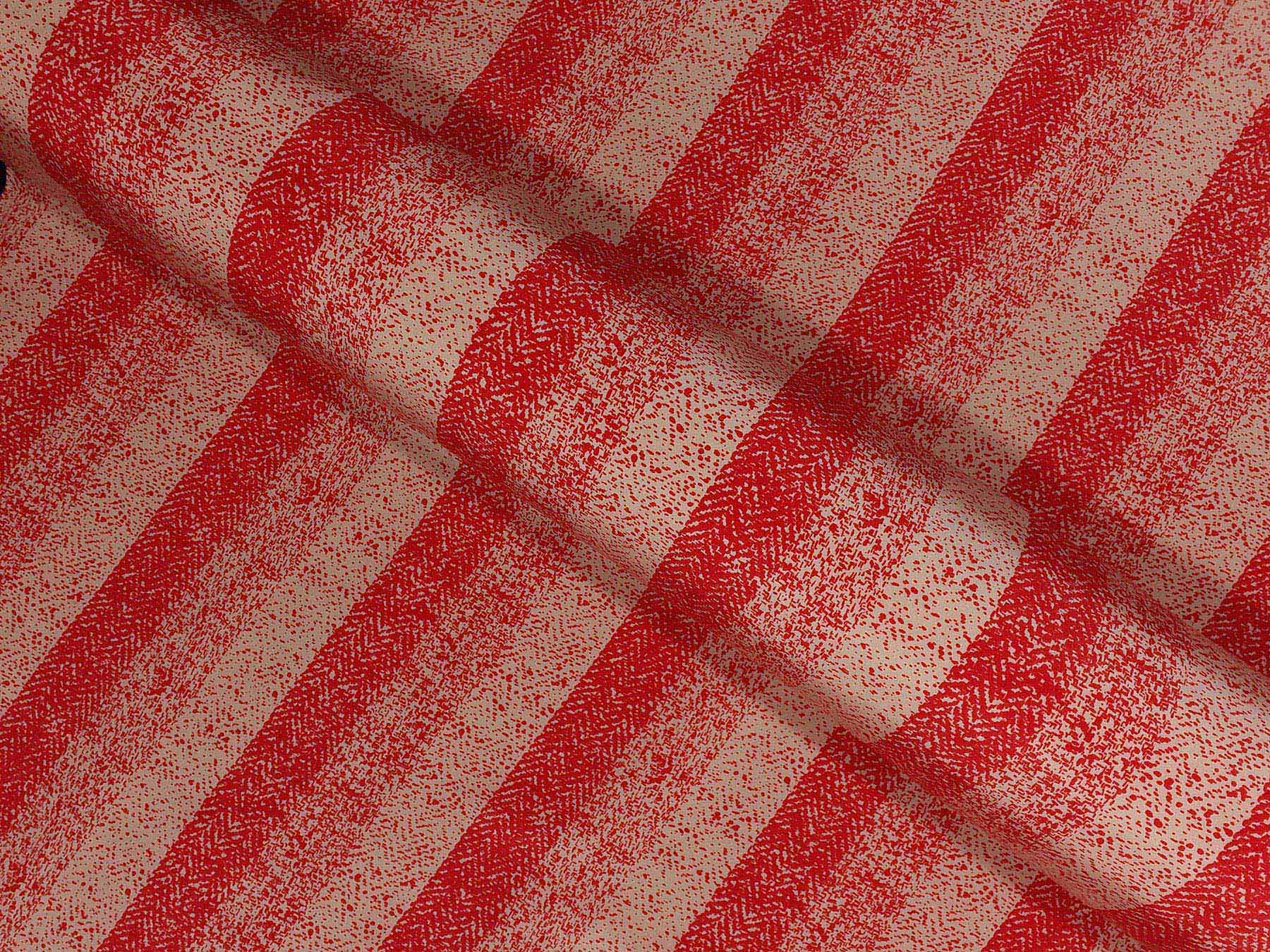 Crepe de Chine in seta a righe e spigato rosso su fondo avorio