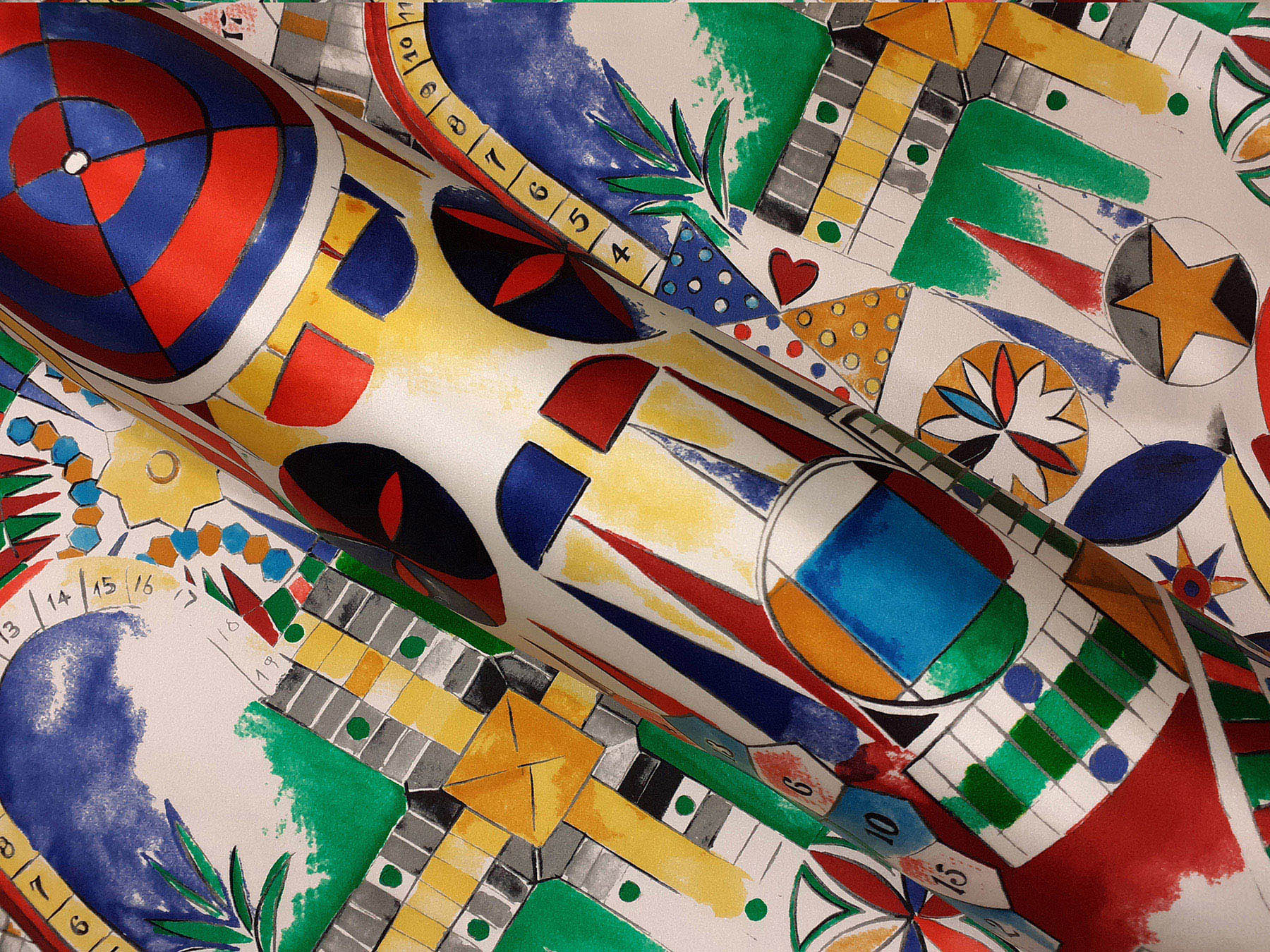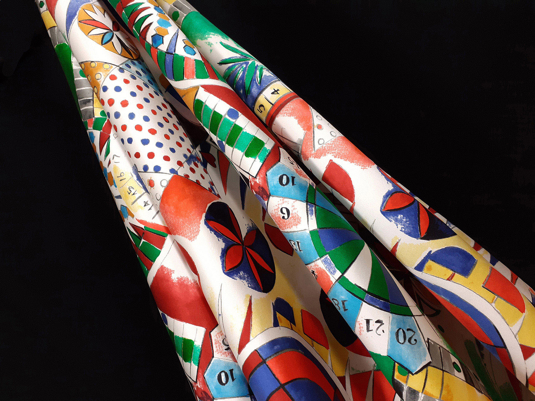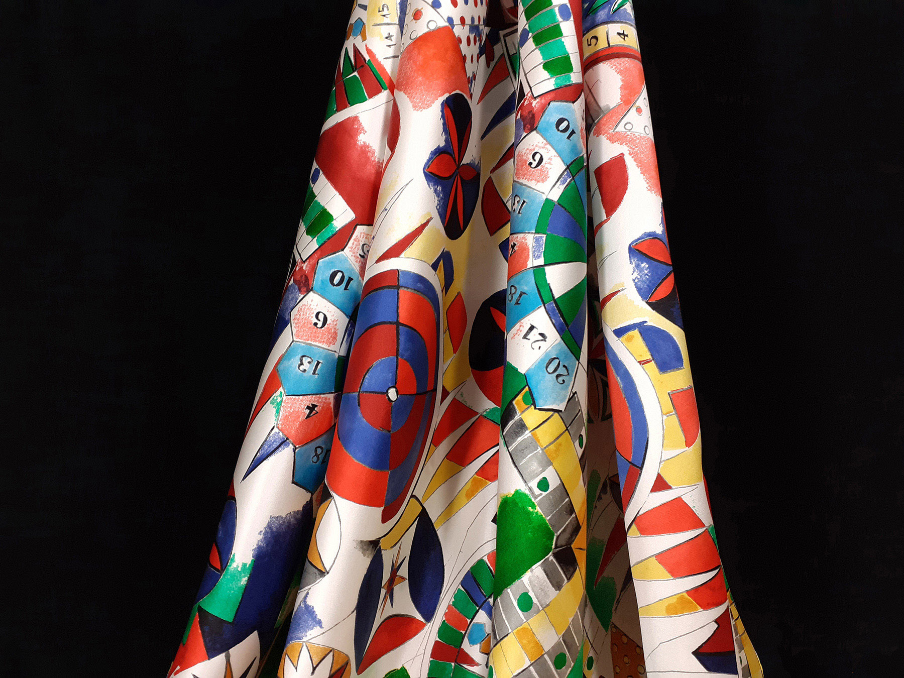 raso di seta fantasia astratta fondo bianco
