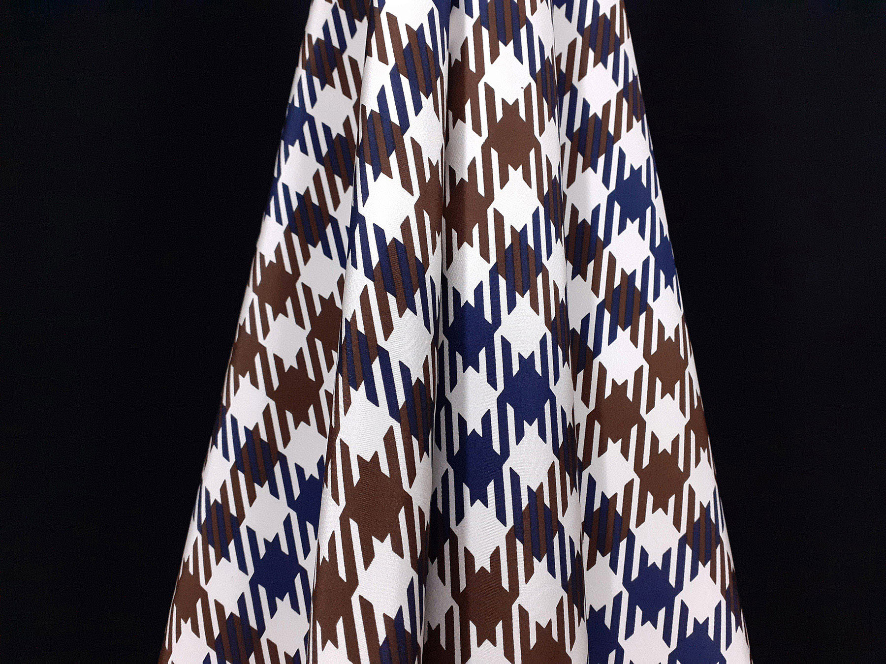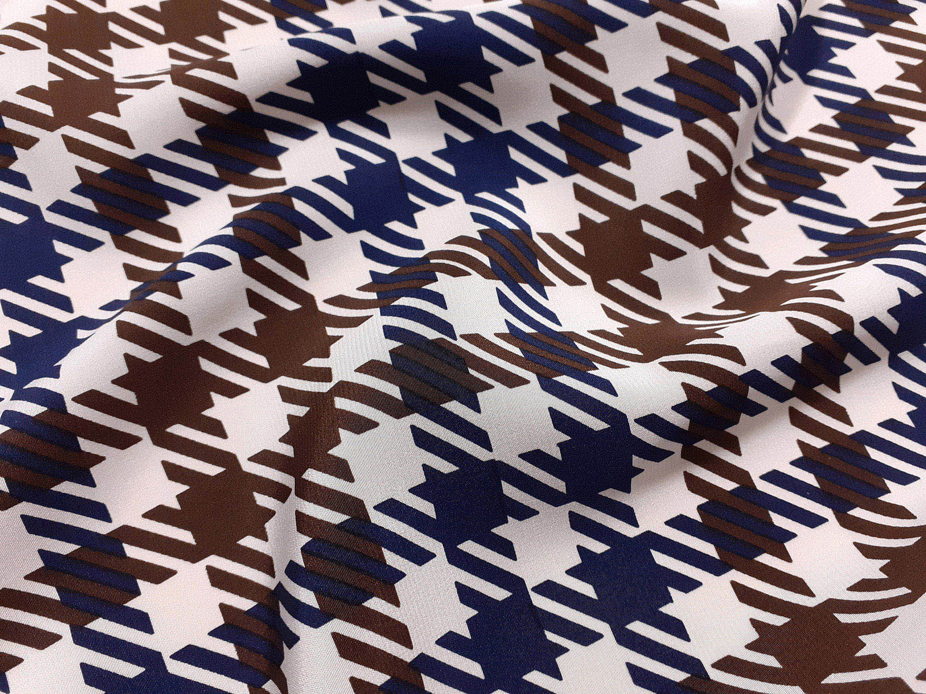 Crepe de Chine in seta fantasia pied de poule su fondo bianco