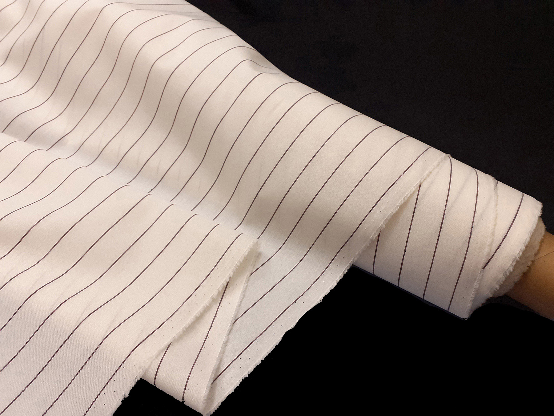 Tessuto per camicie tinto in filo riga viola su fondo bianco