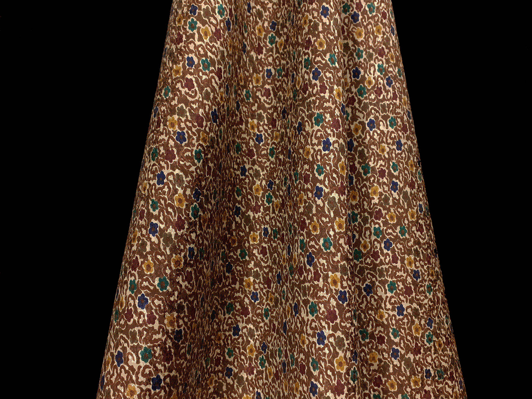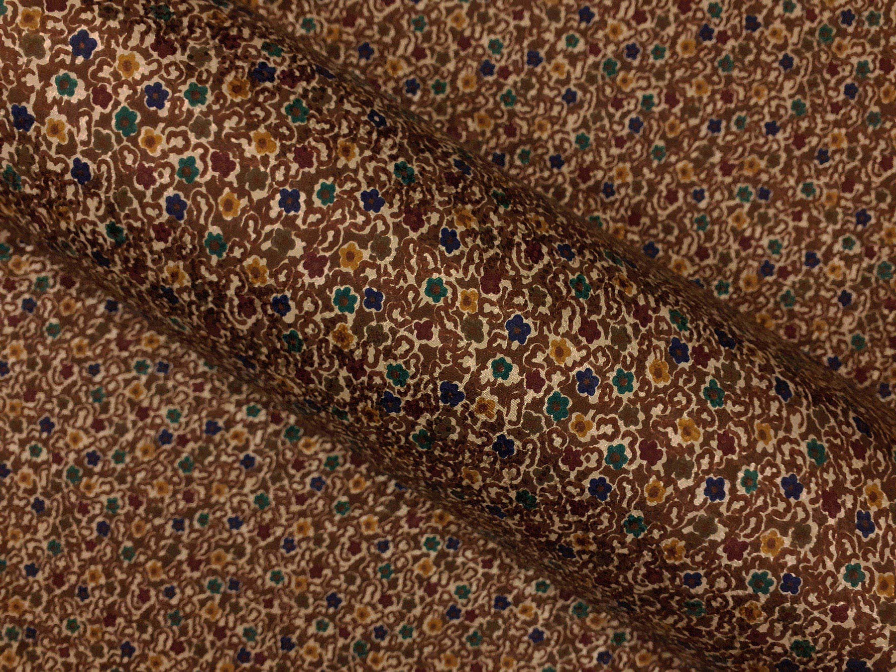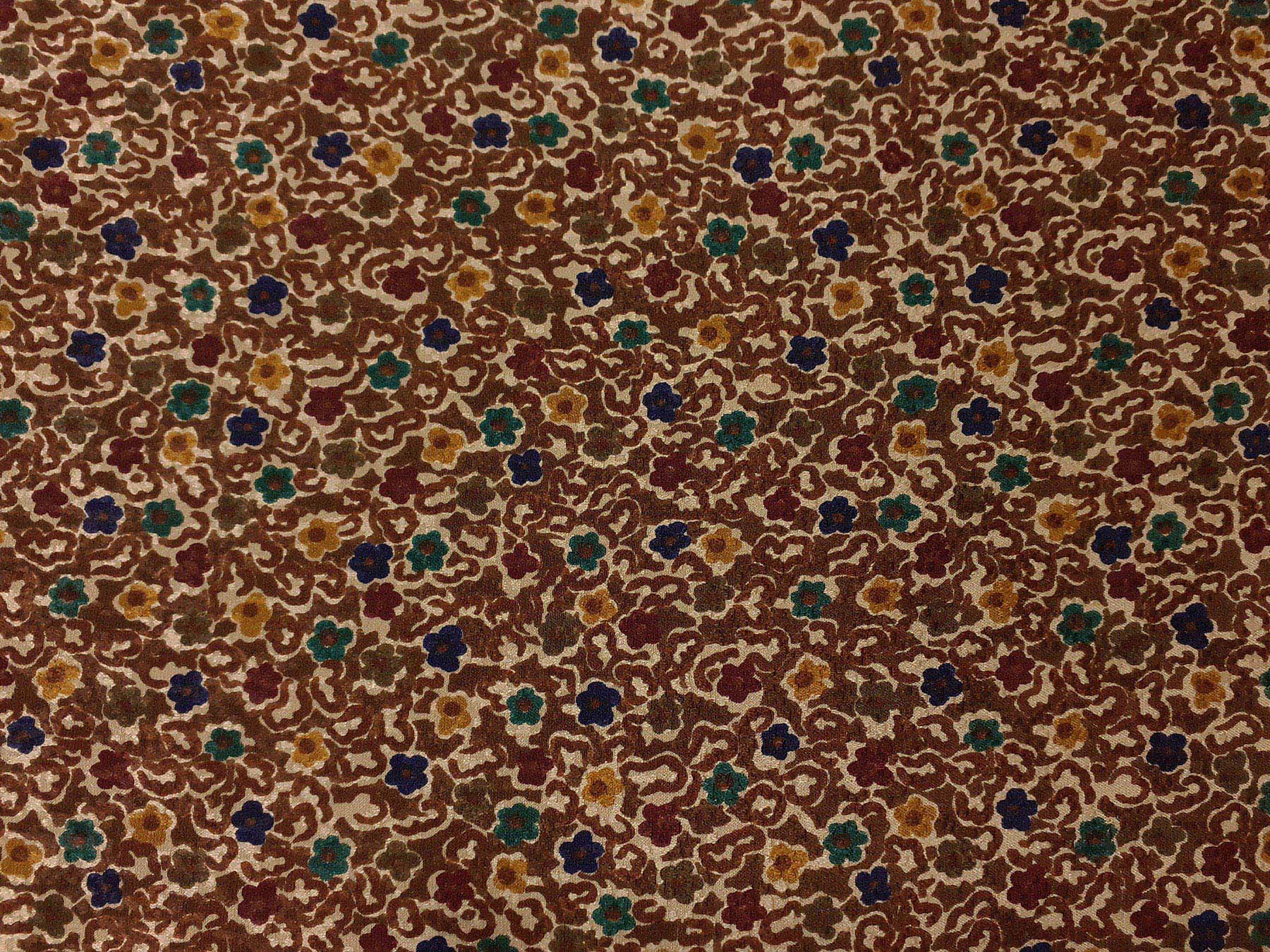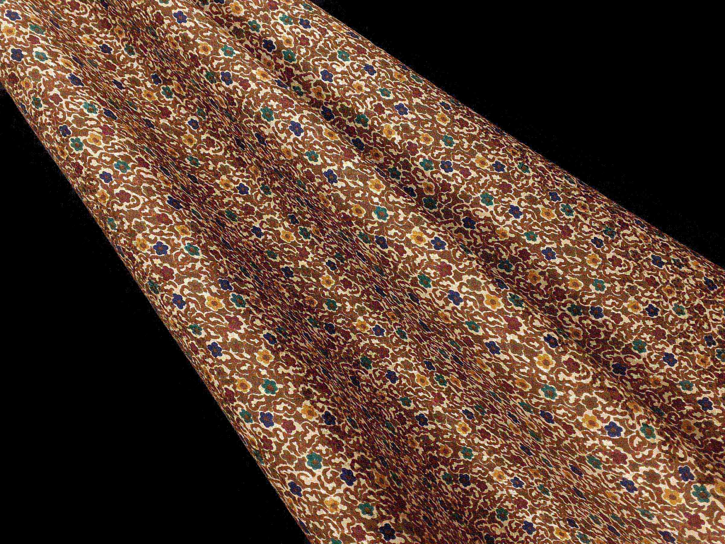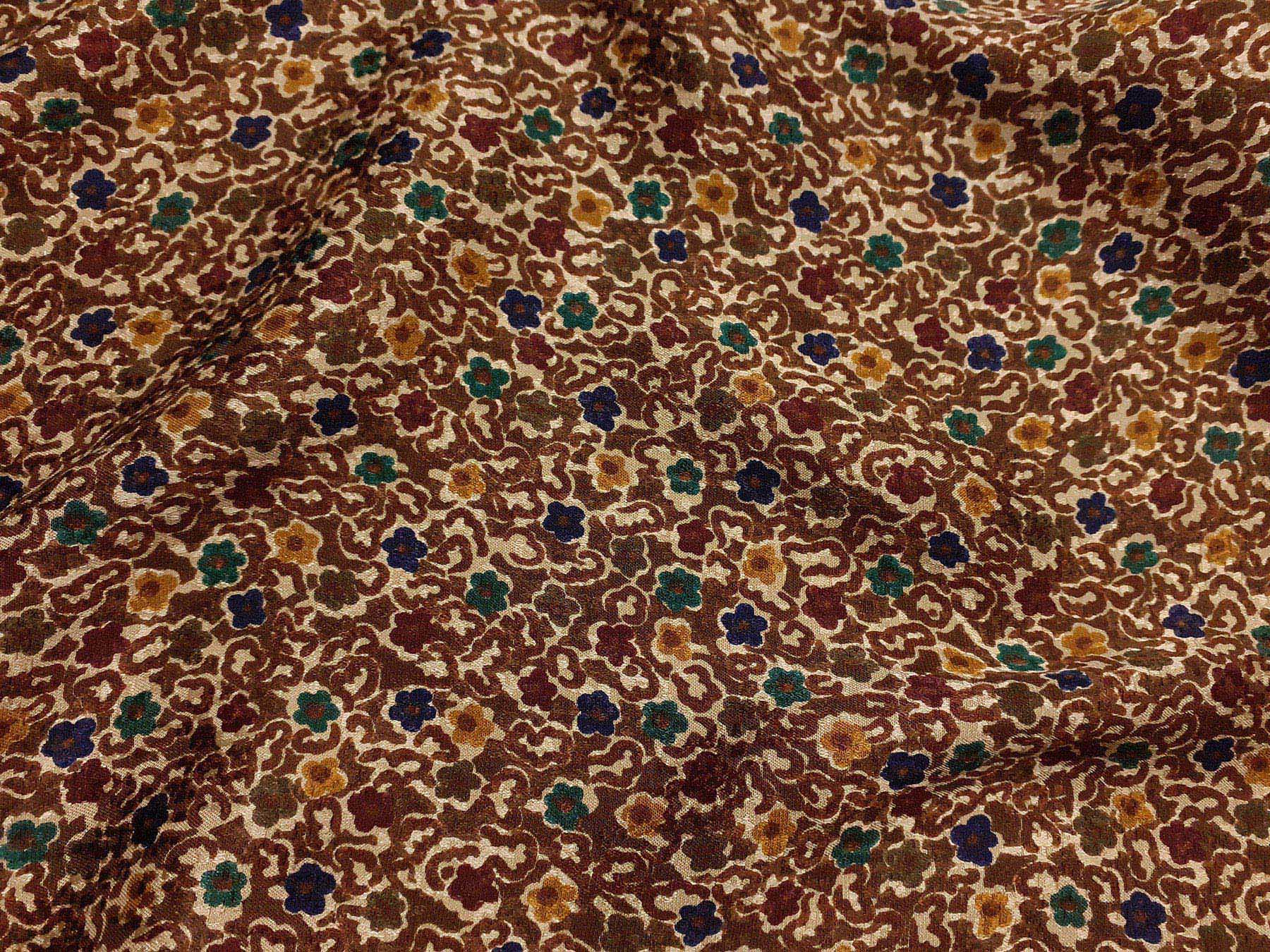 Seta jacquard piccoli fiori su fondo beige e marrone
