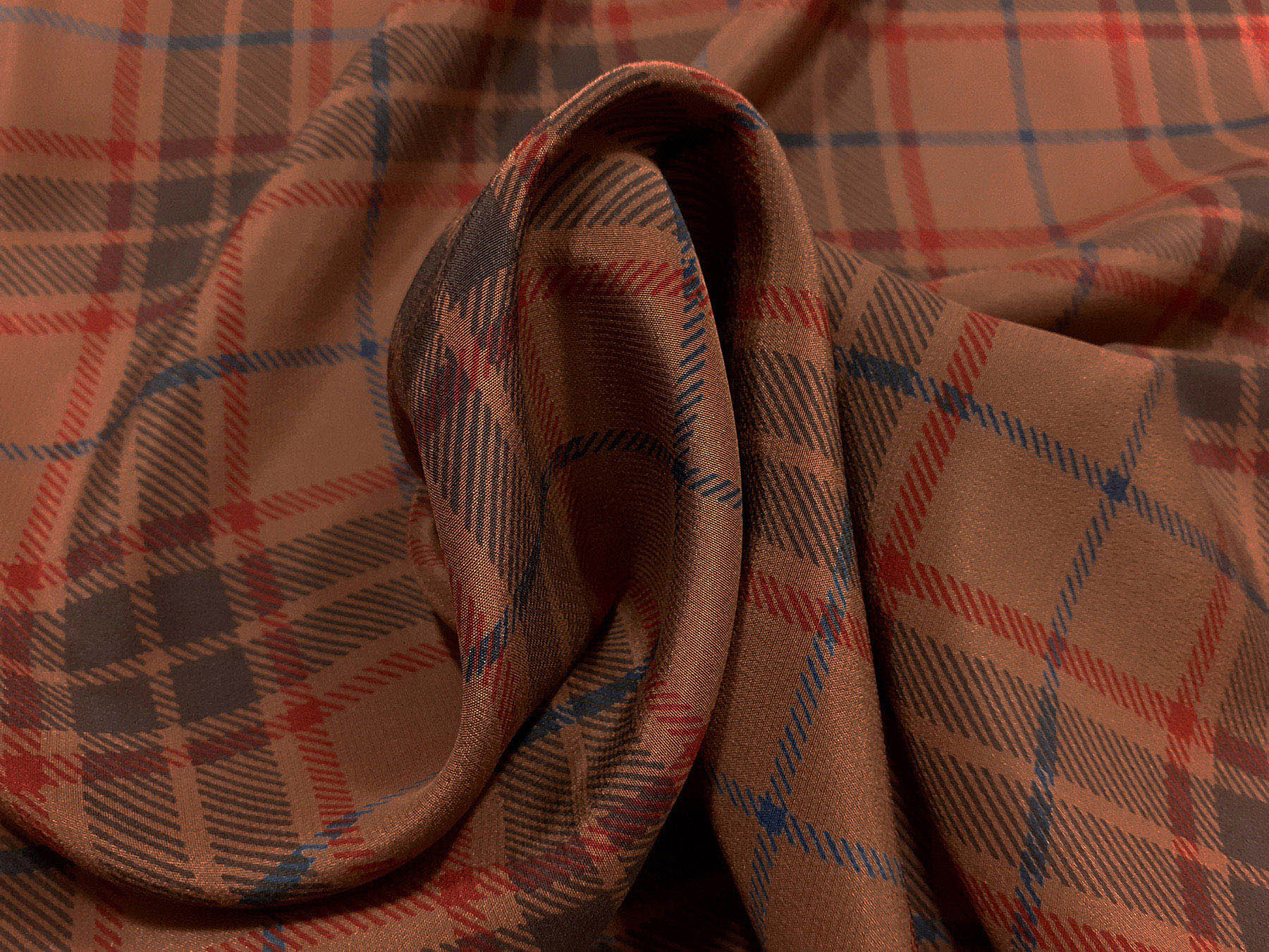 Crepe de Chine in seta Principe di Galles su fondo rame
