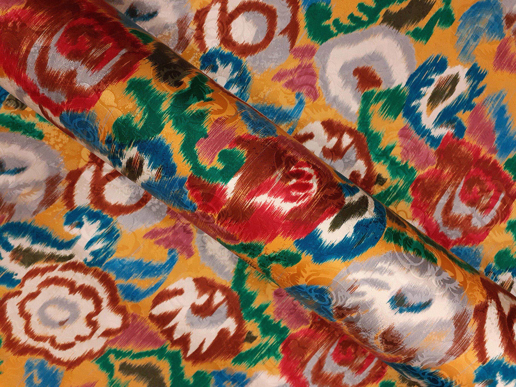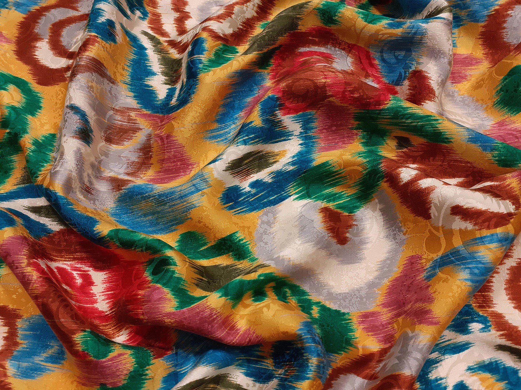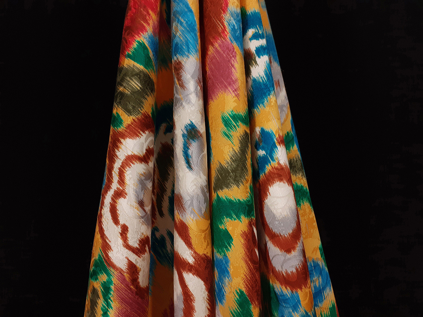 In questo tessuto di seta pura, prodotto a Como, la lavorazione jacquard con il contrasto fra lucido e opaco, crea un piacevole effetto di tridimensionalità. Perfetto per la realizzazione di abiti ampi e sinuosi, grazie alla sua morbidezza e caduta, può essere utilizzato anche per capi più lineari che mettono in evidenza la ricchezza e la particolarità di questo tipo di tessuto.