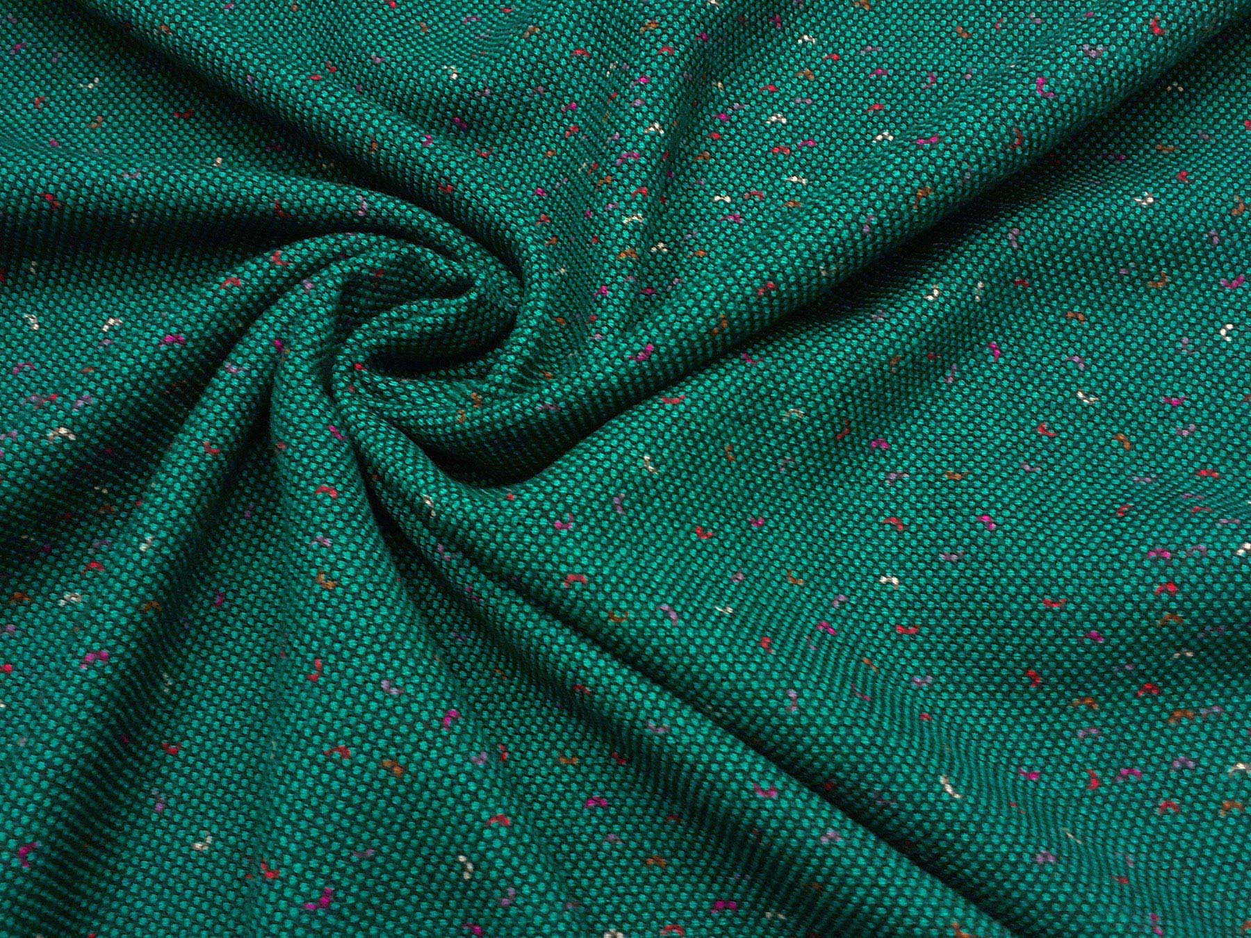 Tessuto in lana disegno occhio di pernice verde effetto “tweed” multicolore