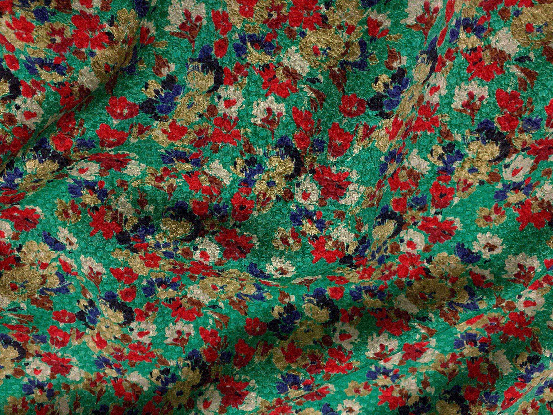 In questo tessuto di seta pura, prodotto a Como, la lavorazione jacquard con il contrasto fra lucido e opaco, crea un piacevole effetto di tridimensionalità. Perfetto per la realizzazione di abiti ampi e sinuosi, grazie alla sua morbidezza e caduta, può essere utilizzato anche per capi più lineari che mettono in evidenza la ricchezza e la particolarità di questo tipo di tessuto.