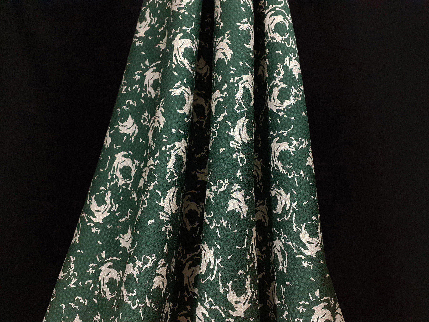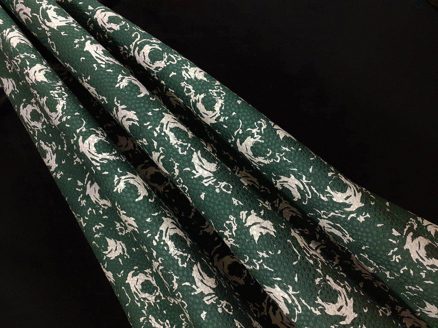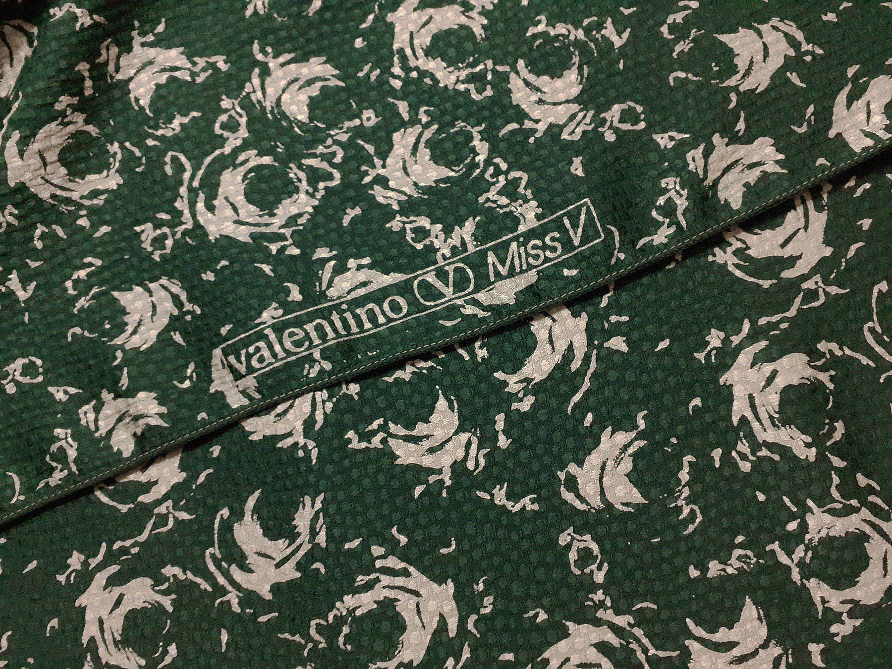 Seta jacquard fantasia floreale su fondo verde scuro. Valentino Miss V