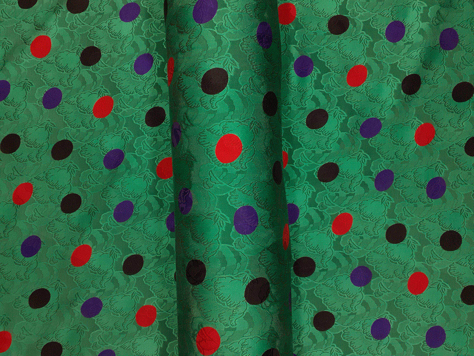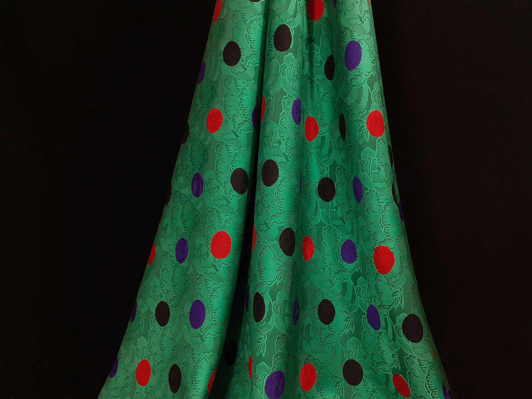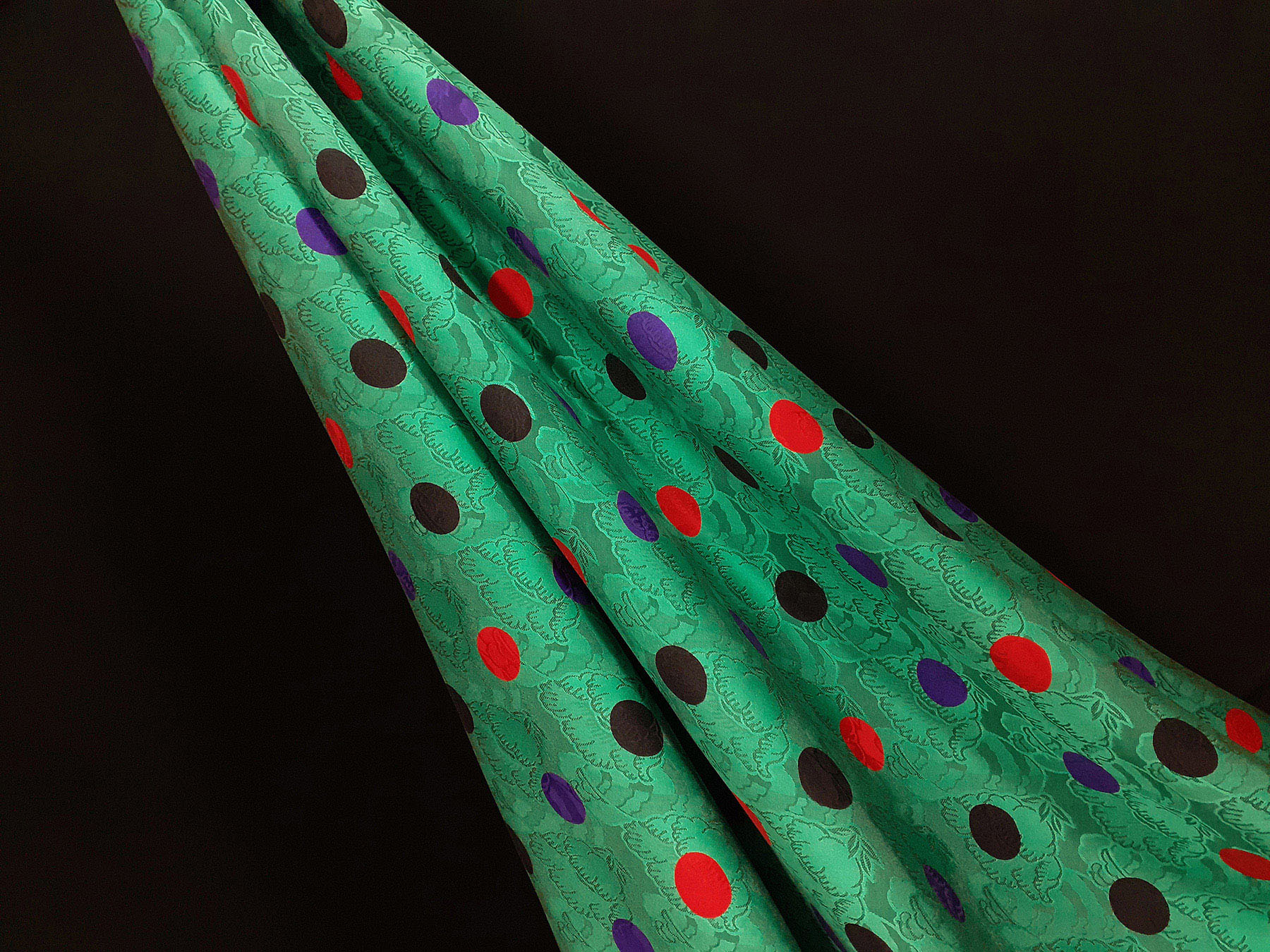In questo tessuto di seta pura, prodotto a Como, la lavorazione jacquard con il contrasto fra lucido e opaco, crea un piacevole effetto di tridimensionalità. Perfetto per la realizzazione di abiti ampi e sinuosi, grazie alla sua morbidezza e caduta, può essere utilizzato anche per capi più lineari che mettono in evidenza la ricchezza e la particolarità di questo tipo di tessuto.