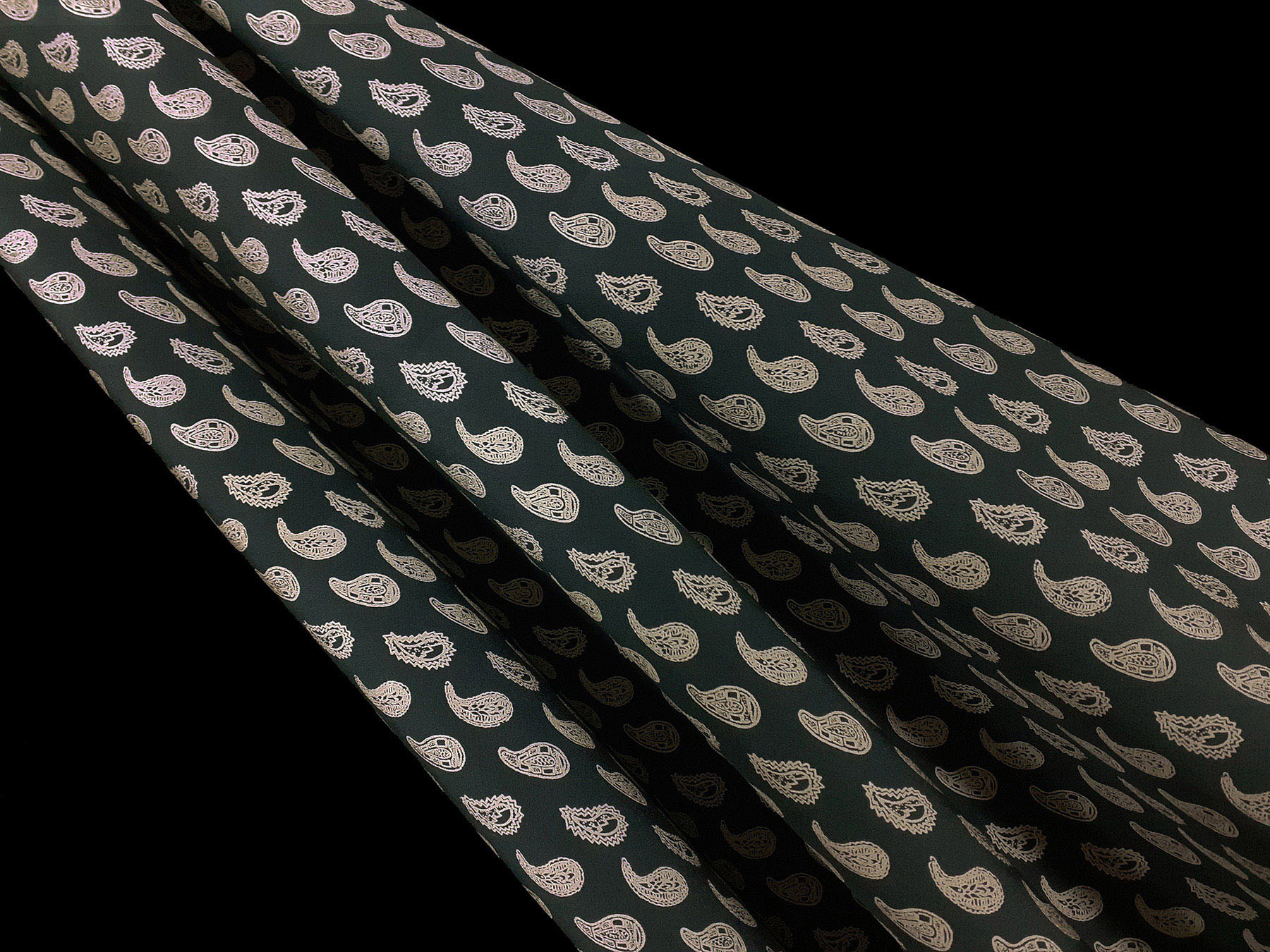 Crepe de Chine in seta fantasia cashmere su fondo verde