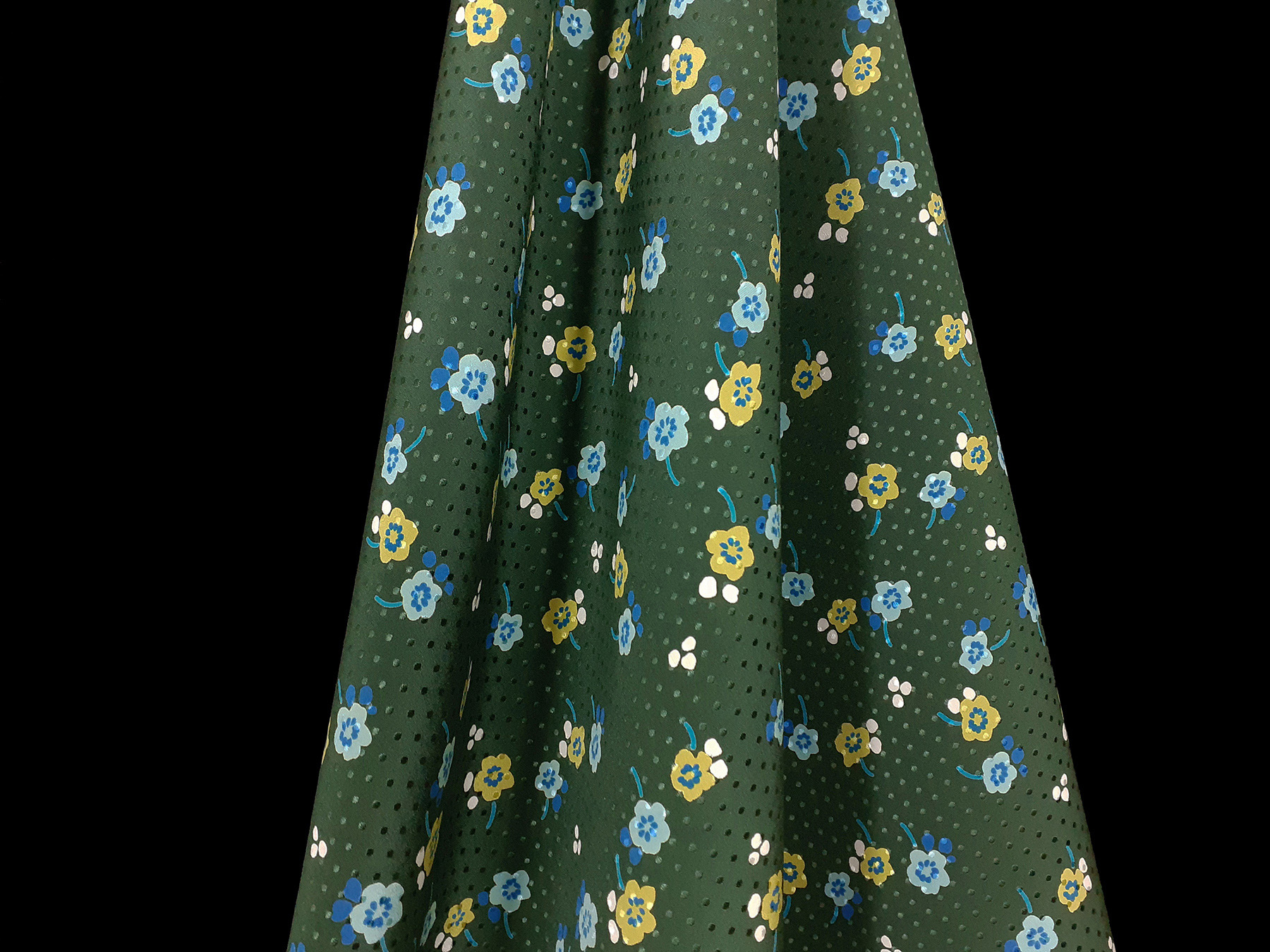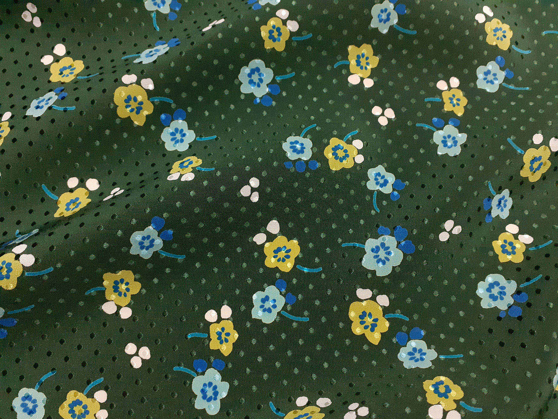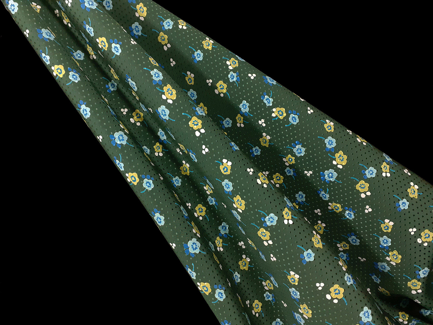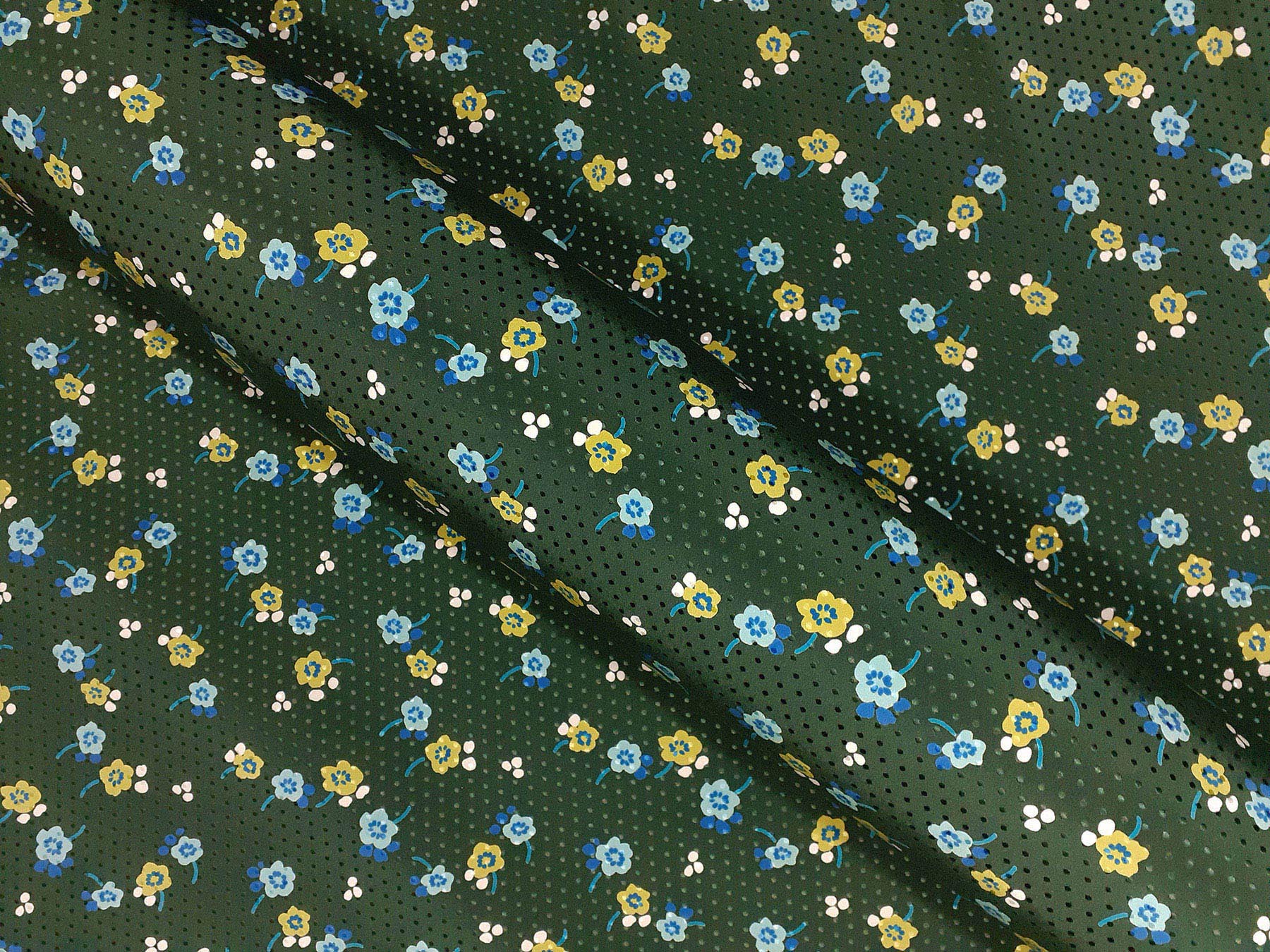 Seta jacquard fantasia floreale su fondo verde felce