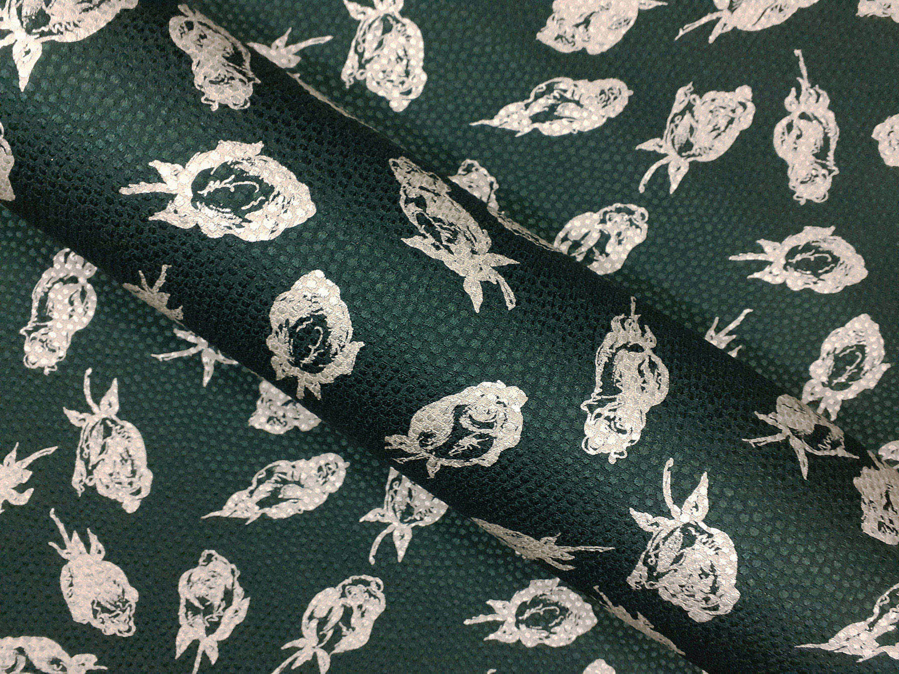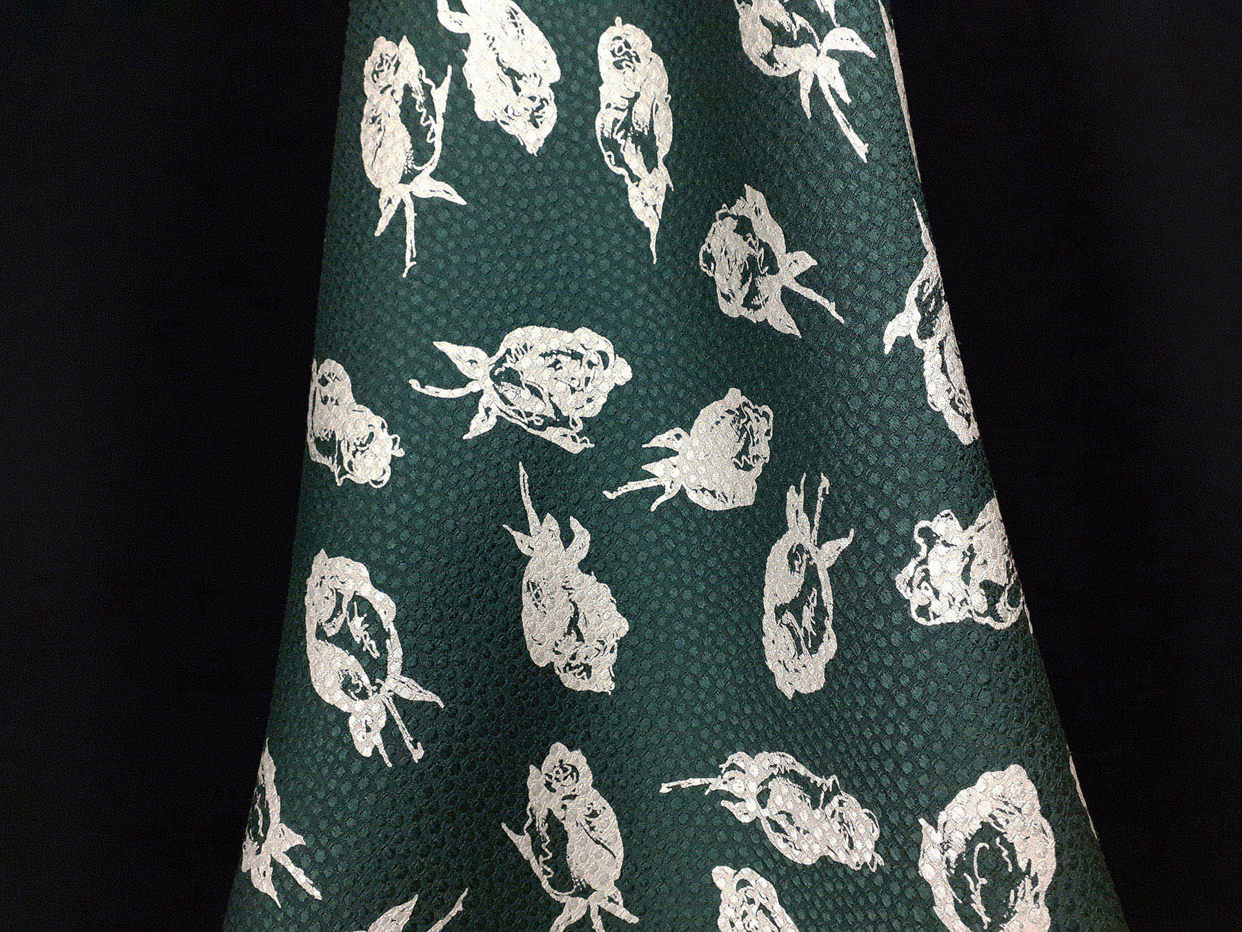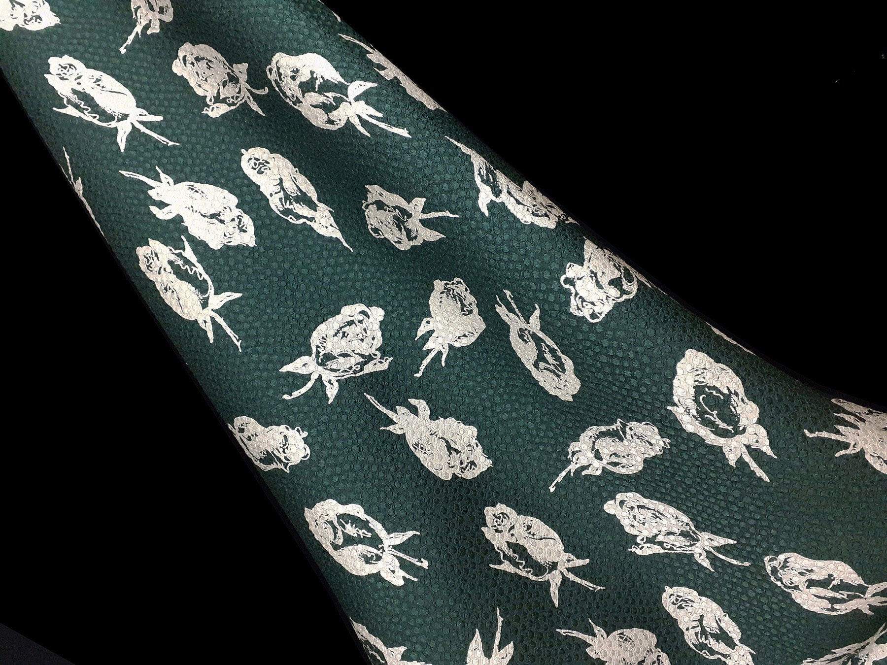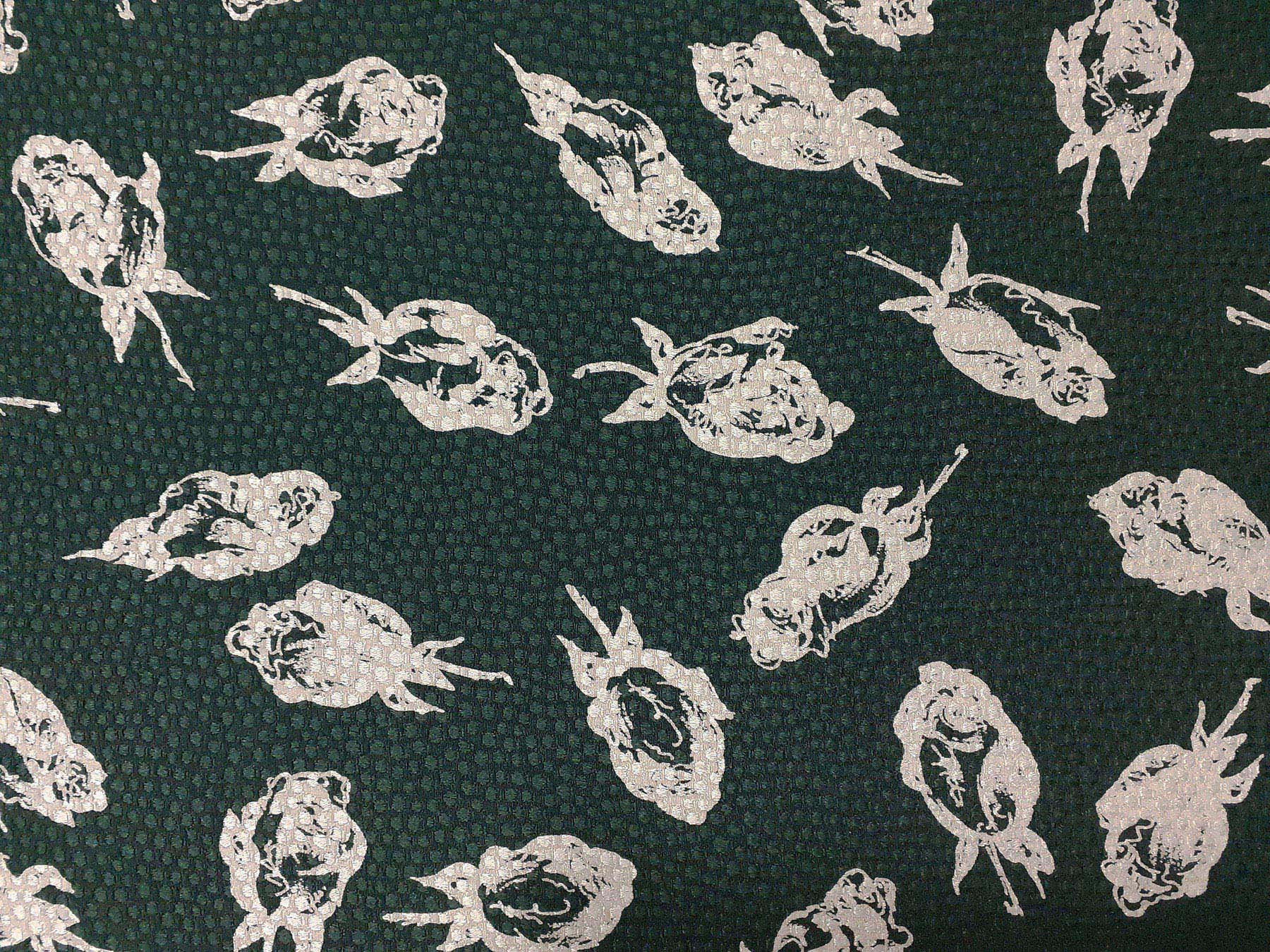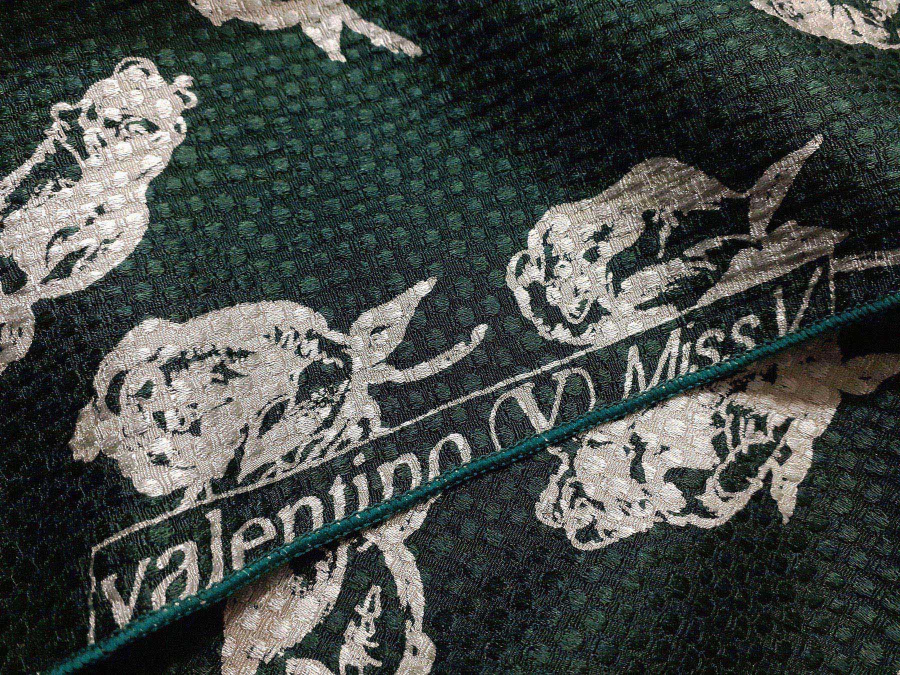 Seta jacquard fantasia stilizzata floreale su fondo verde scuro. Valentino Miss V
