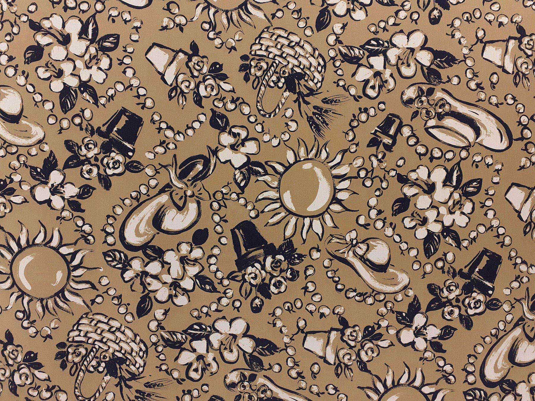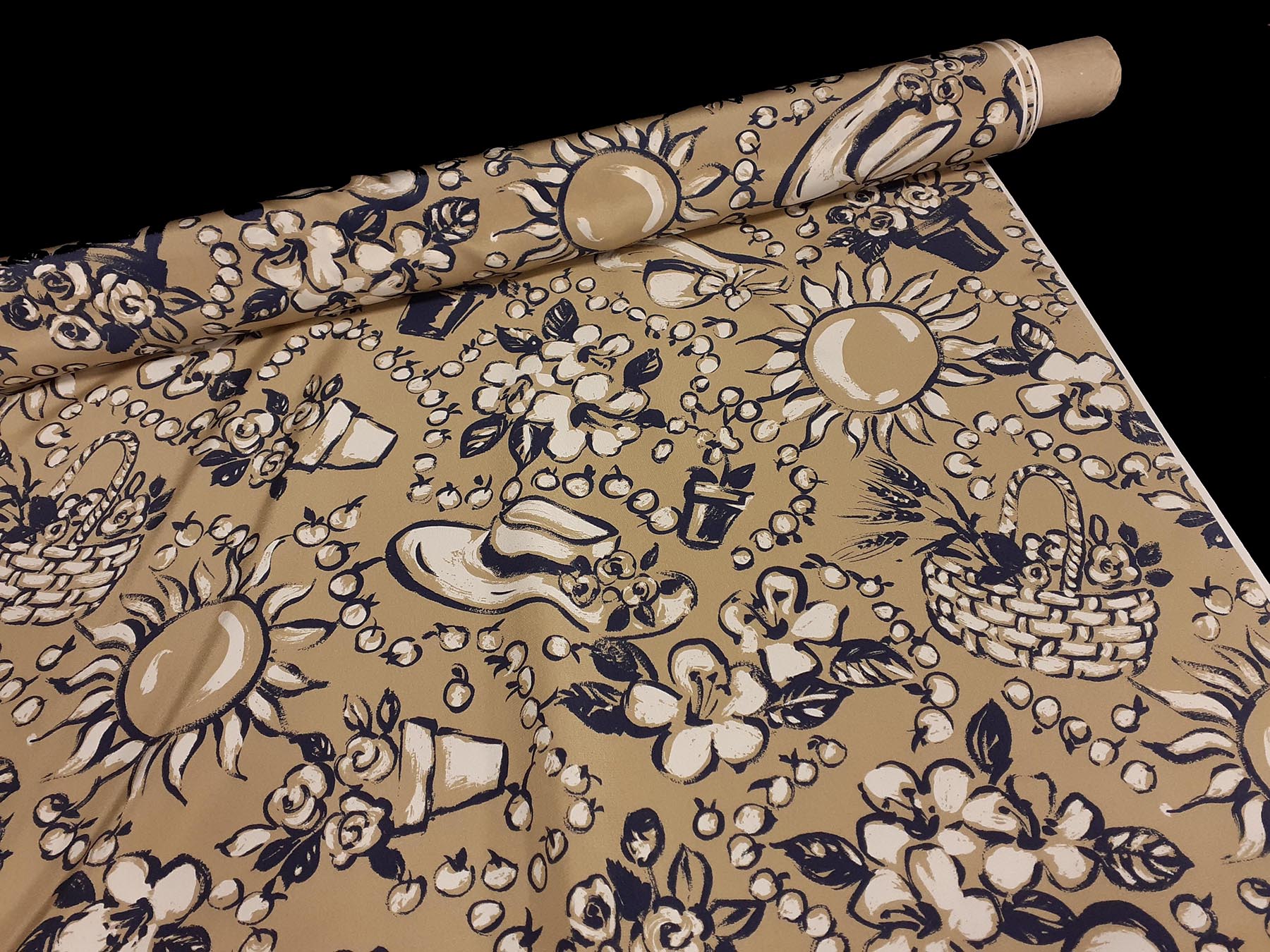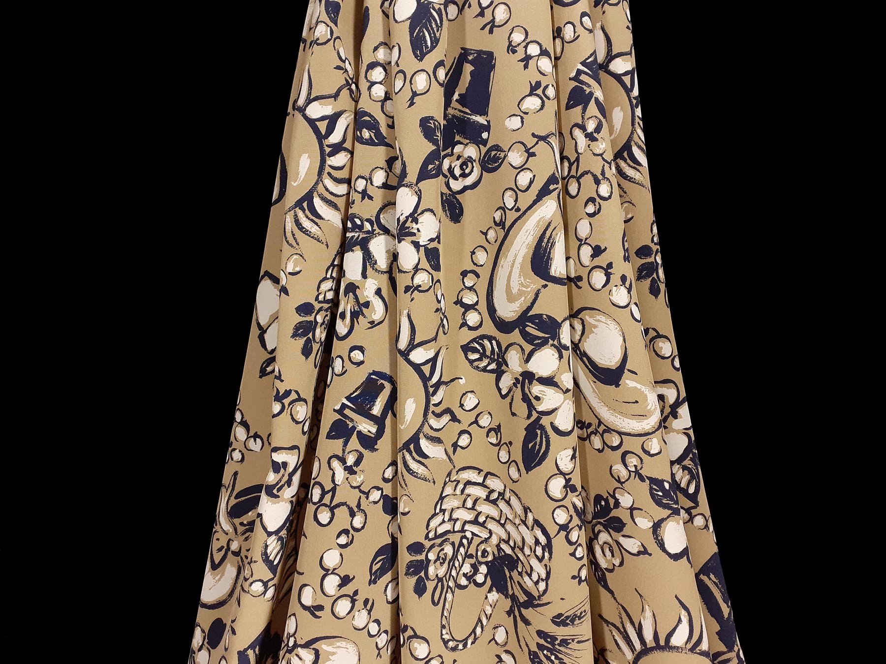 Crepe de Chine in seta fantasia blu e bianca su fondo beige