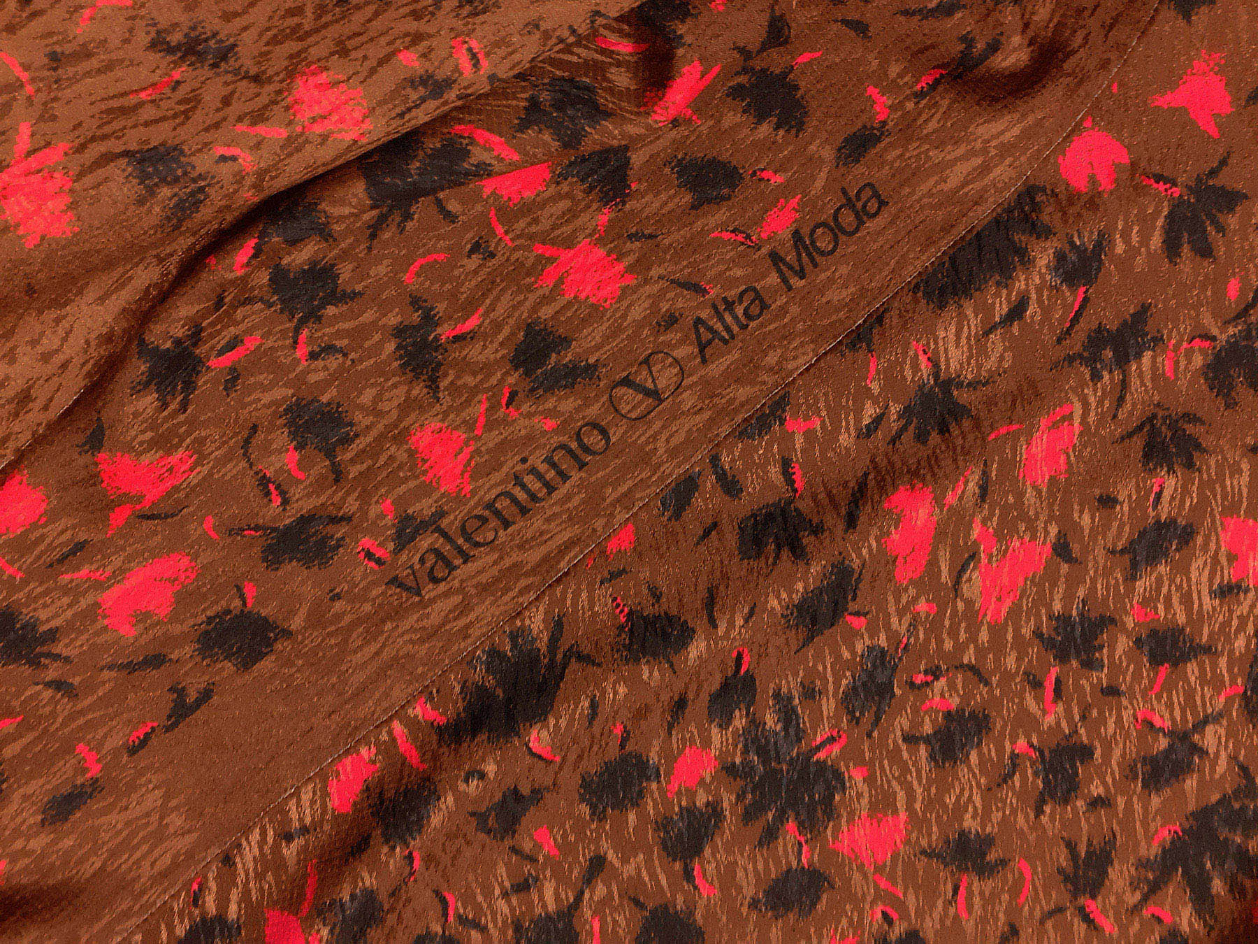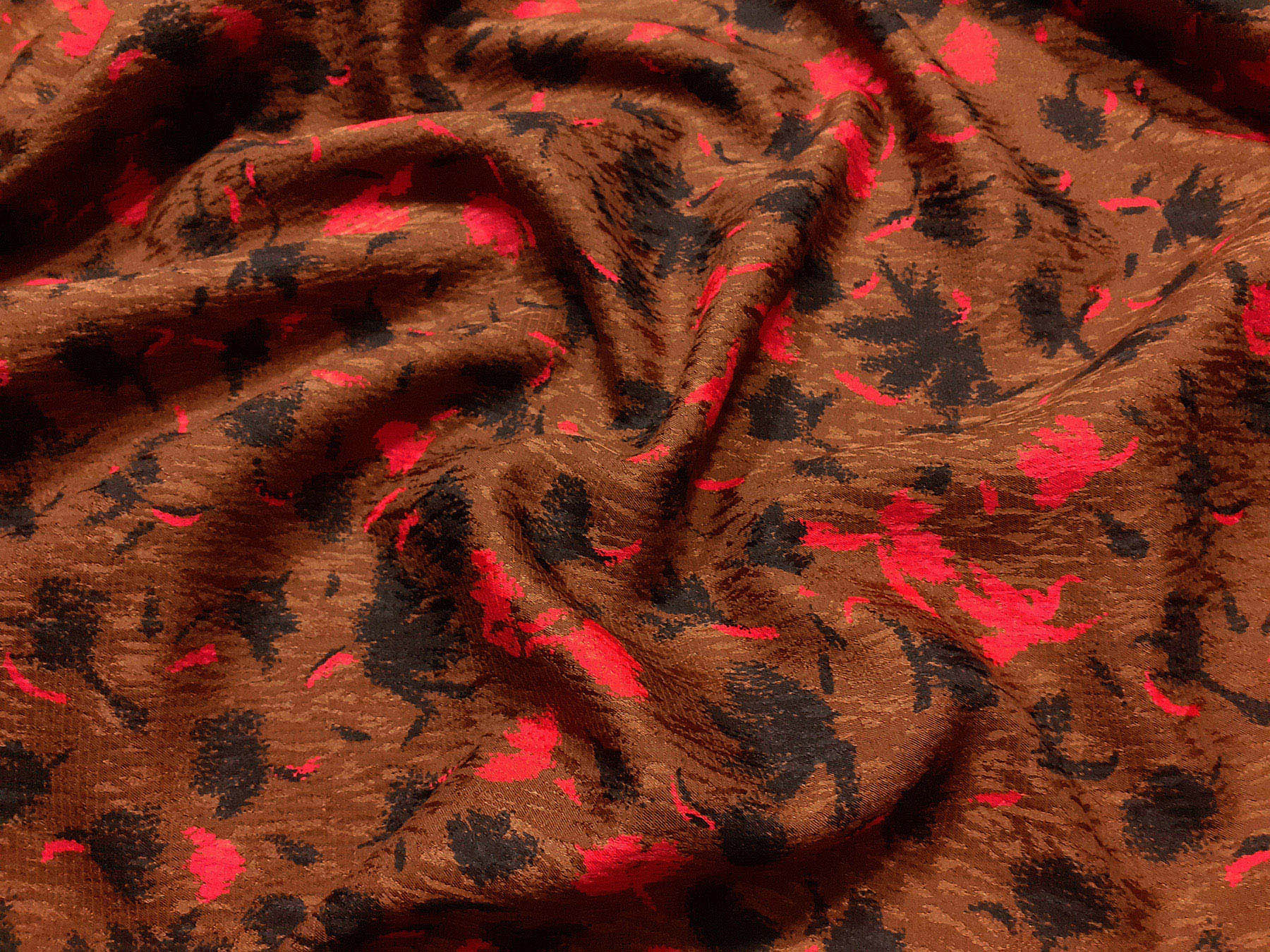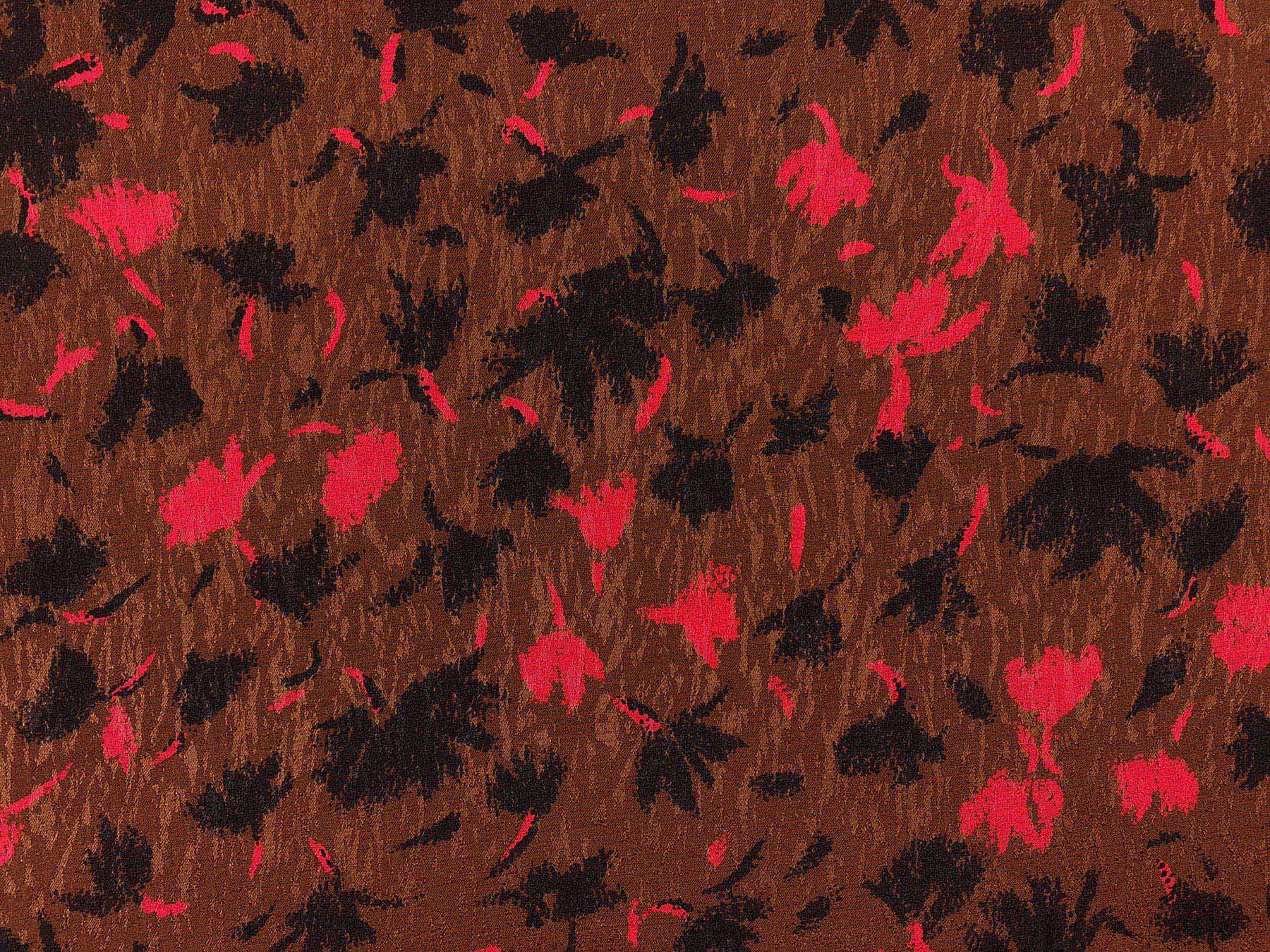 Seta jacquard fantasia floreale su fondo marrone rossiccio. Valentino Alta Moda