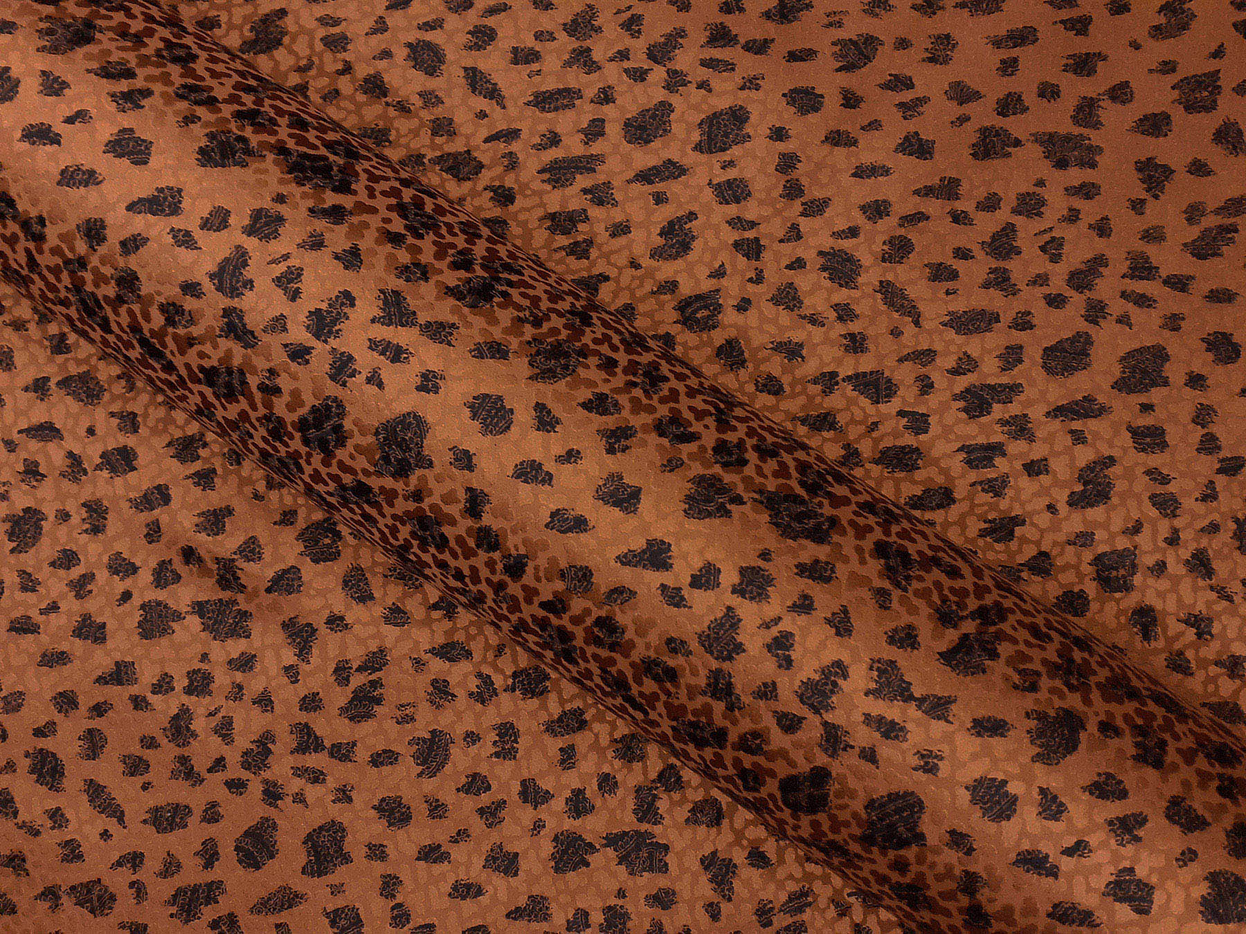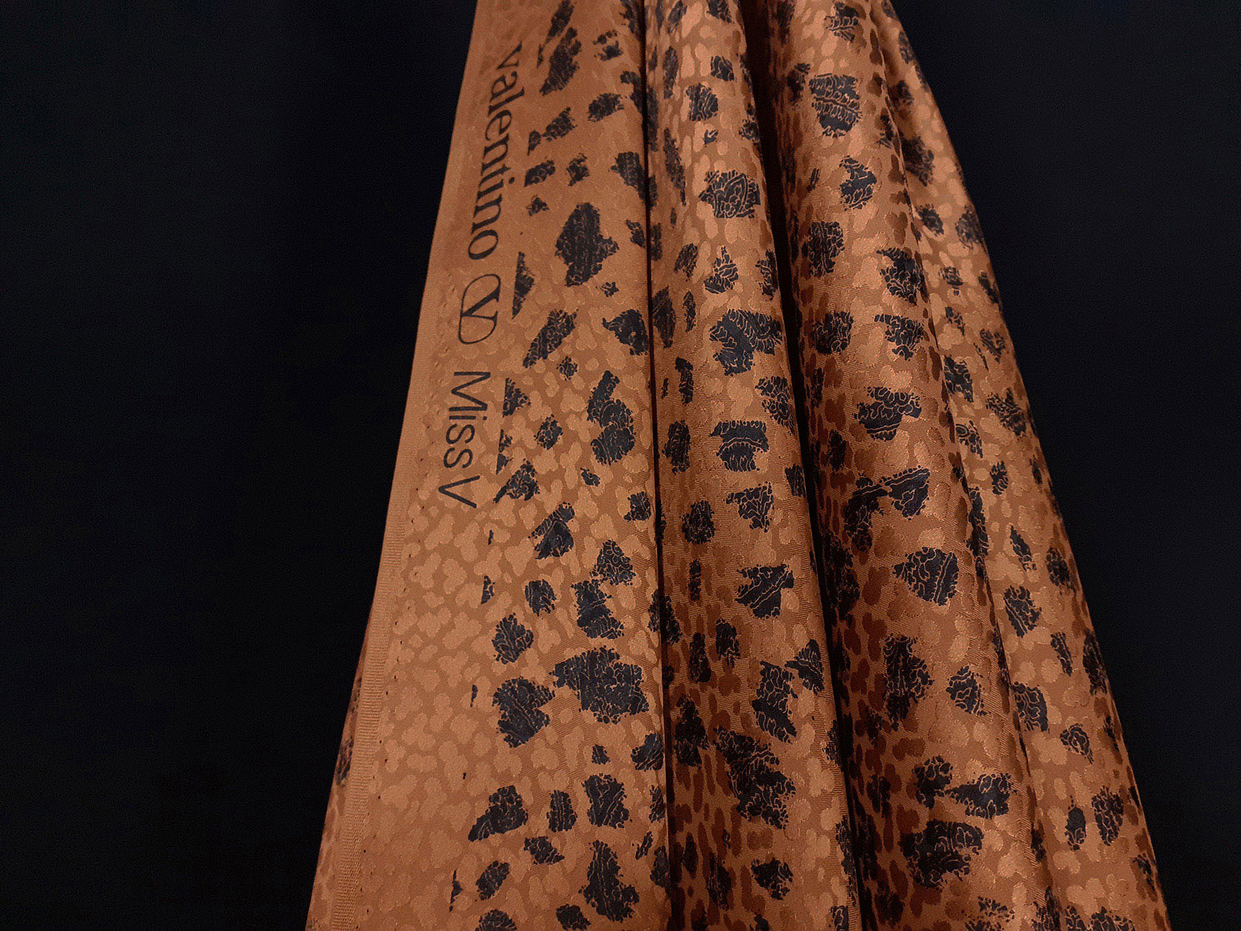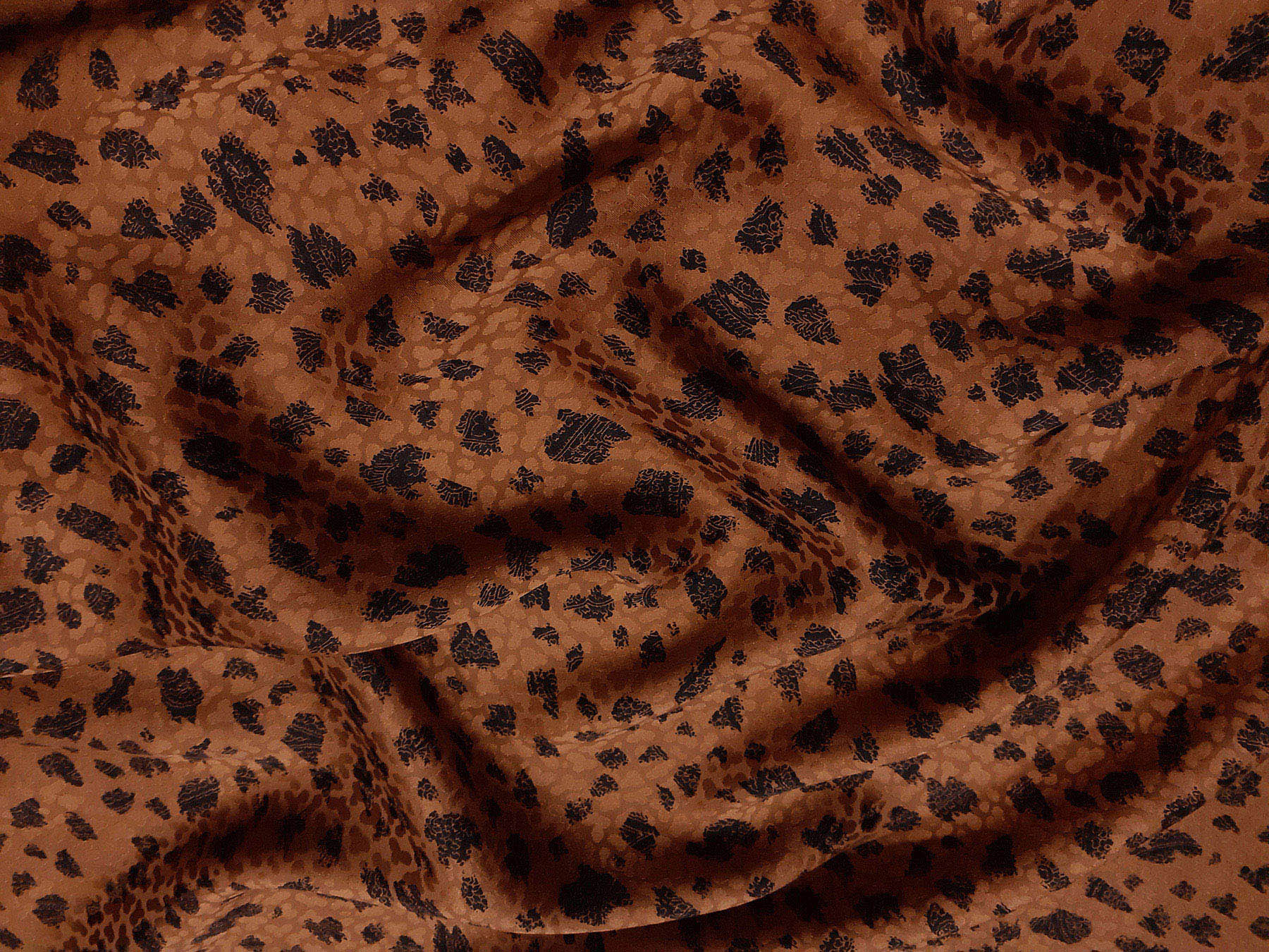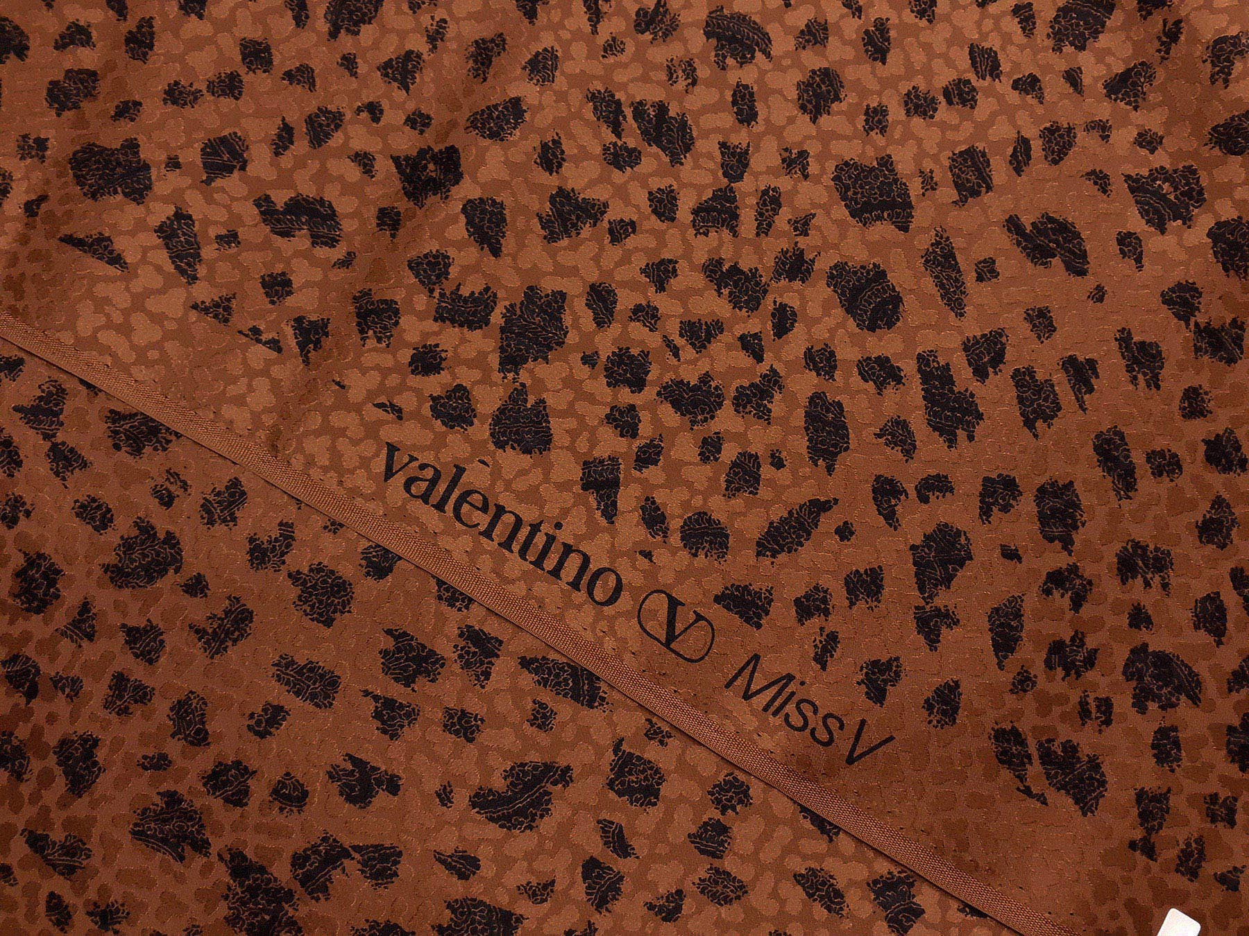 Seta jacquard fantasia astratta nera su fondo marrone rame. Valentino Miss V