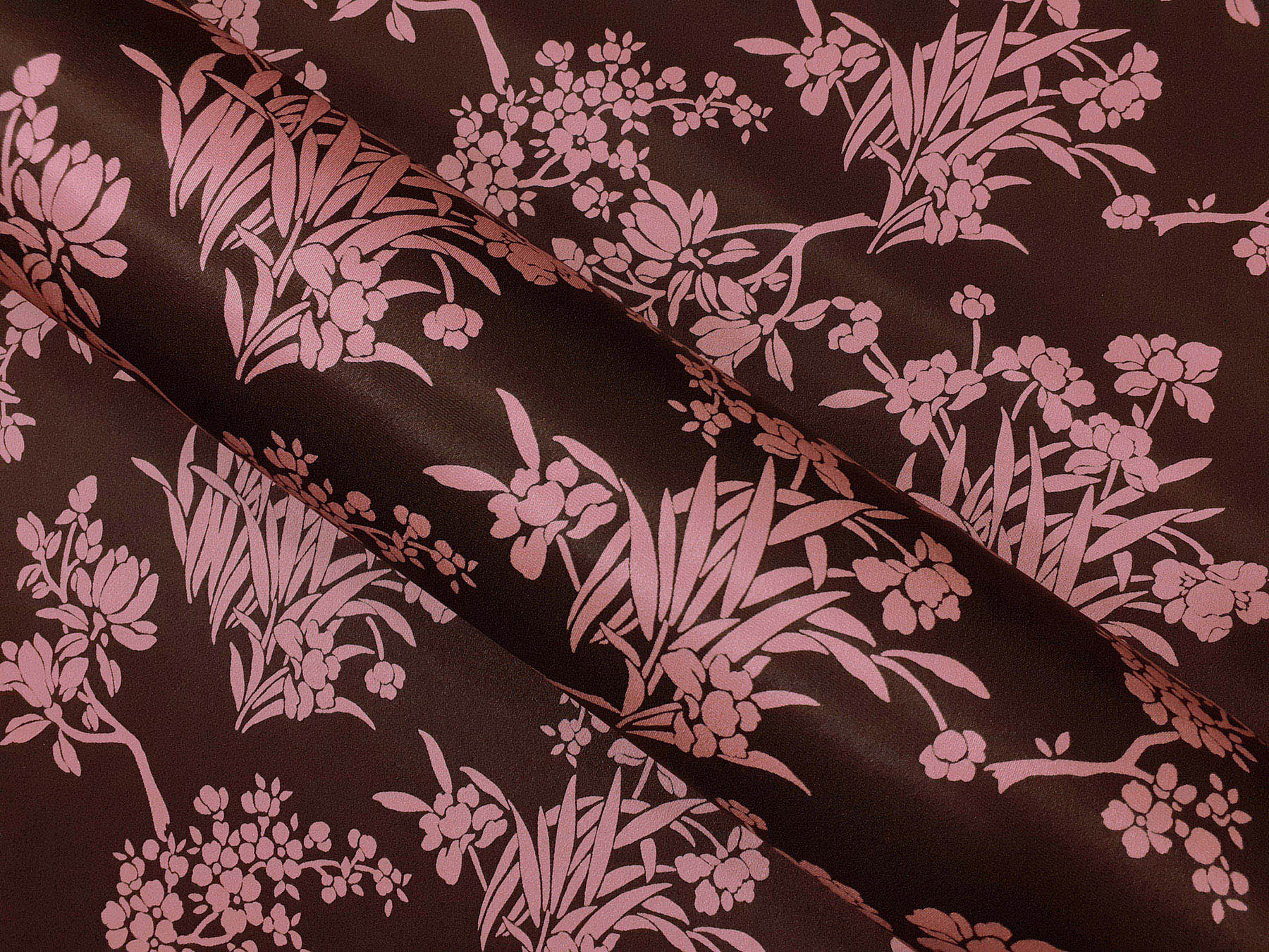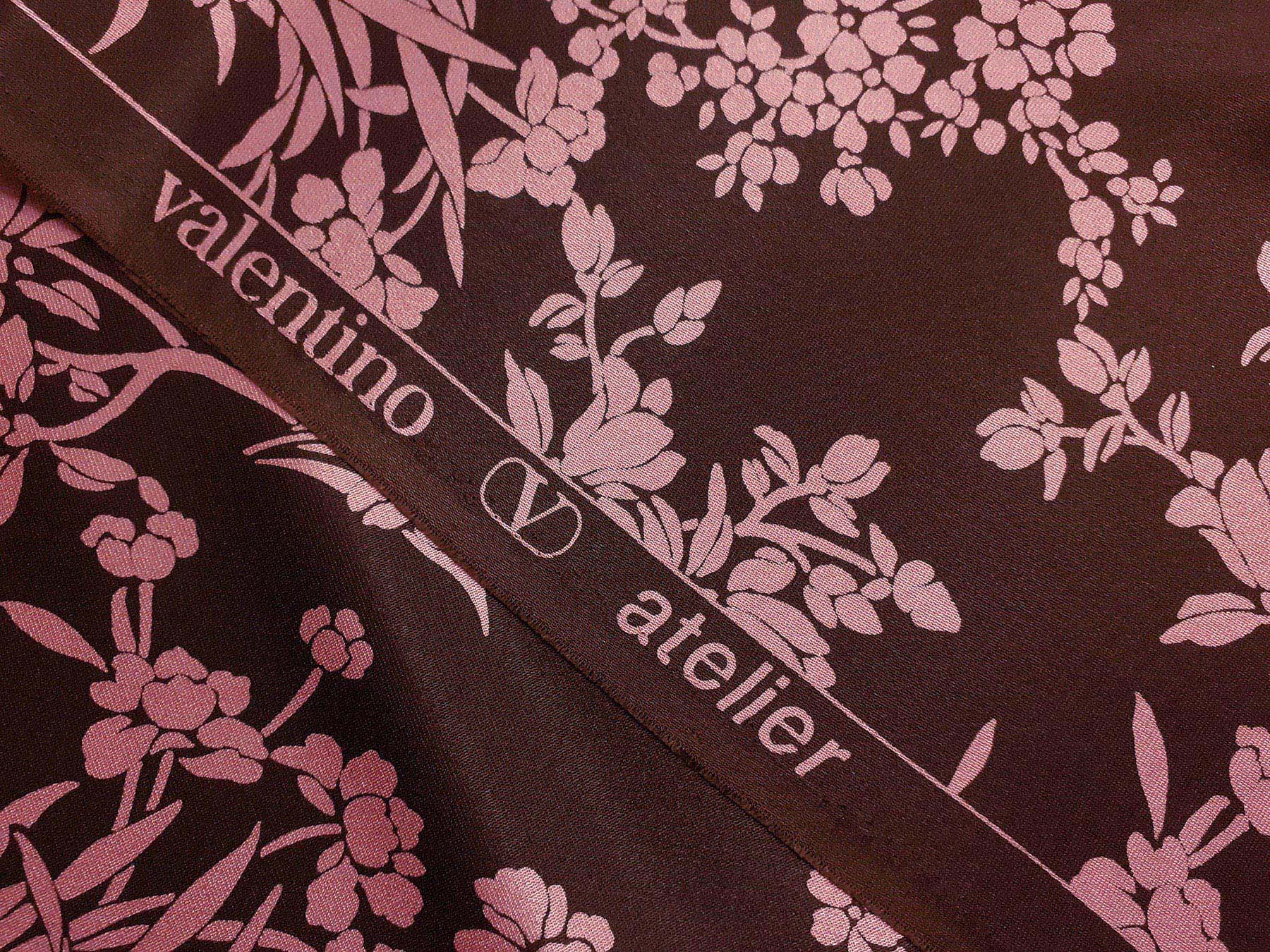 Cady in seta fiori su fondo marrone. Valentino Atelier