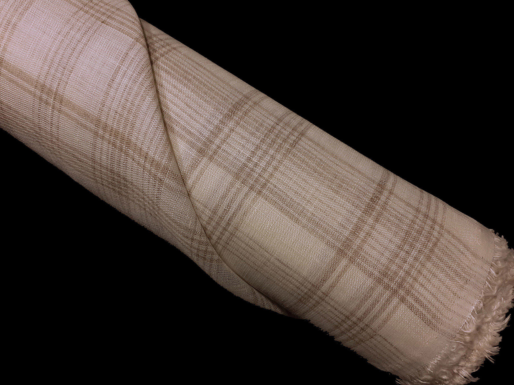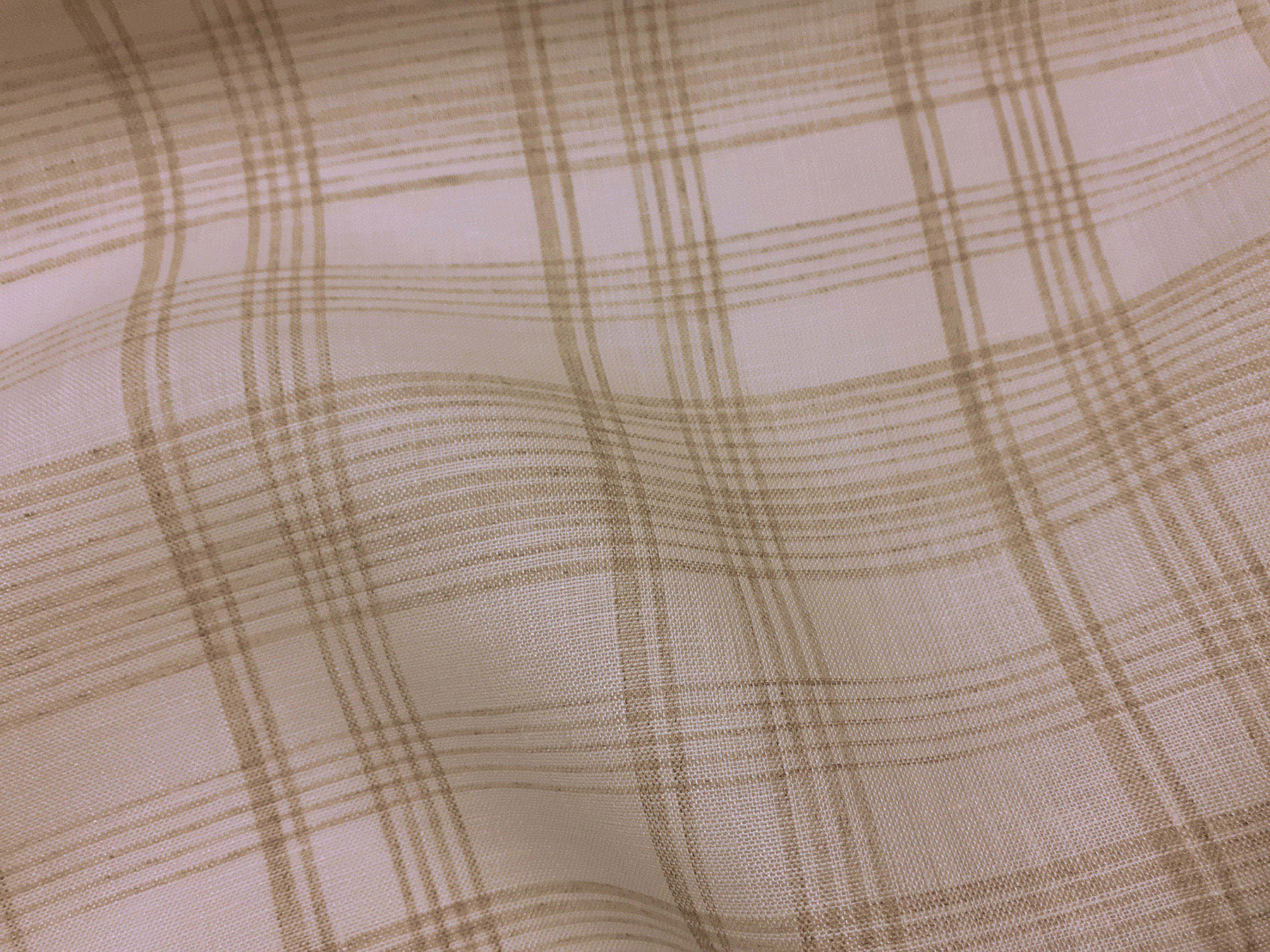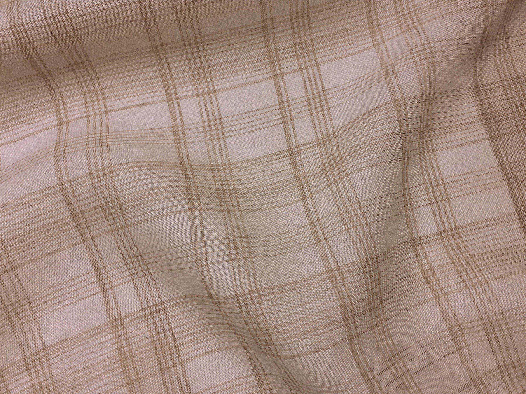 Tessuto per camicie in puro lino Principe di Galles ecru .