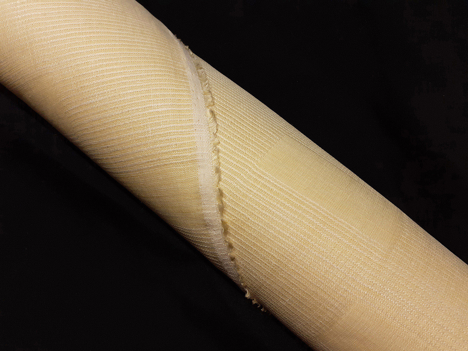 Tessuto per camicie in puro lino giallo con effetto quadro jacquard.