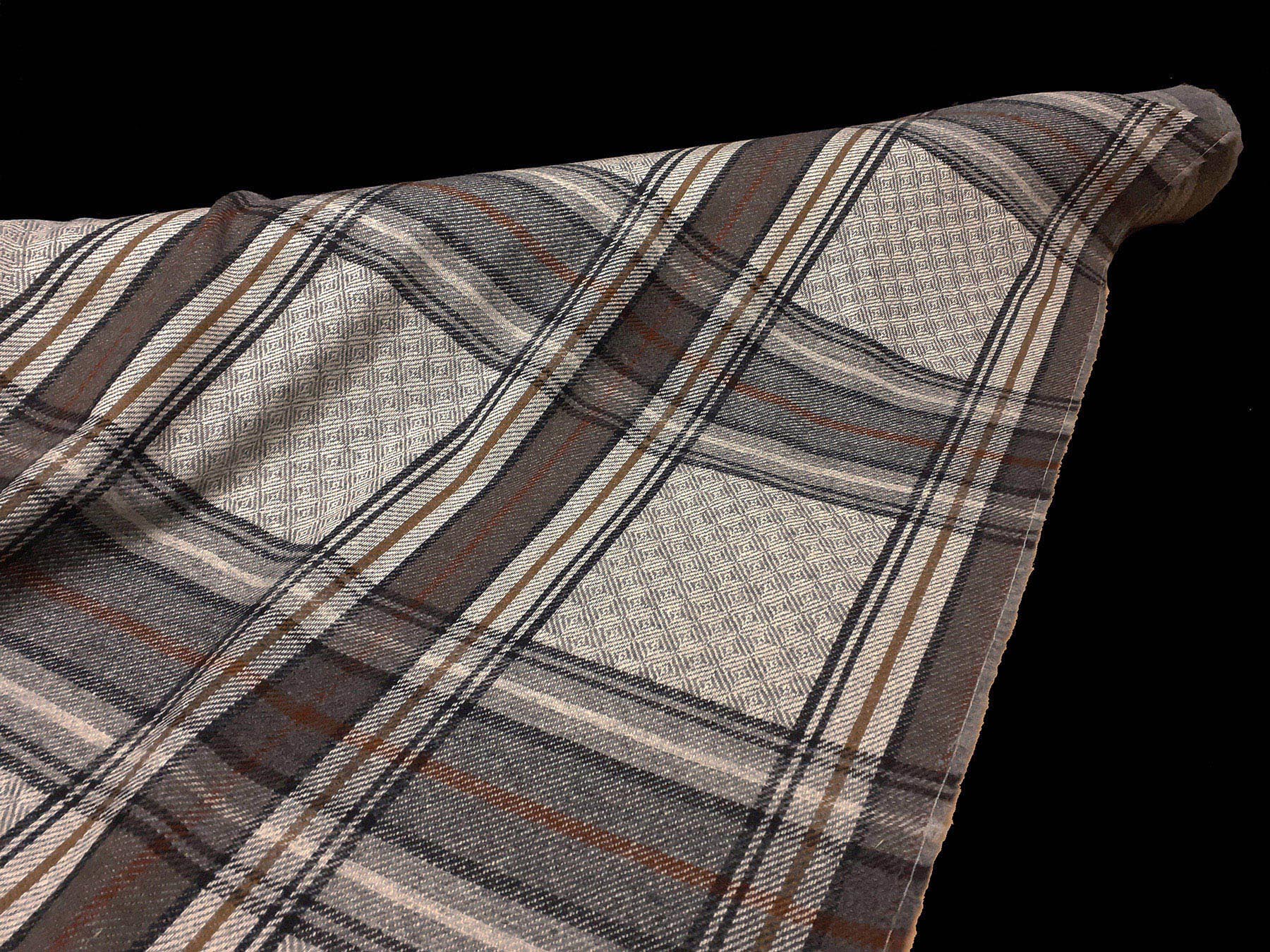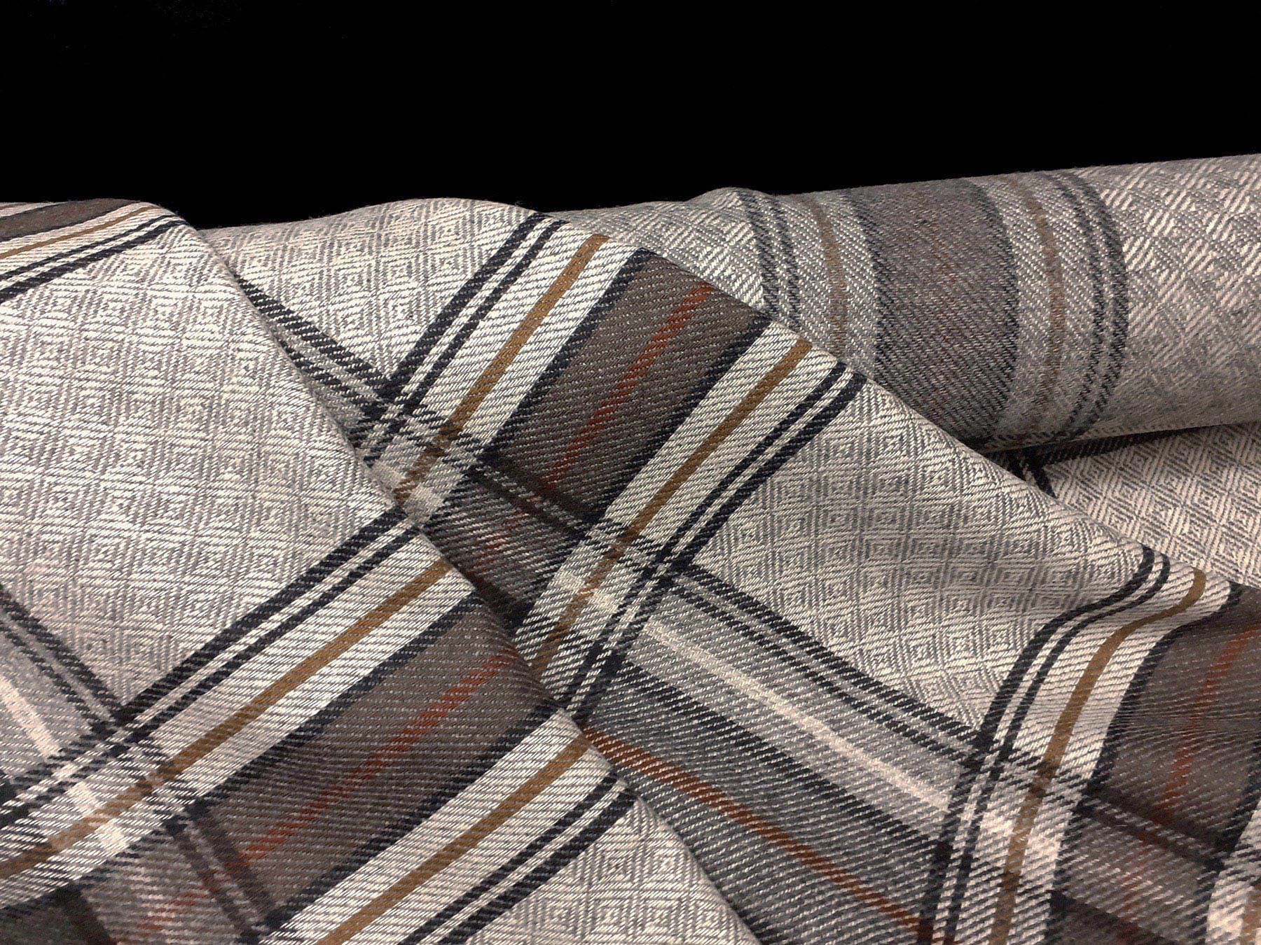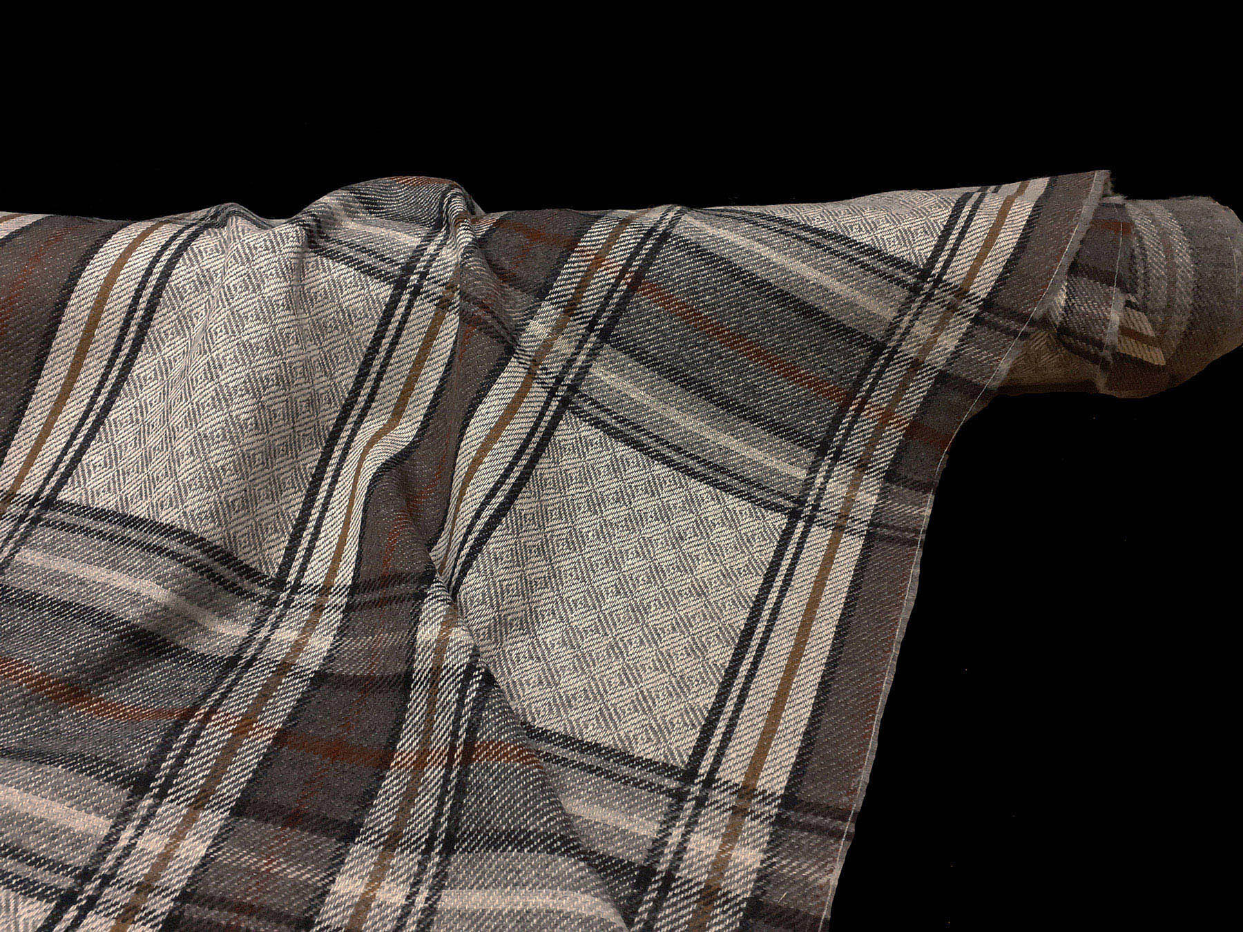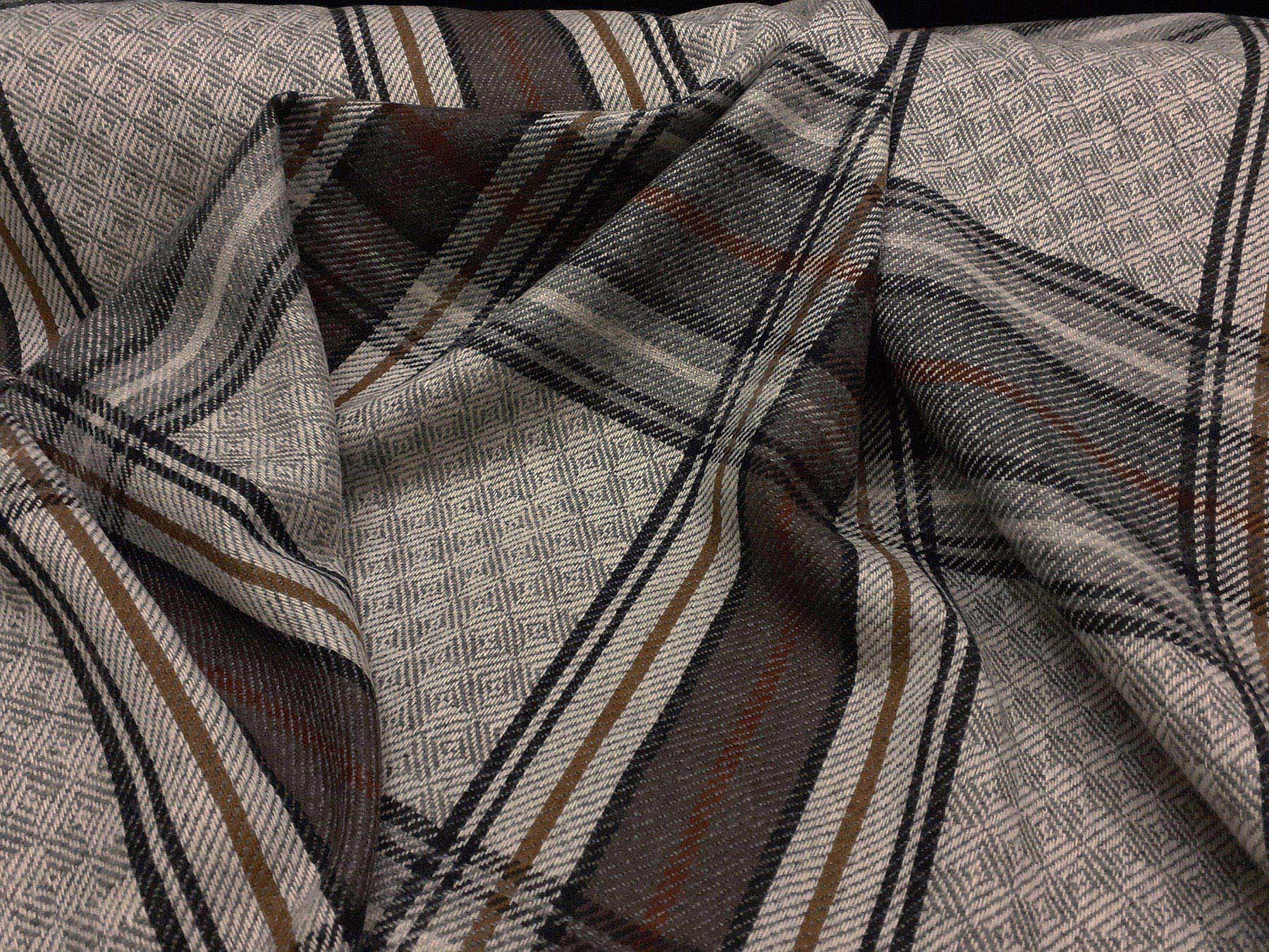 Tessuto in lana jacquard Principe di Galles sui toni marrone e grigio