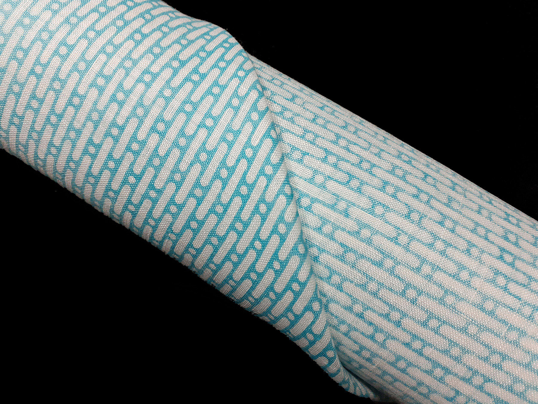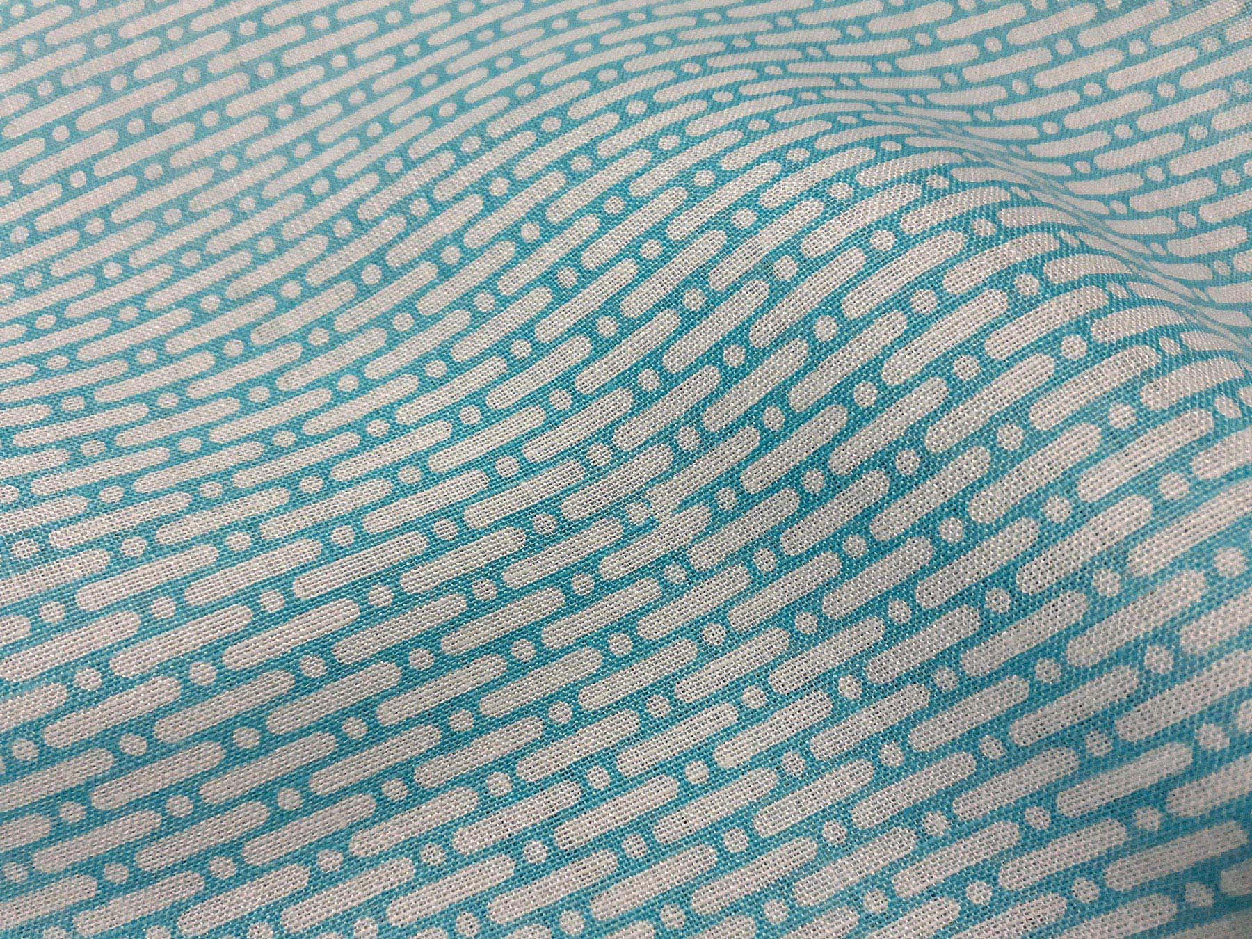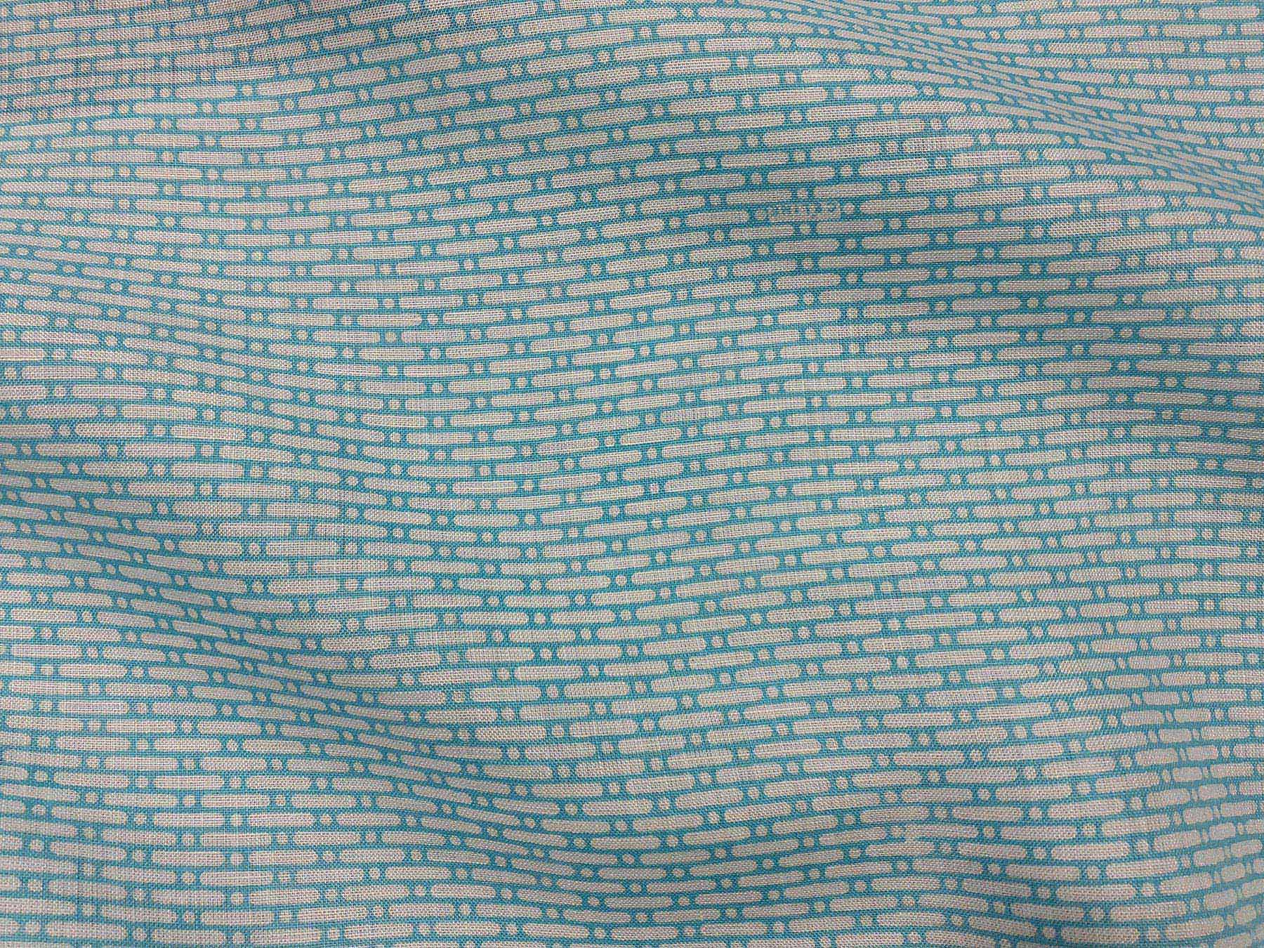 Tessuto per camicie in puro lino con motivi geometrici turchesi.Celine.
