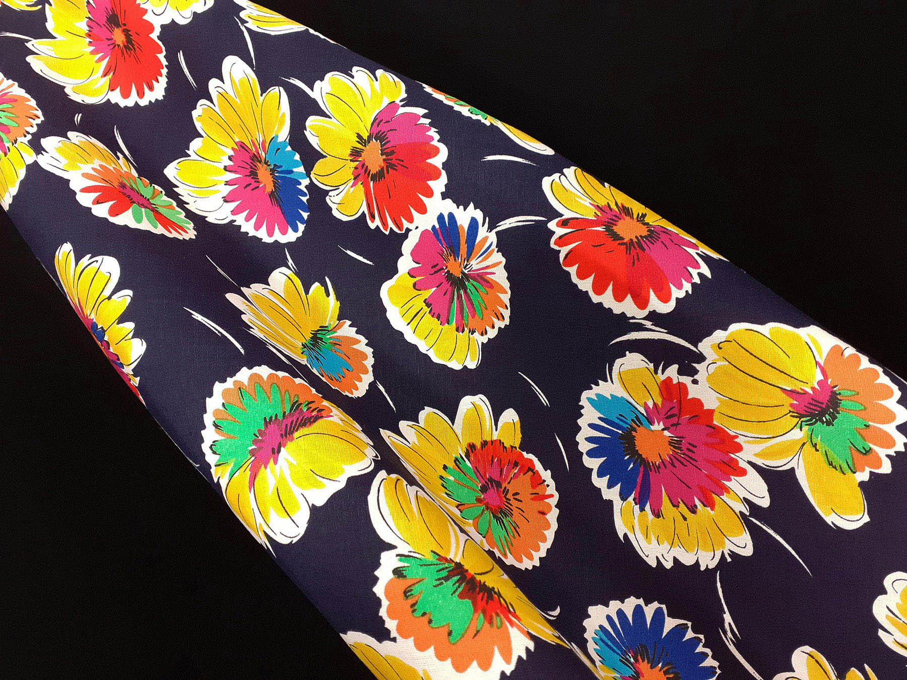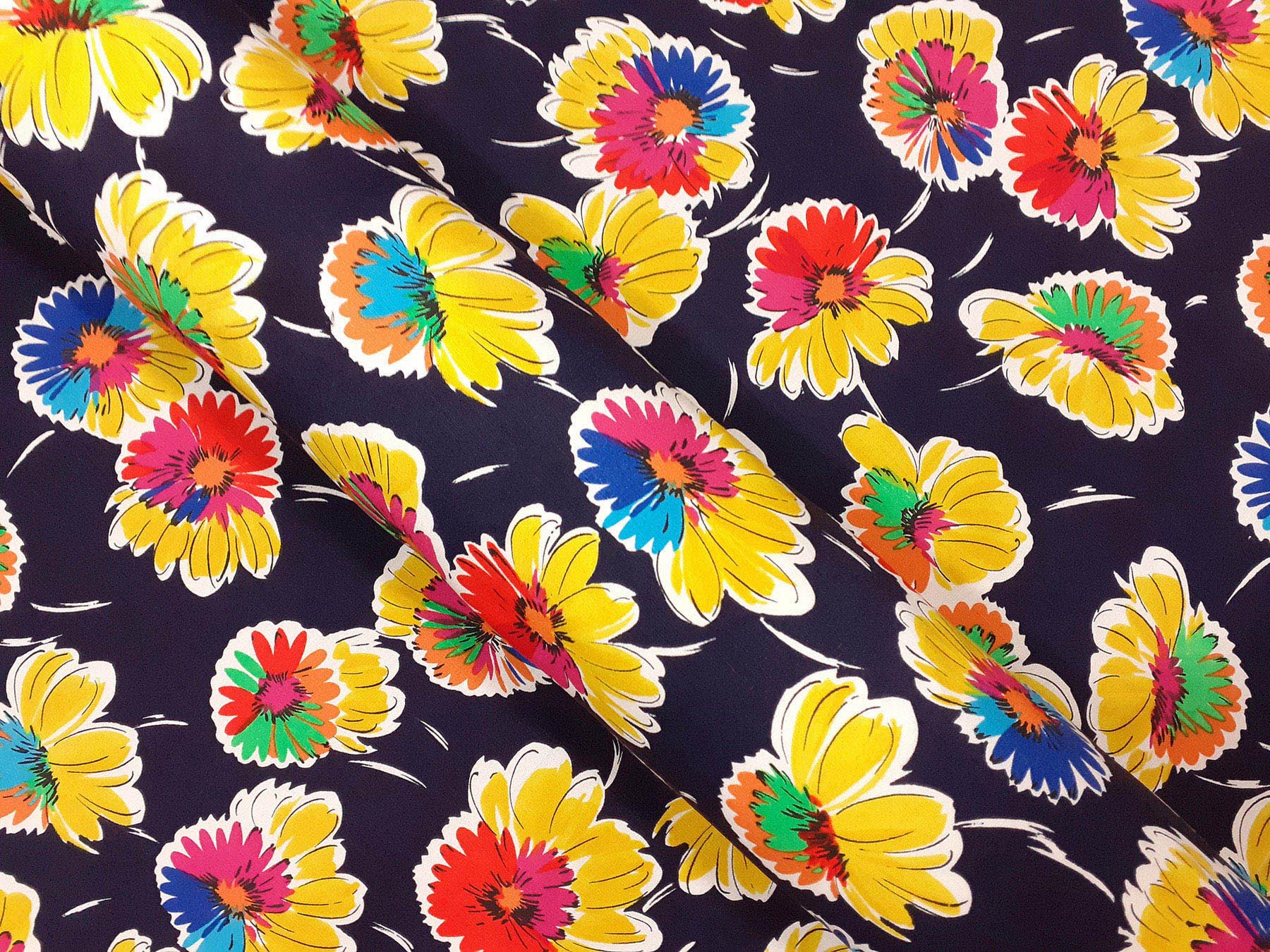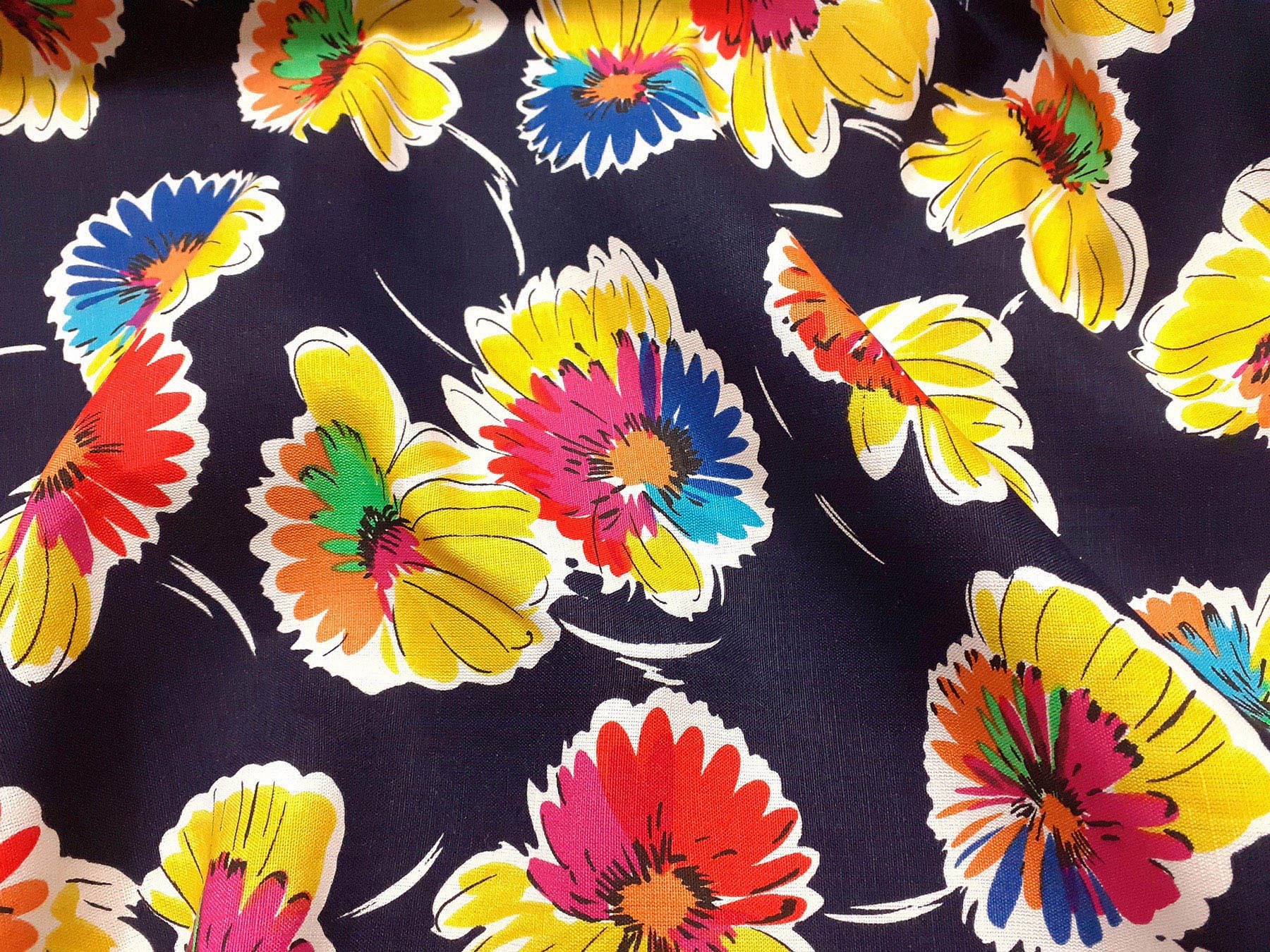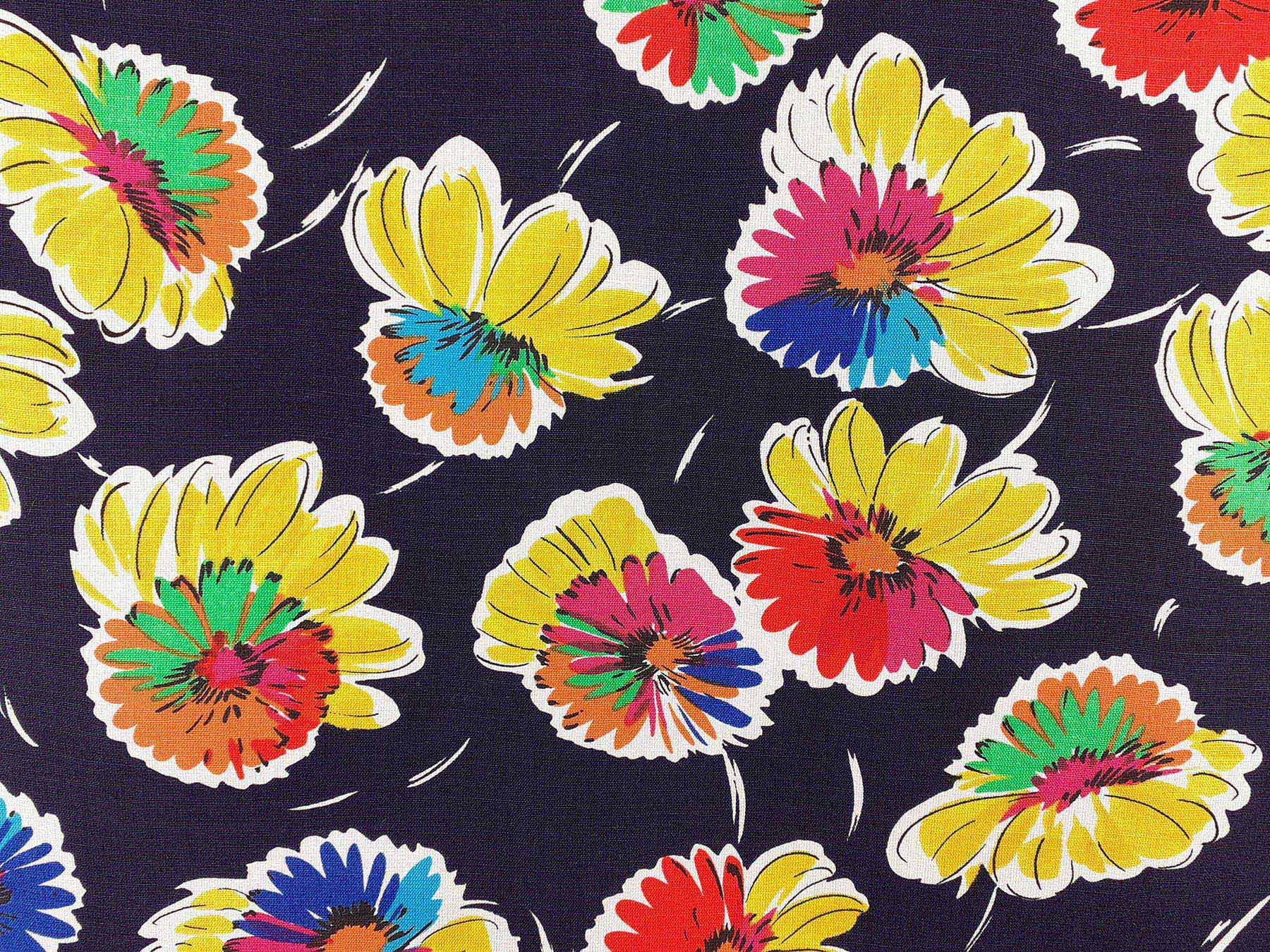 Lino e cotone fantasia floreale fondo blu