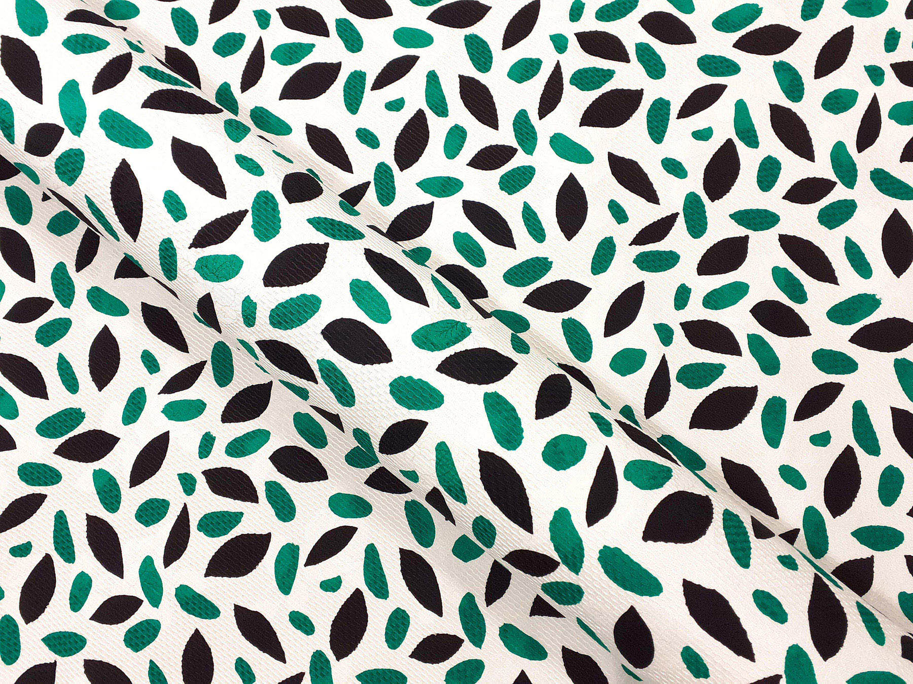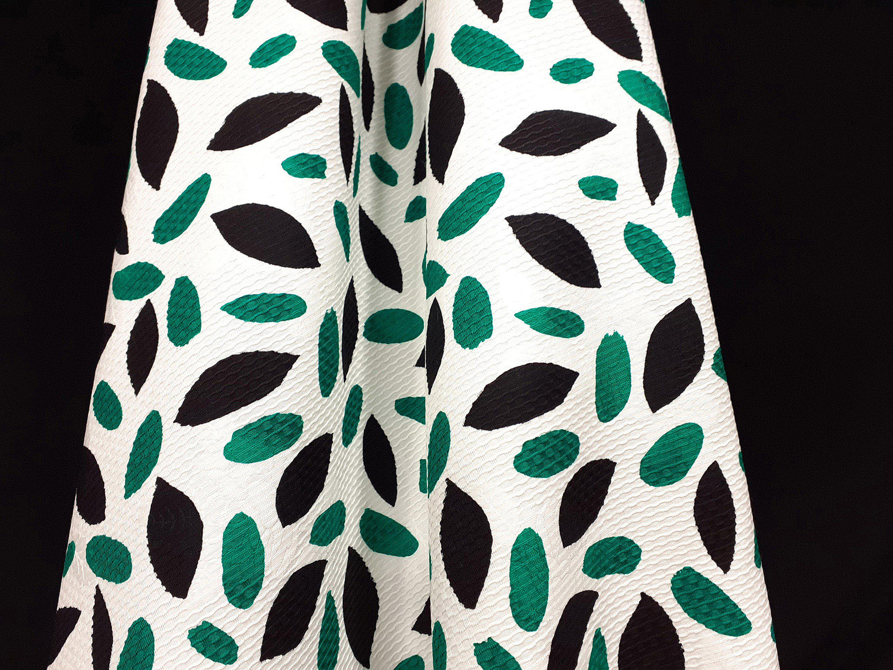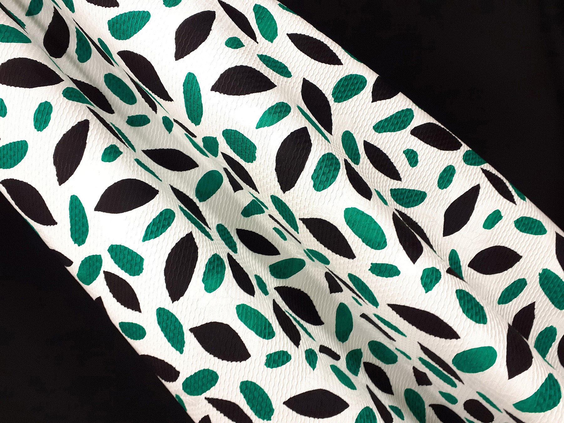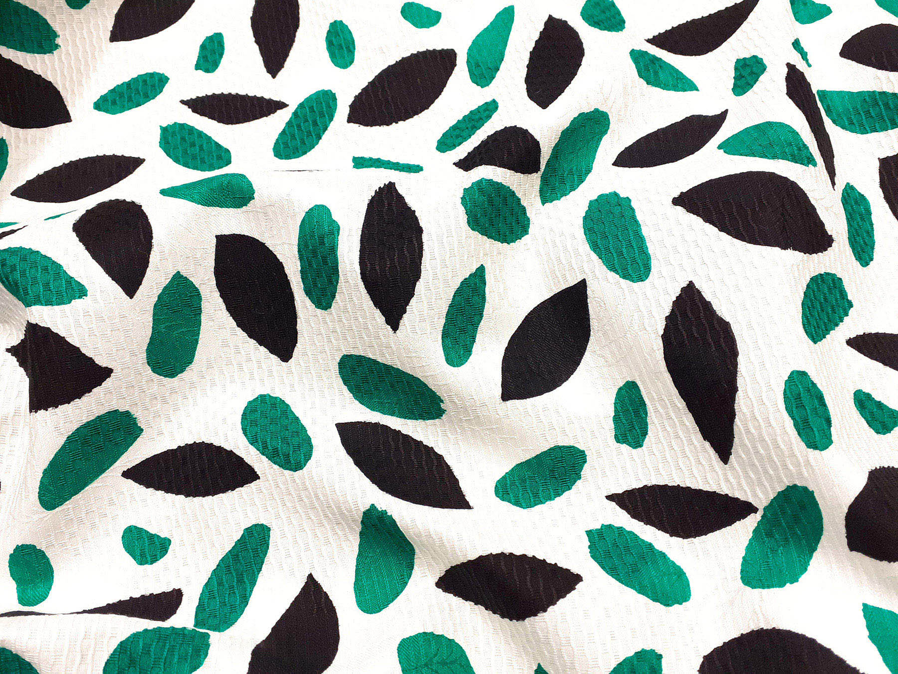 Cotone jacquard fantasia astratta verde su fondo bianco