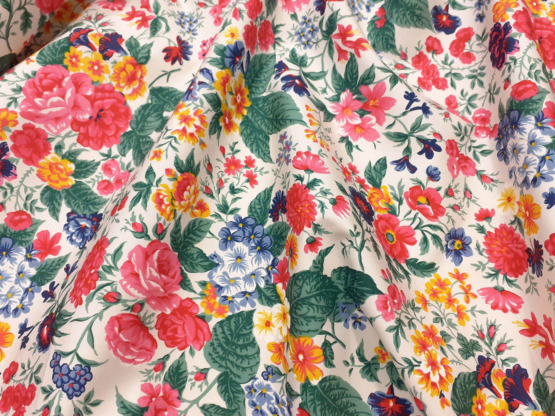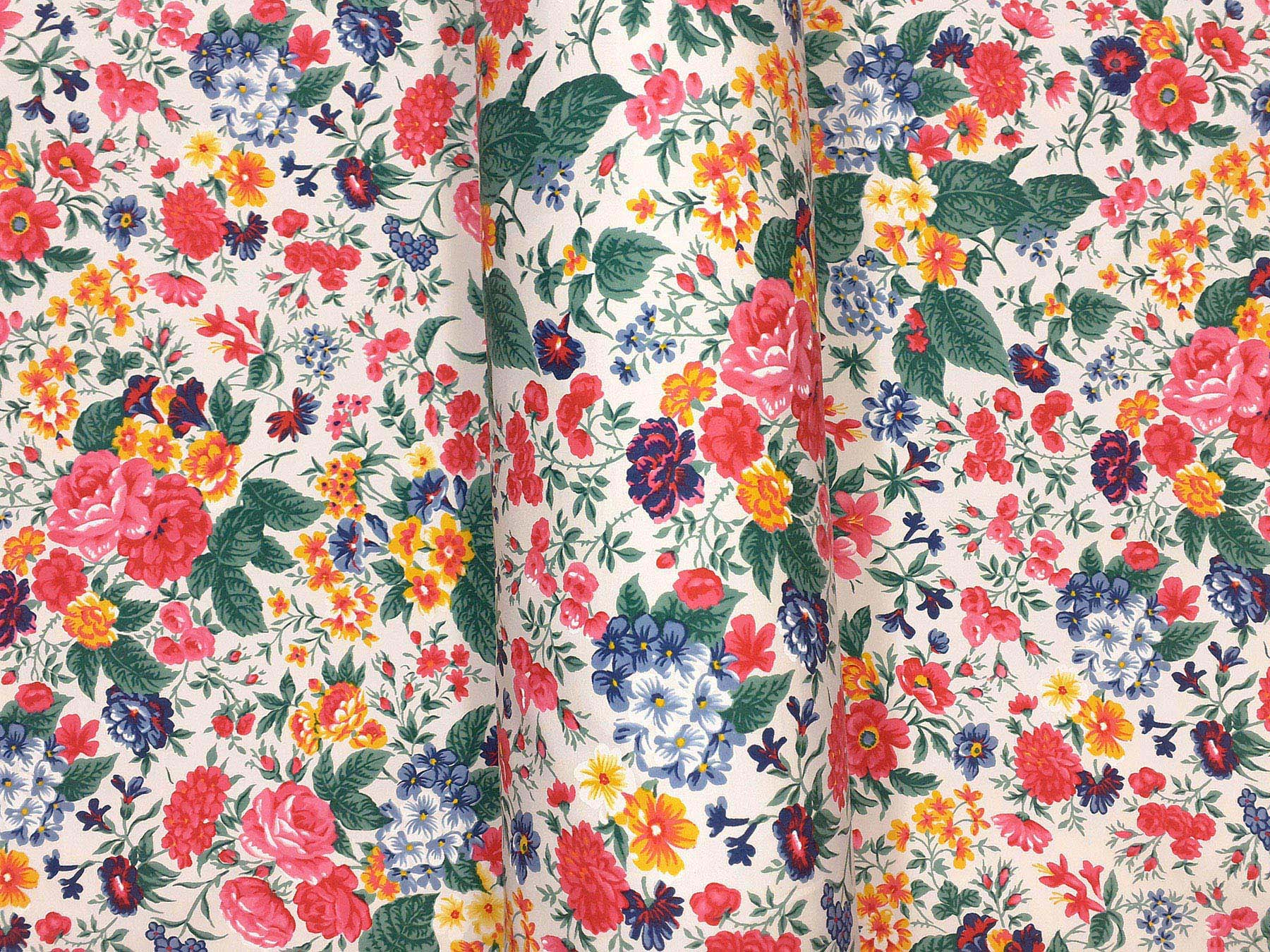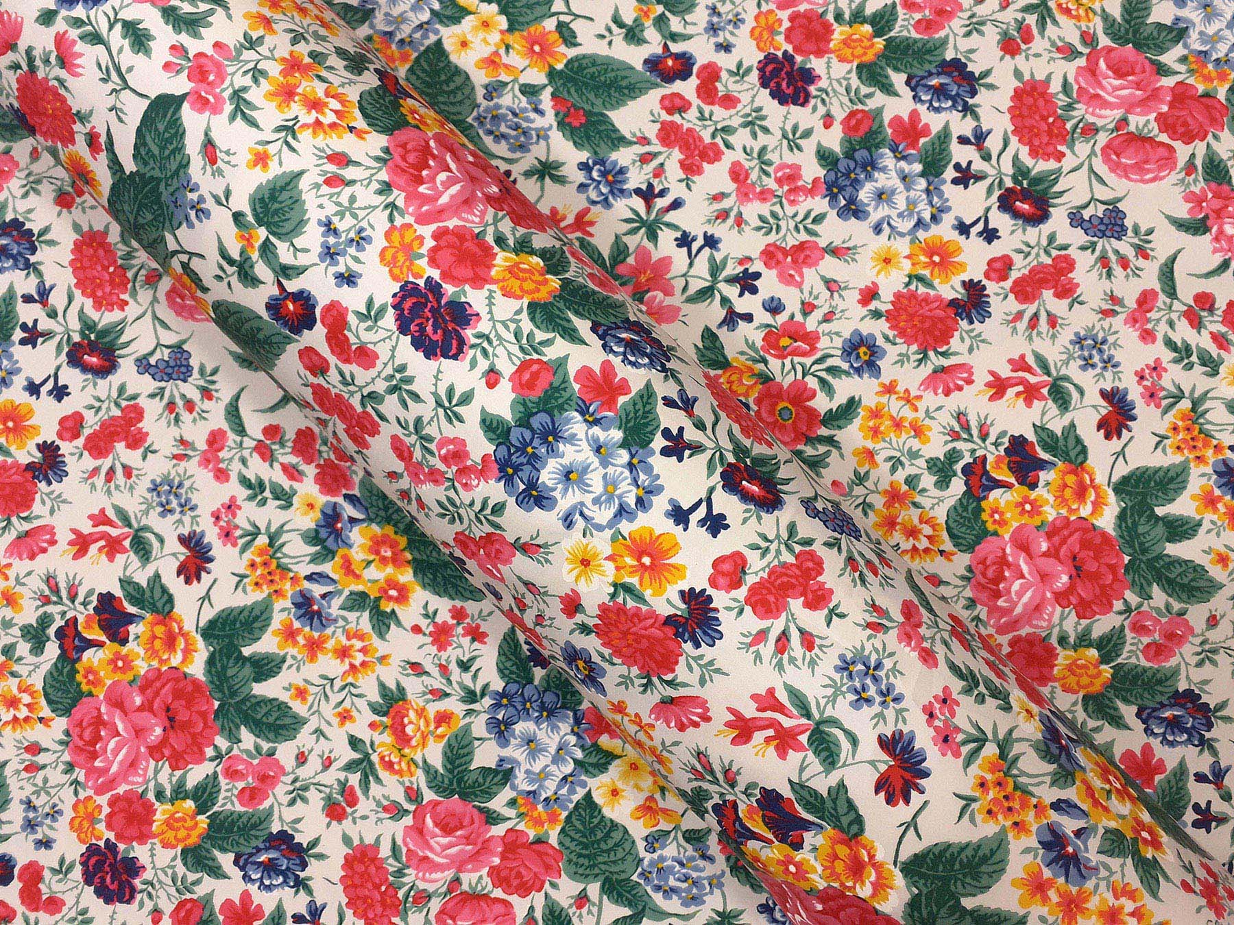 Popeline in cotone satinato fantasia floreale fondo bianco