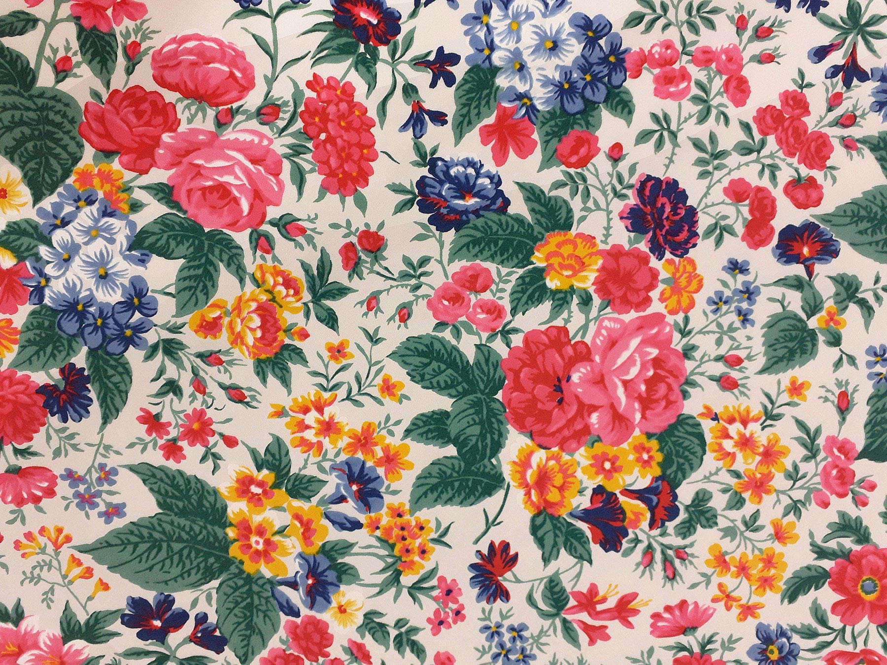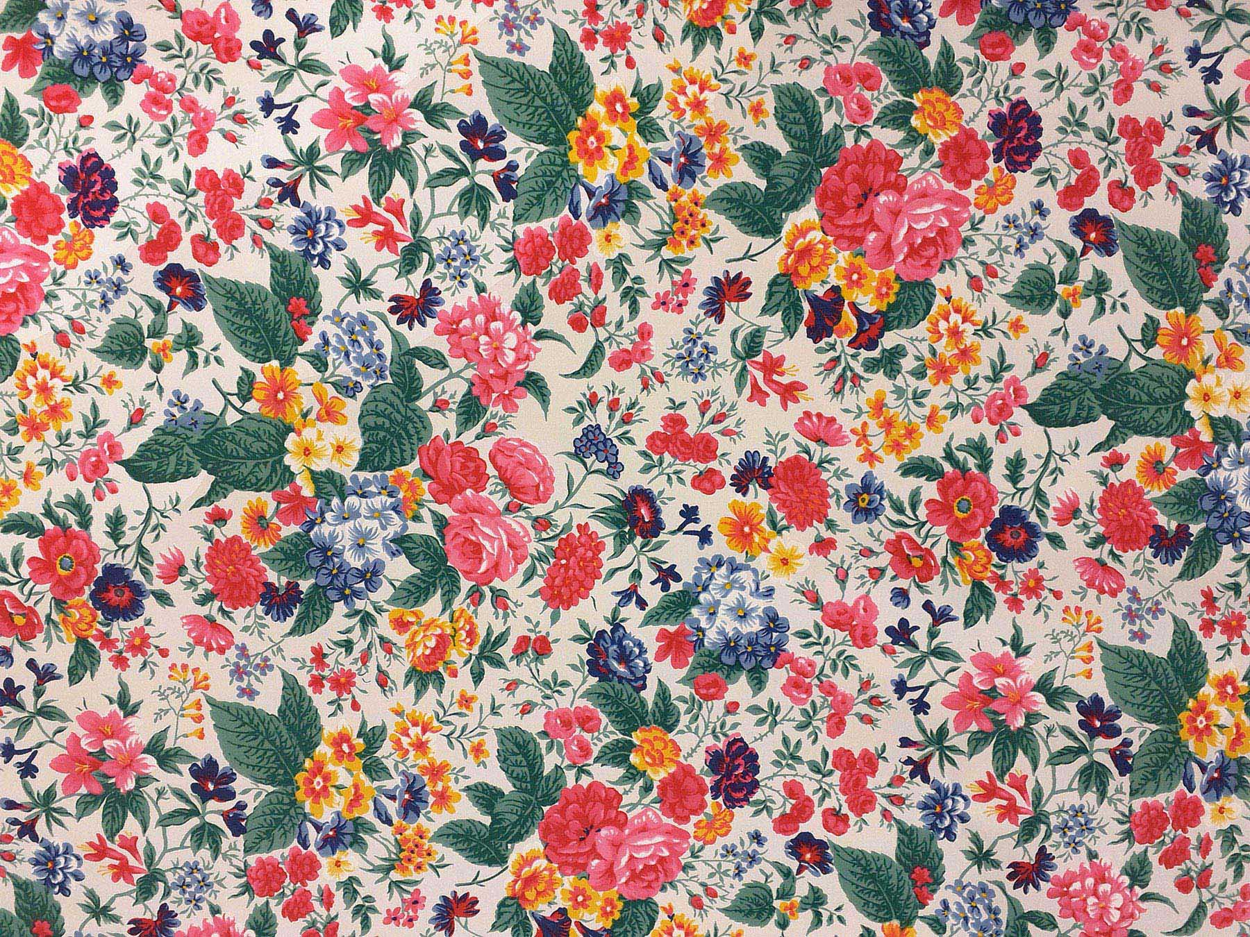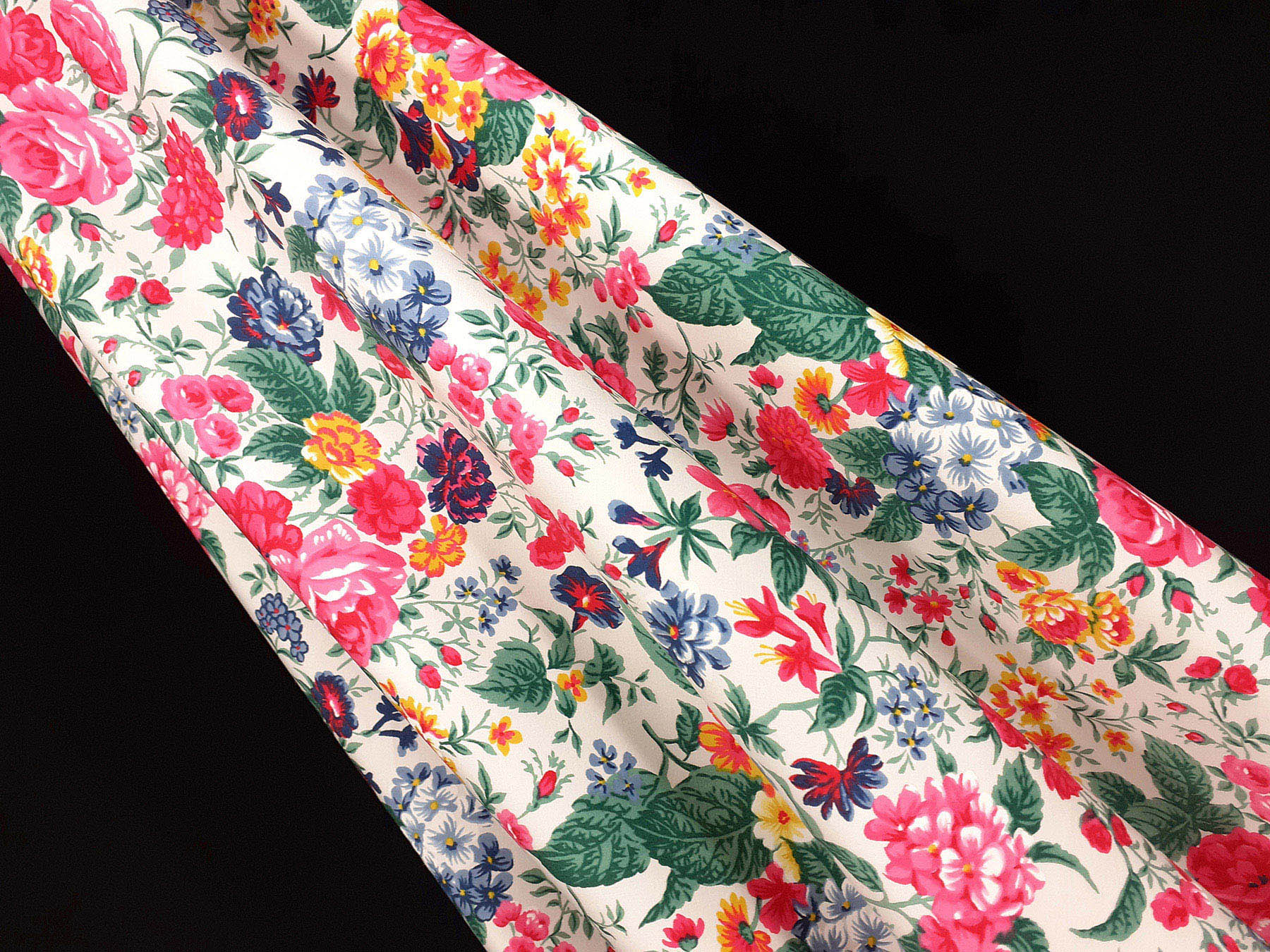 Popeline in cotone satinato fantasia floreale fondo bianco
