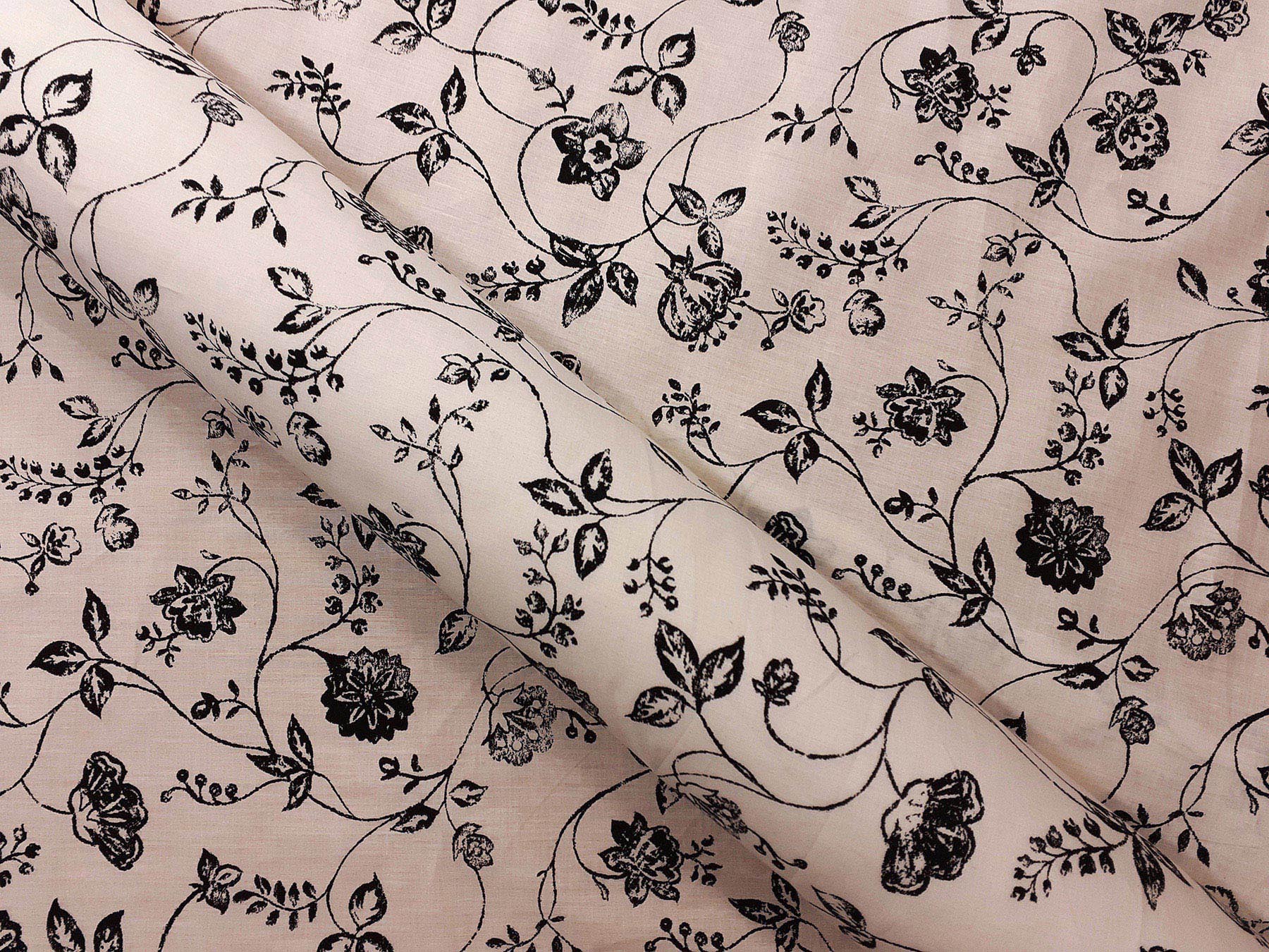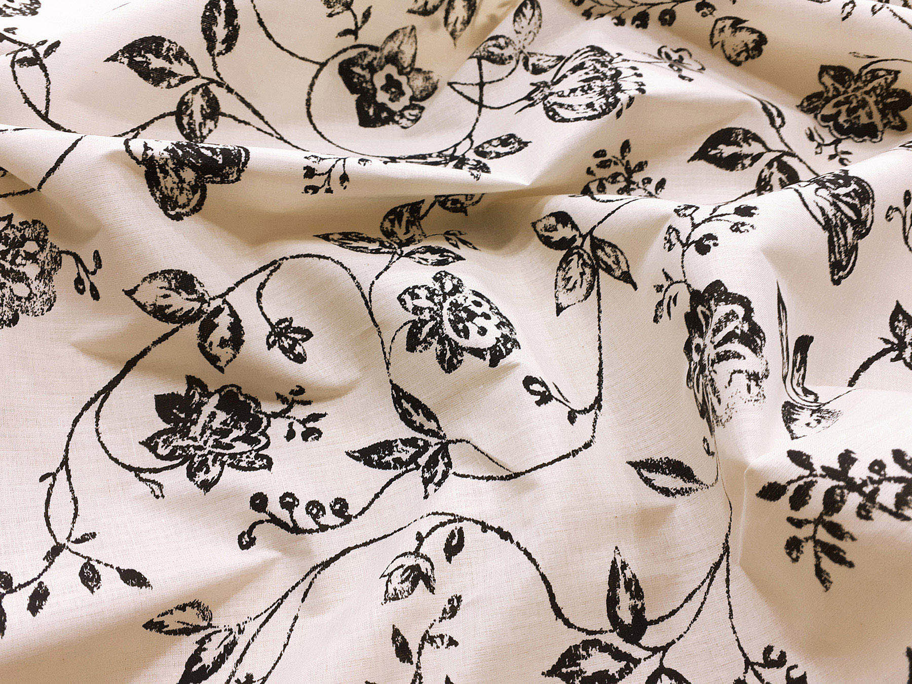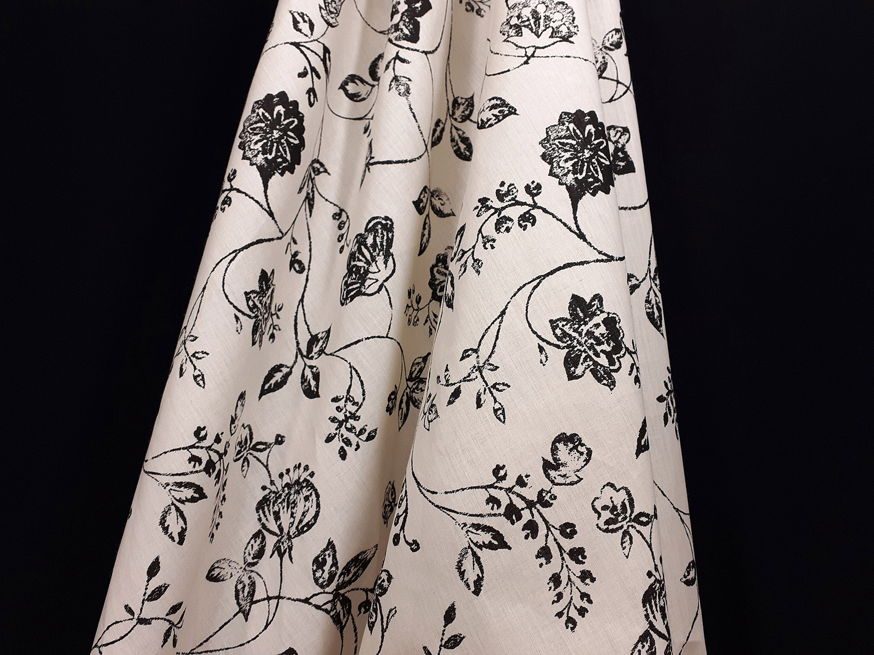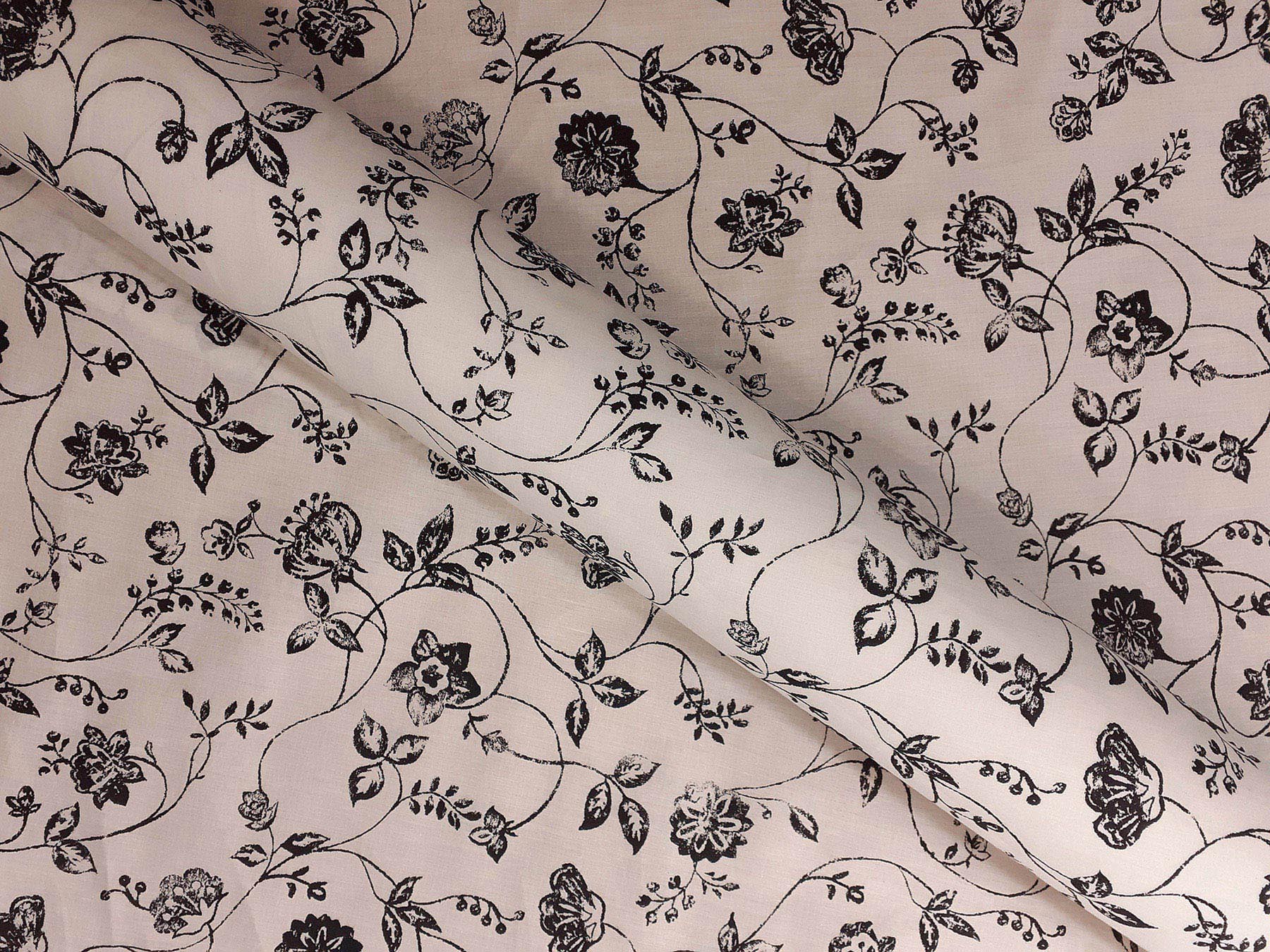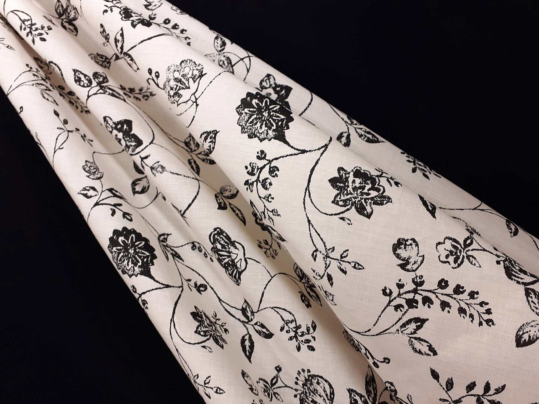 Tela in cotone fantasia floreale in bianco e nero