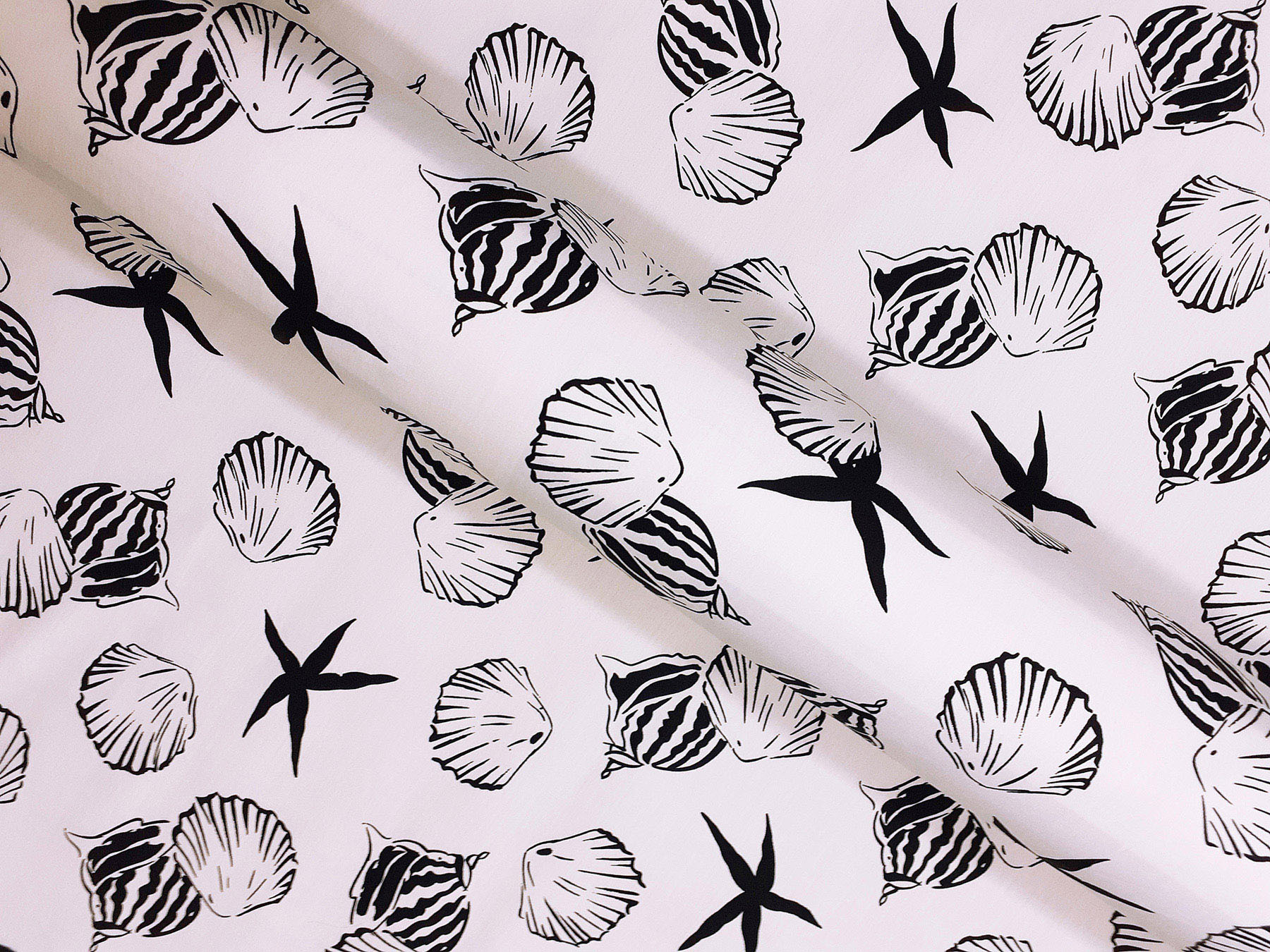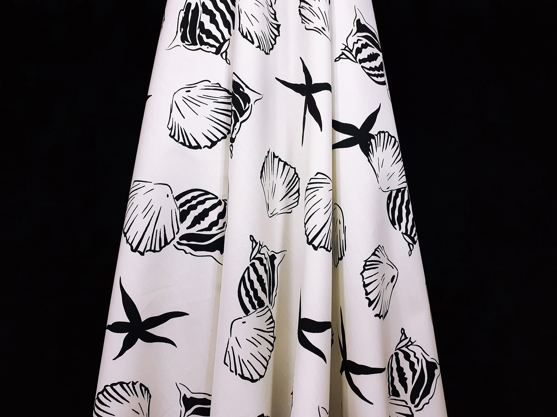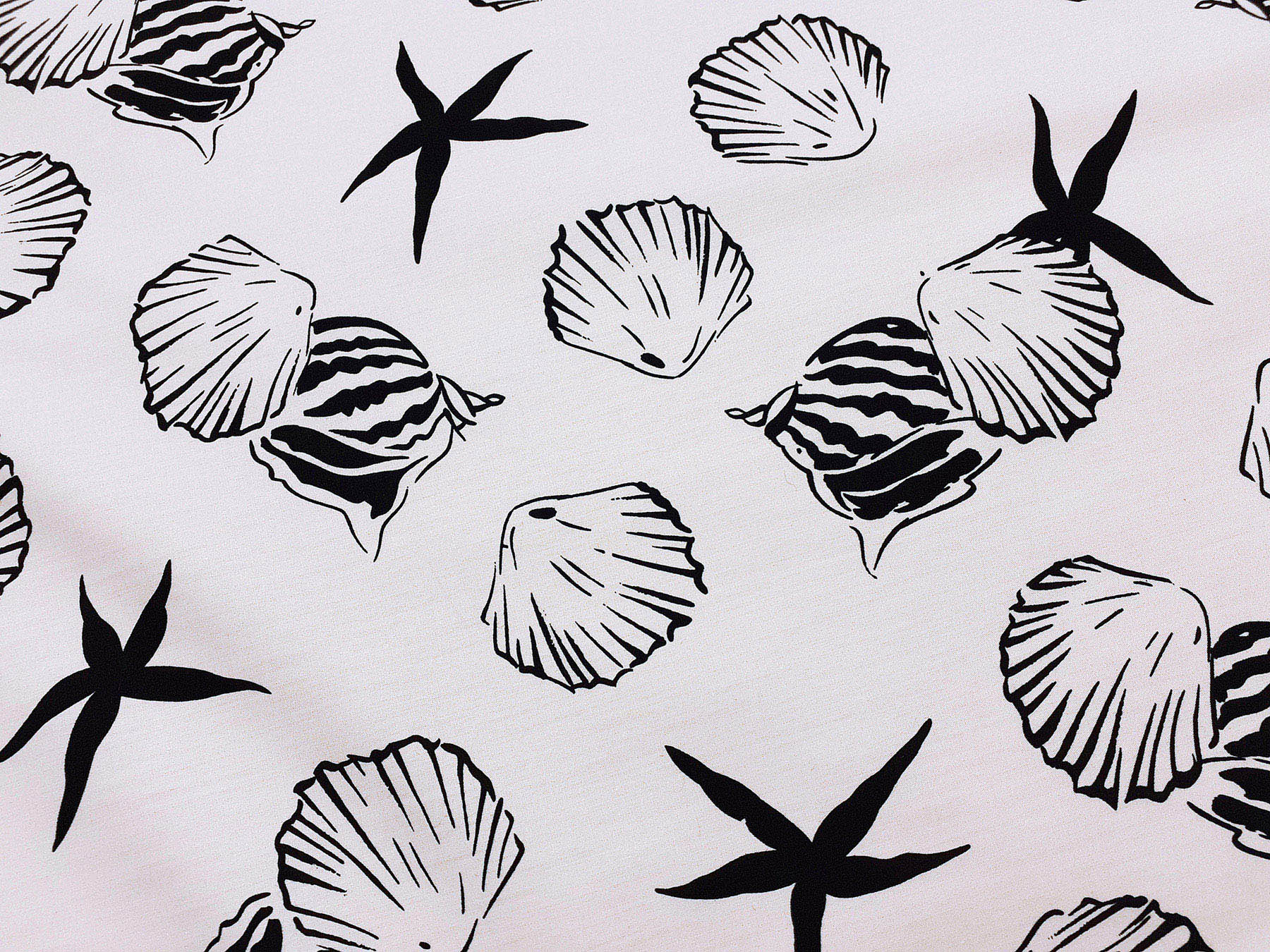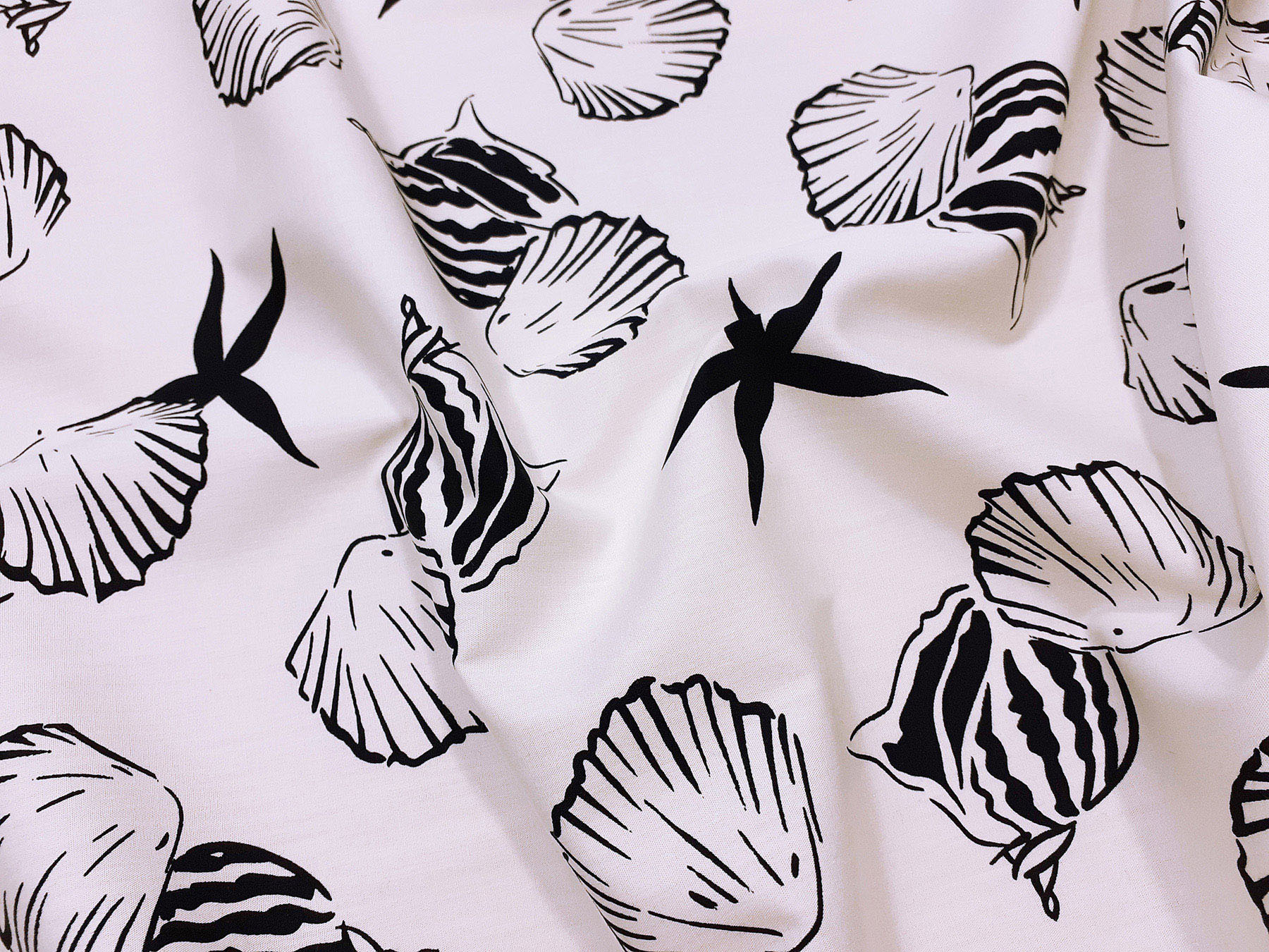Popeline in cotone satinato fantasia astratta in bianco e nero