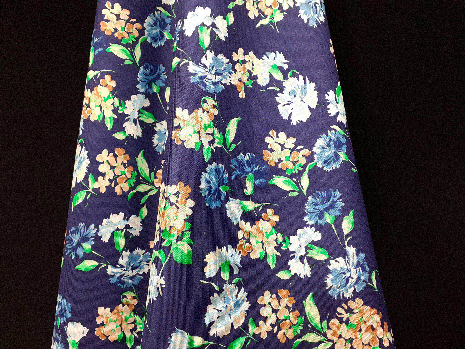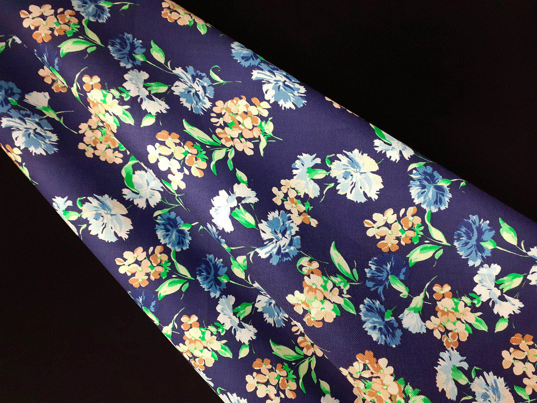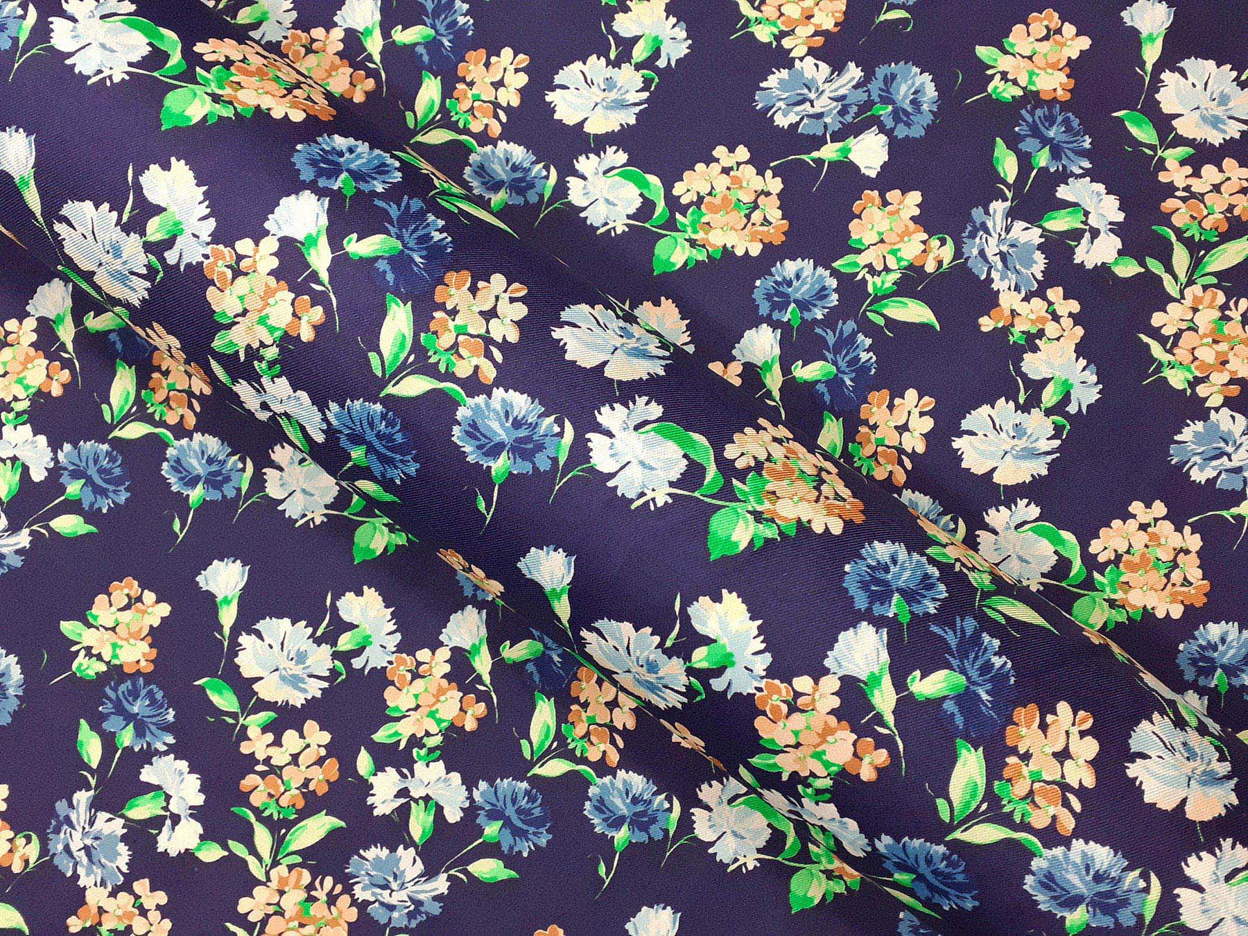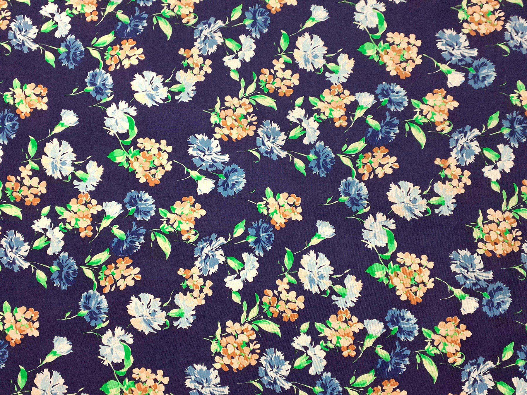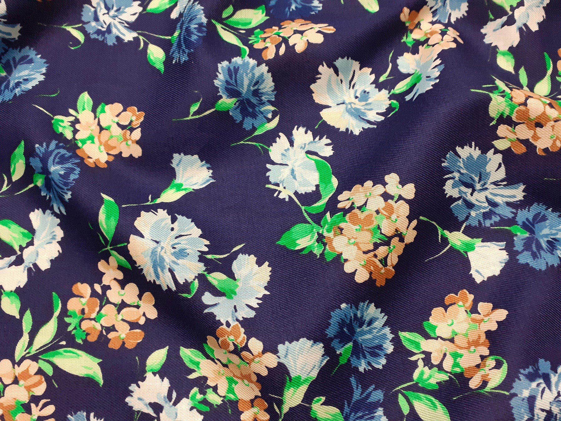 Twill in cotone e viscosa fantasia floreale fondo blu