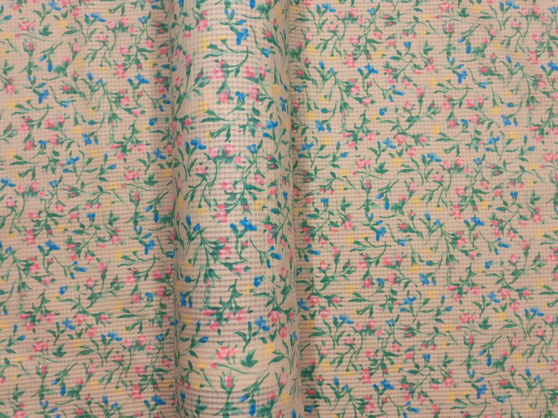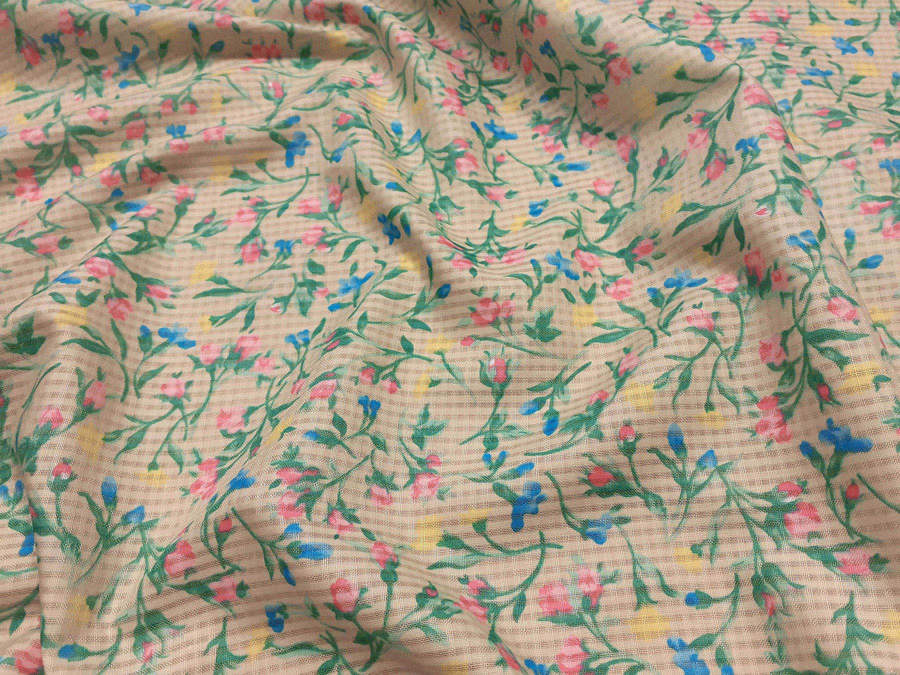 Volie in cotone con quadretti in rilievo fantasia floreale fondo beige