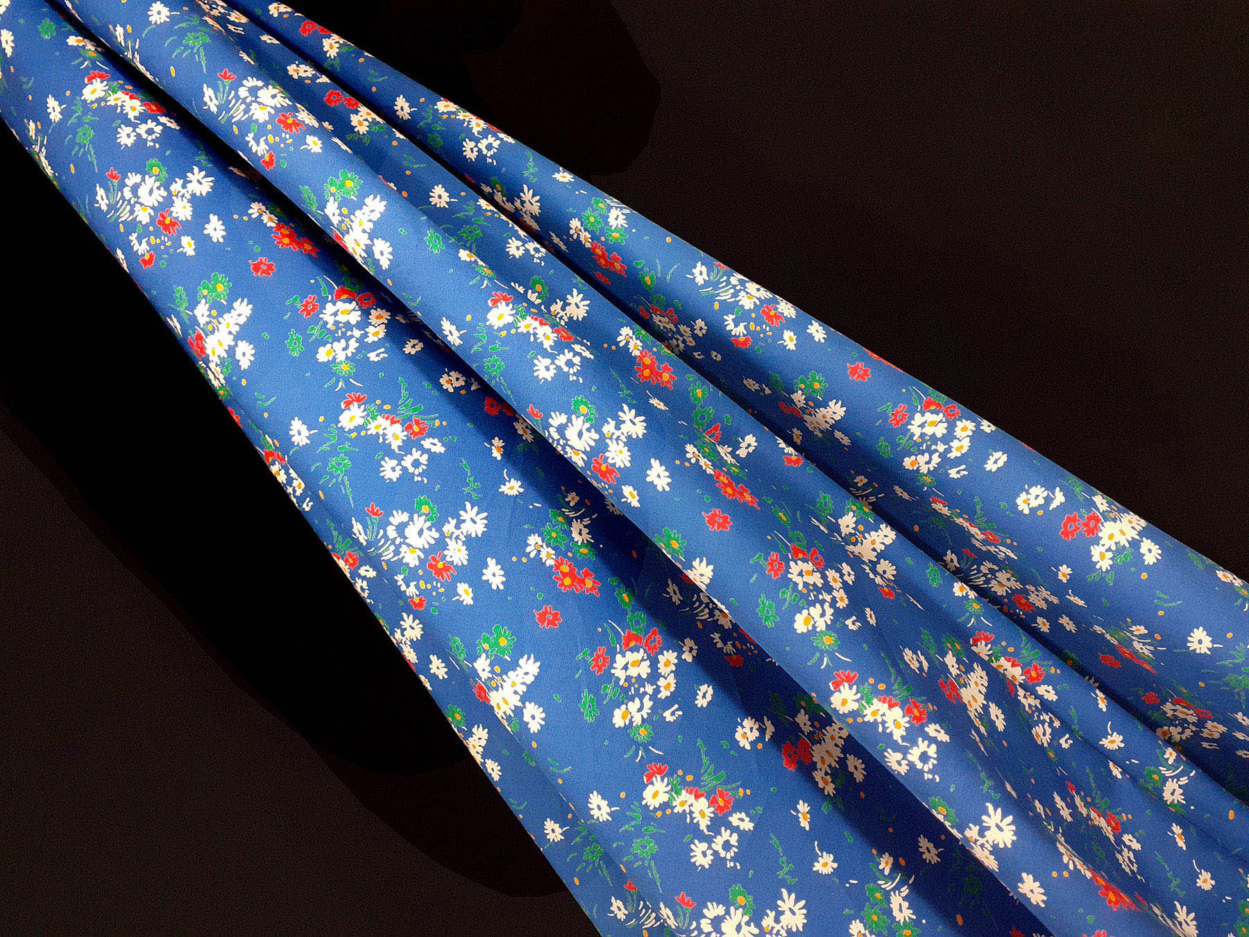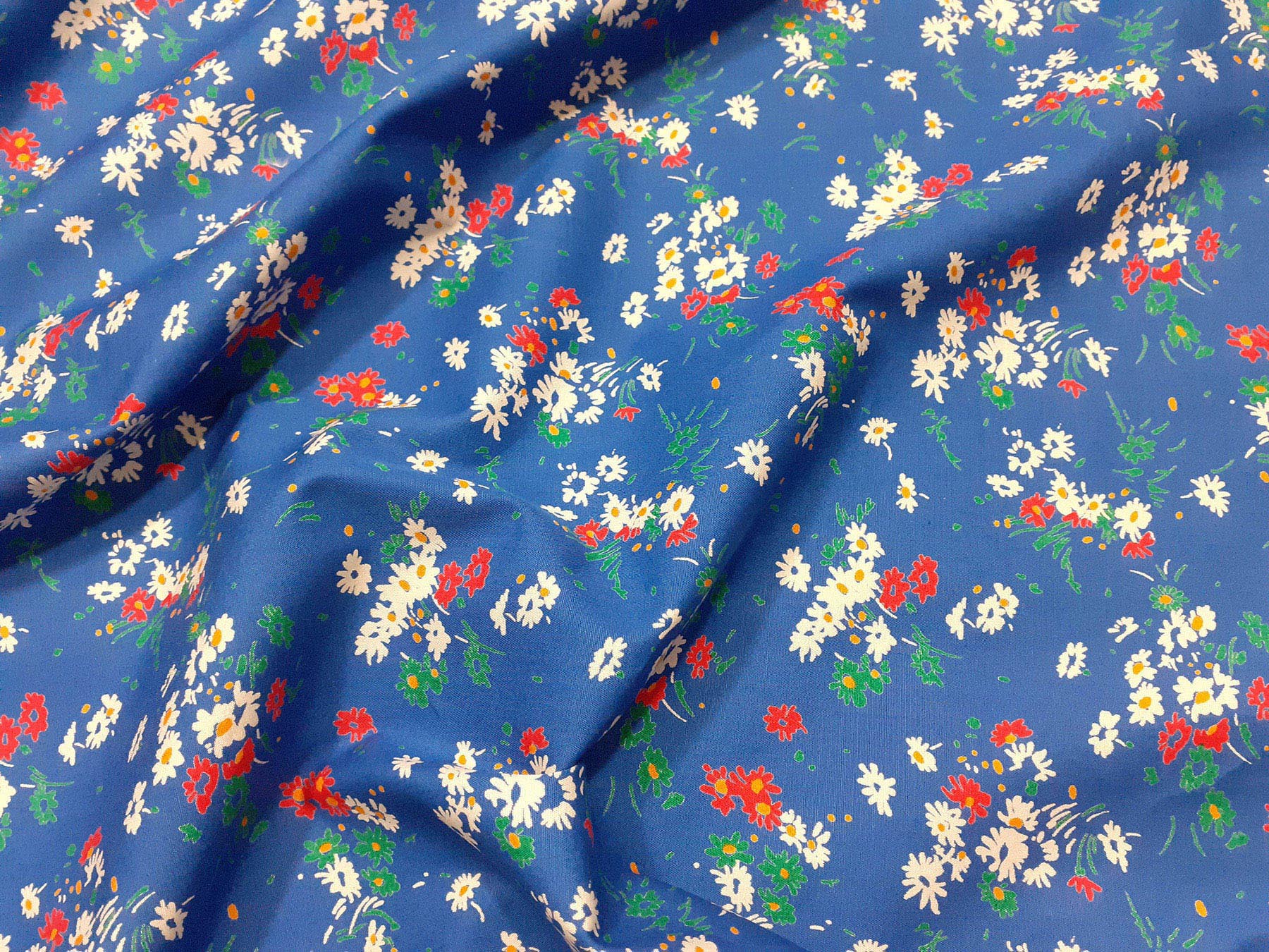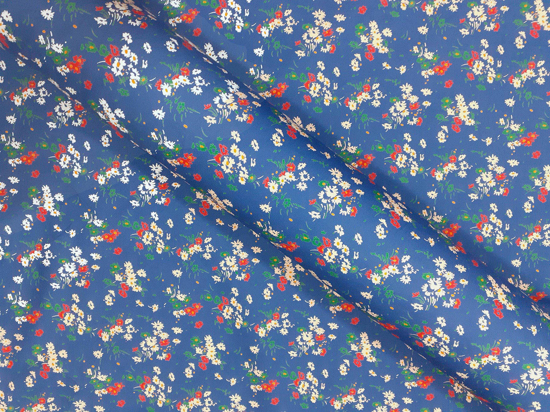 Popeline in cotone satinato fantasia floreale fondo celeste