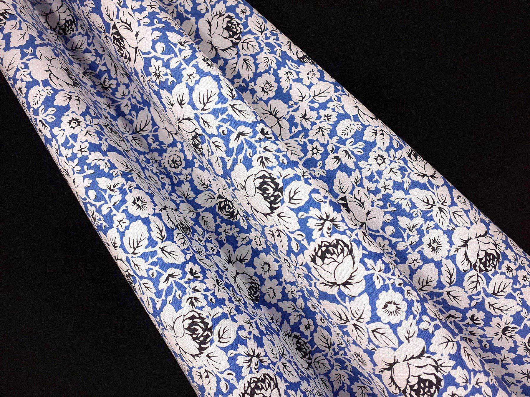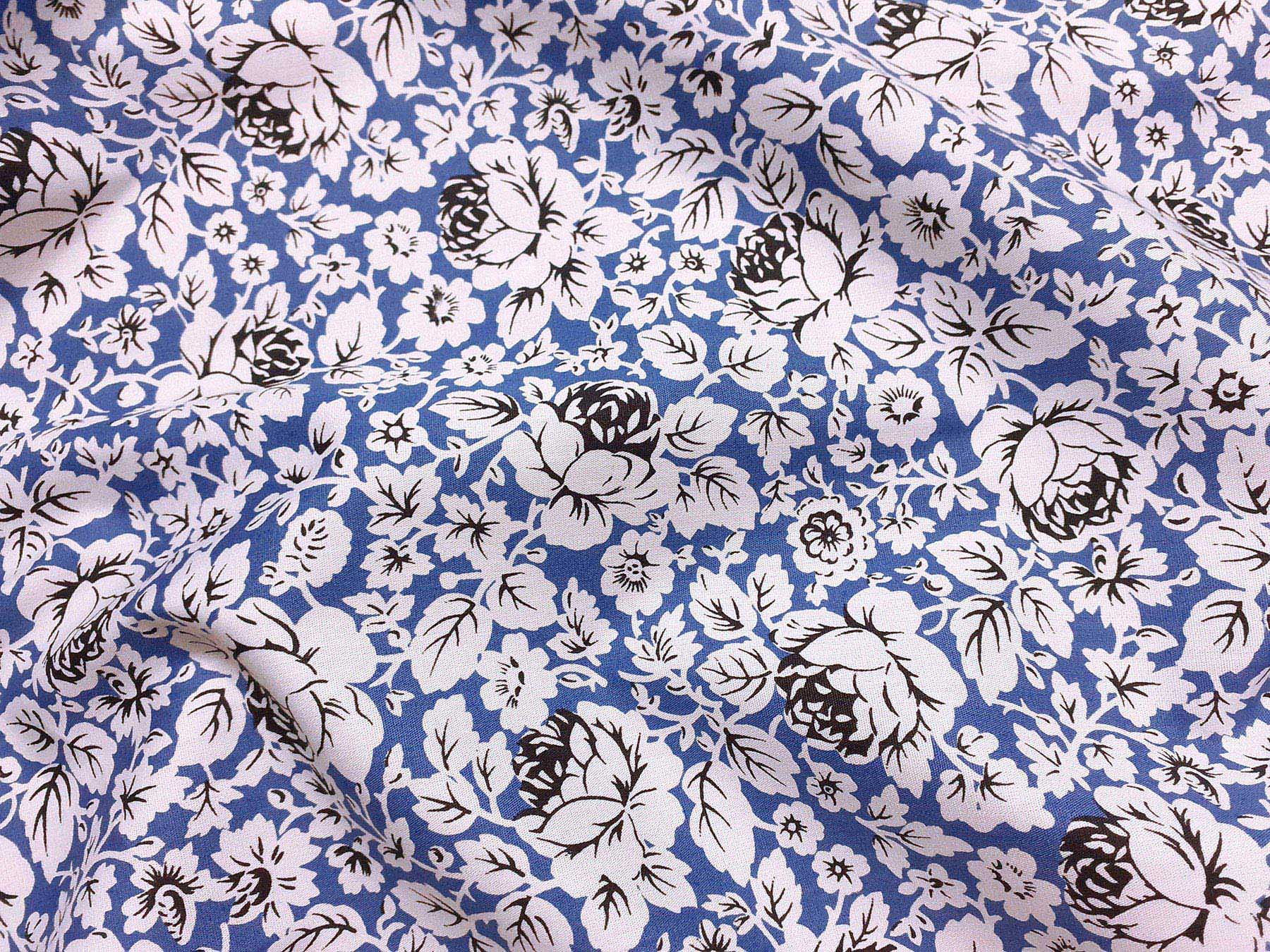 Popeline in cotone satinato fantasia floreale fondo bianco