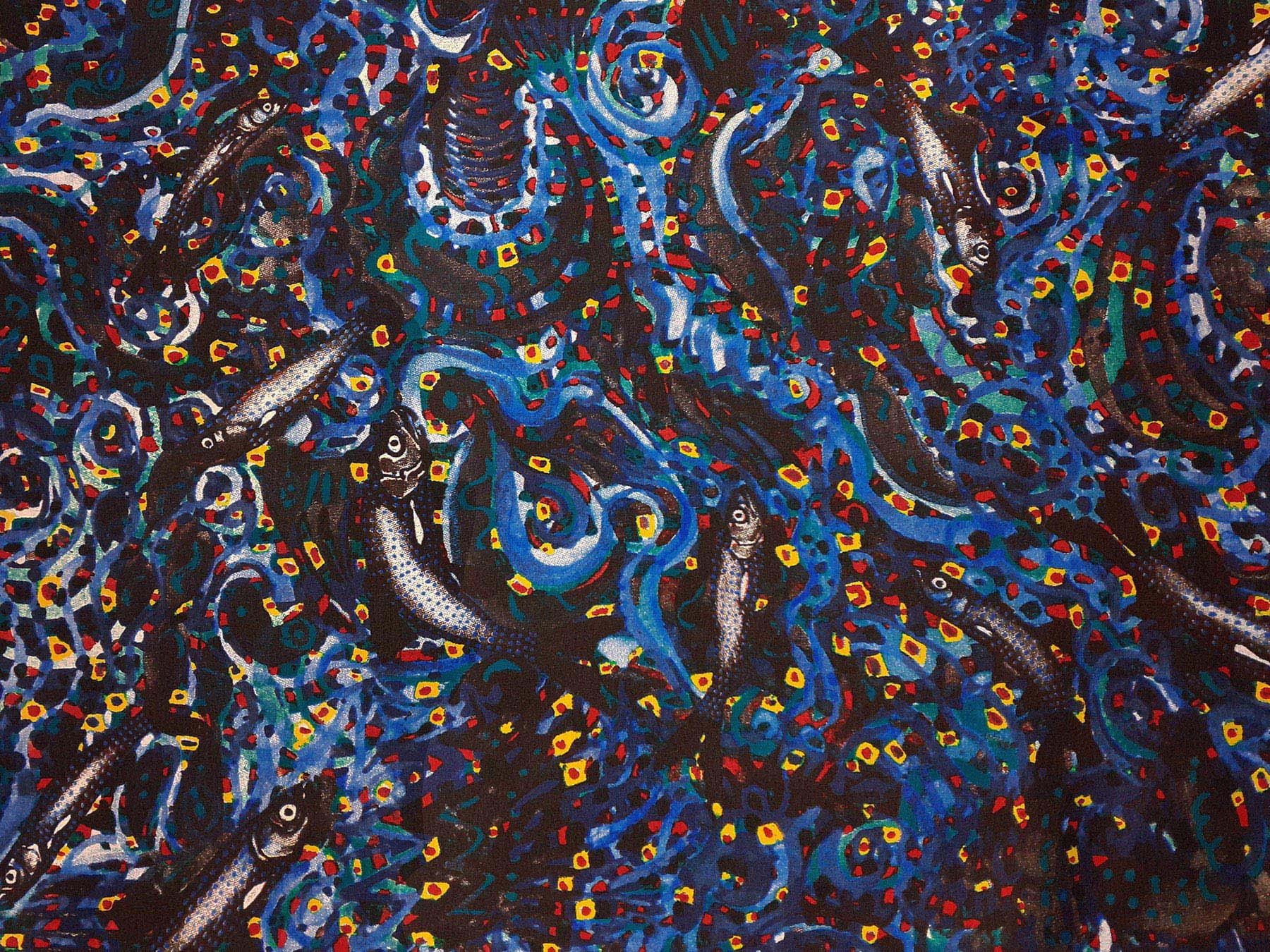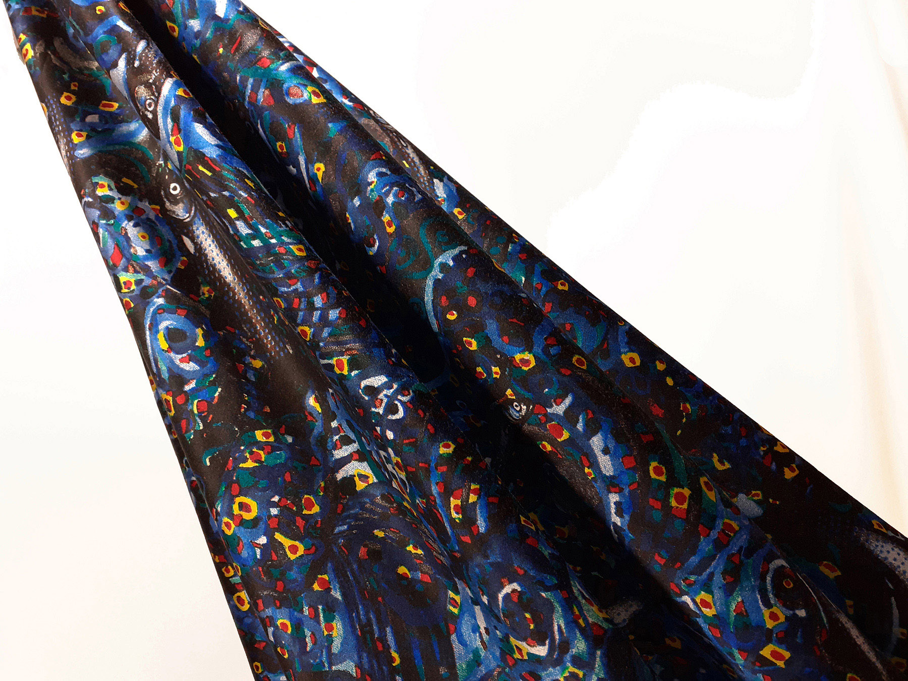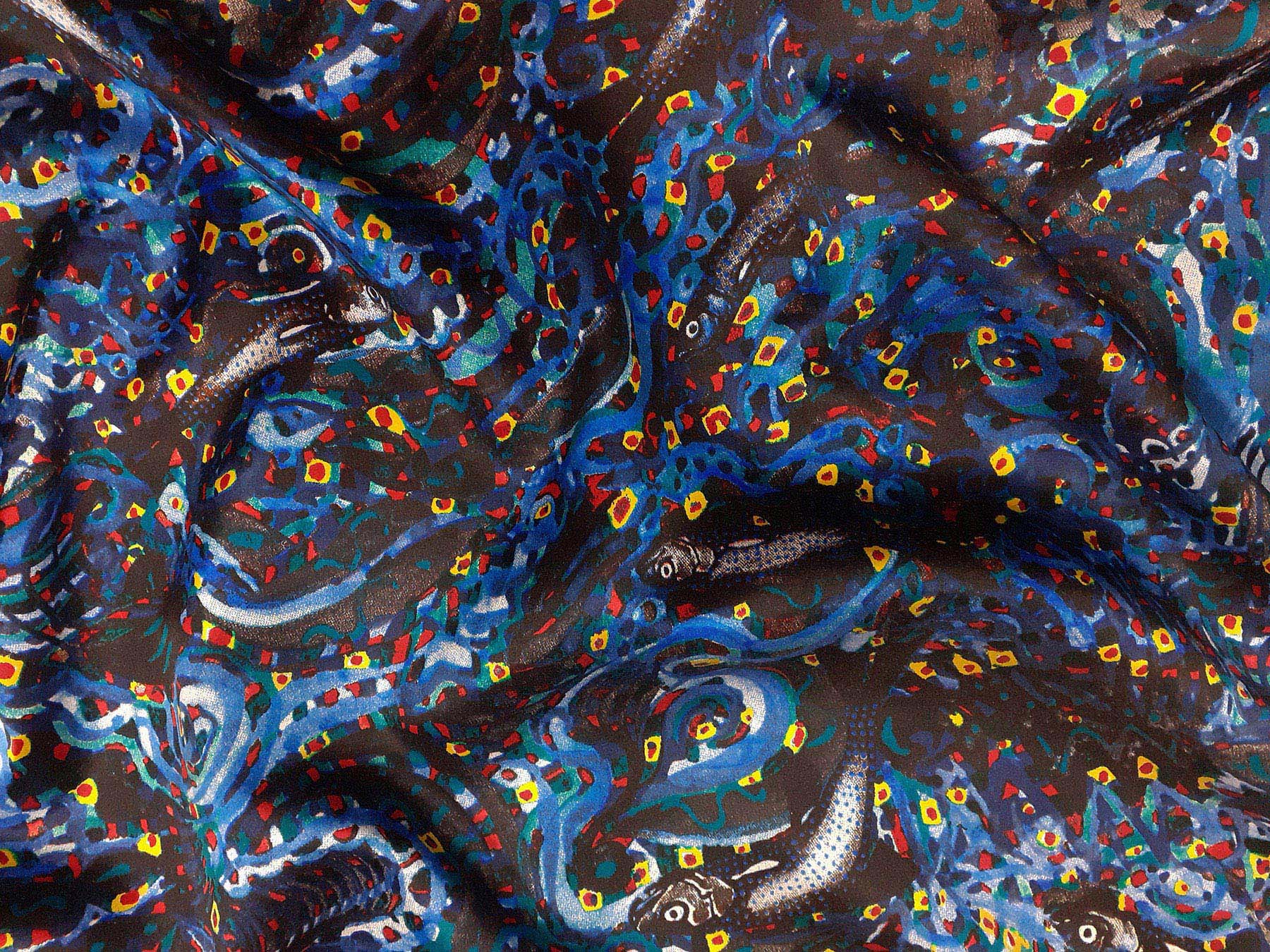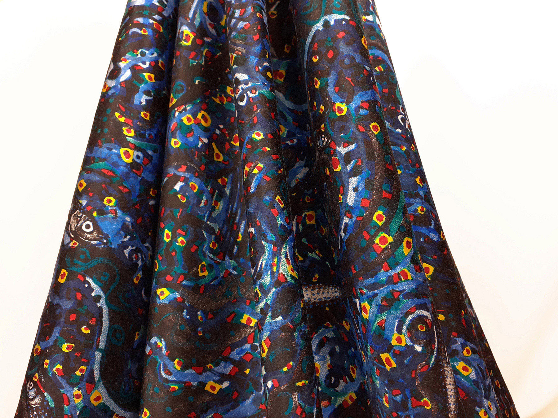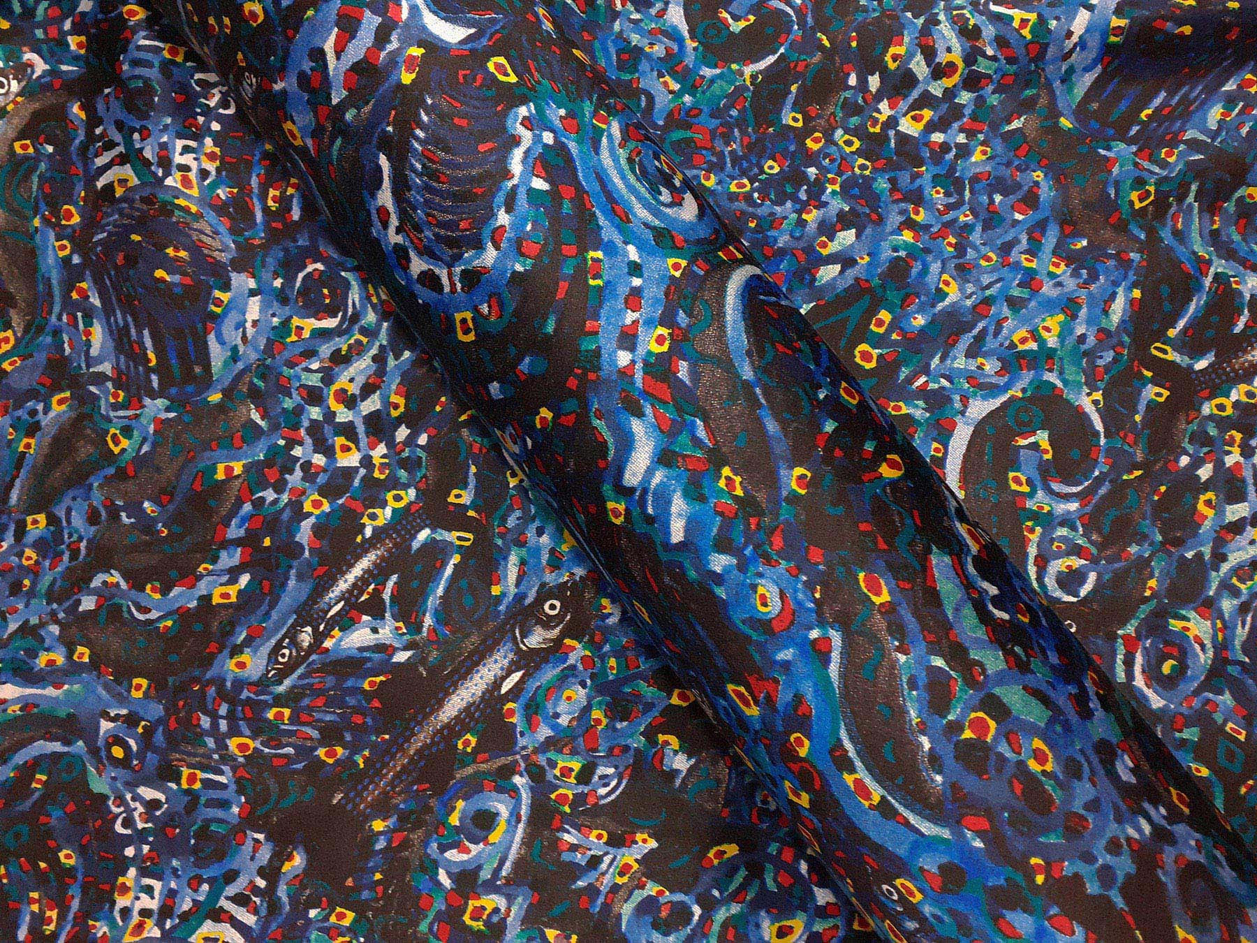 Raso in cotone e seta fantasia “marina” fondo nero