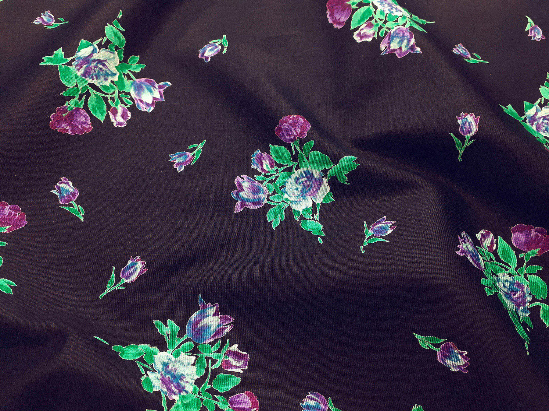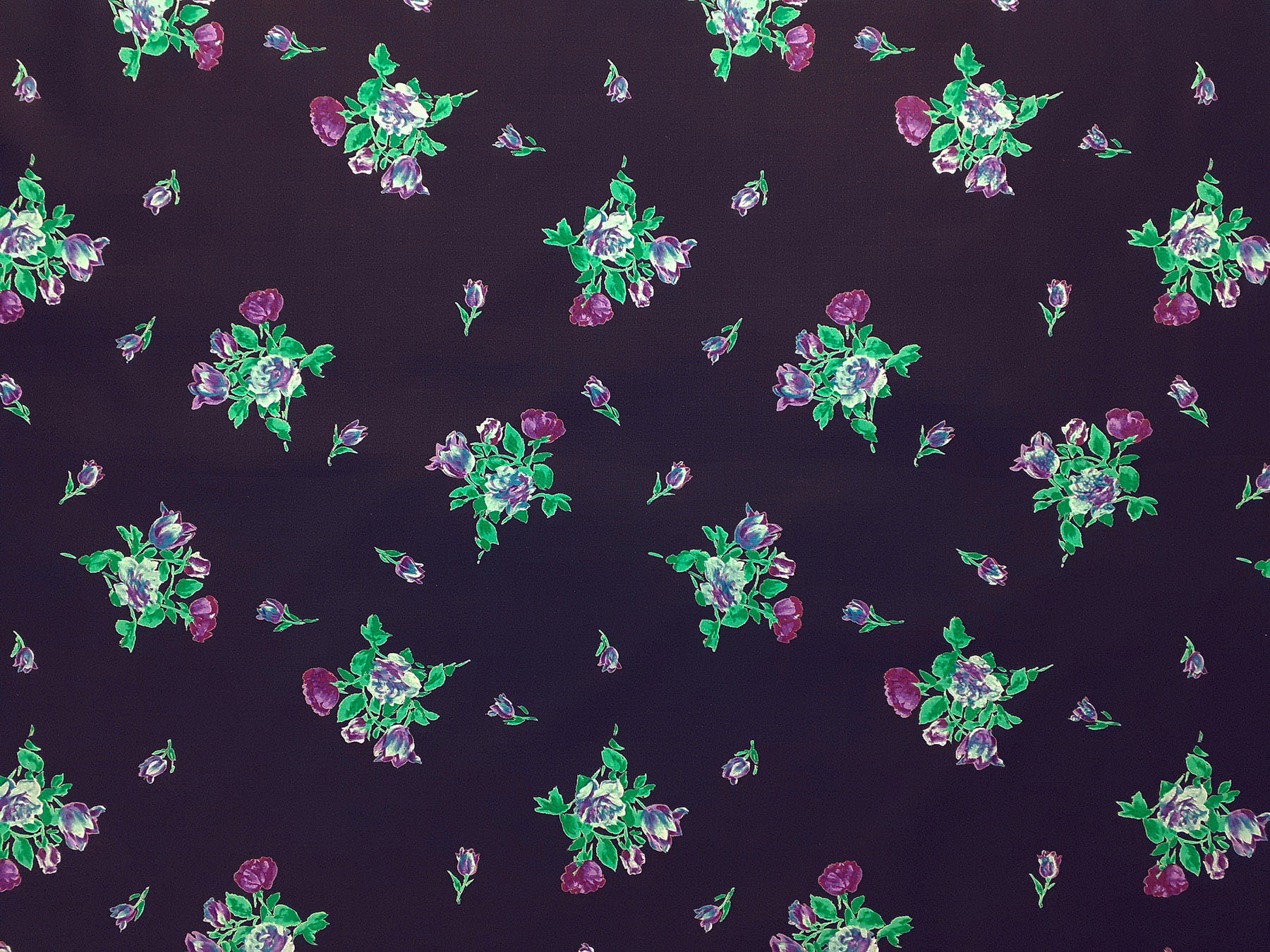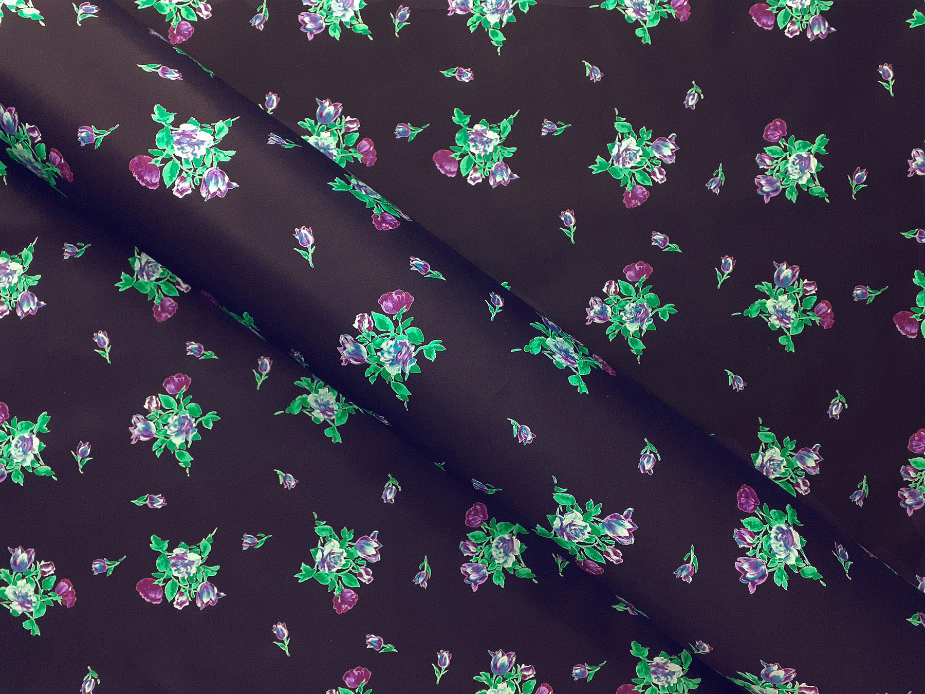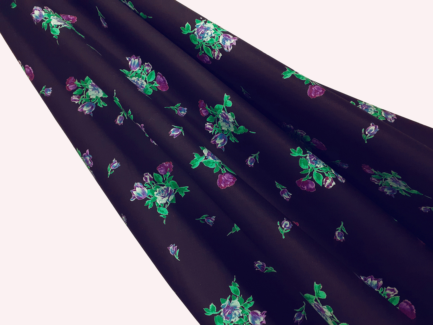 Popeline satinato in cotone fantasia floreale su fondo blu oltremare