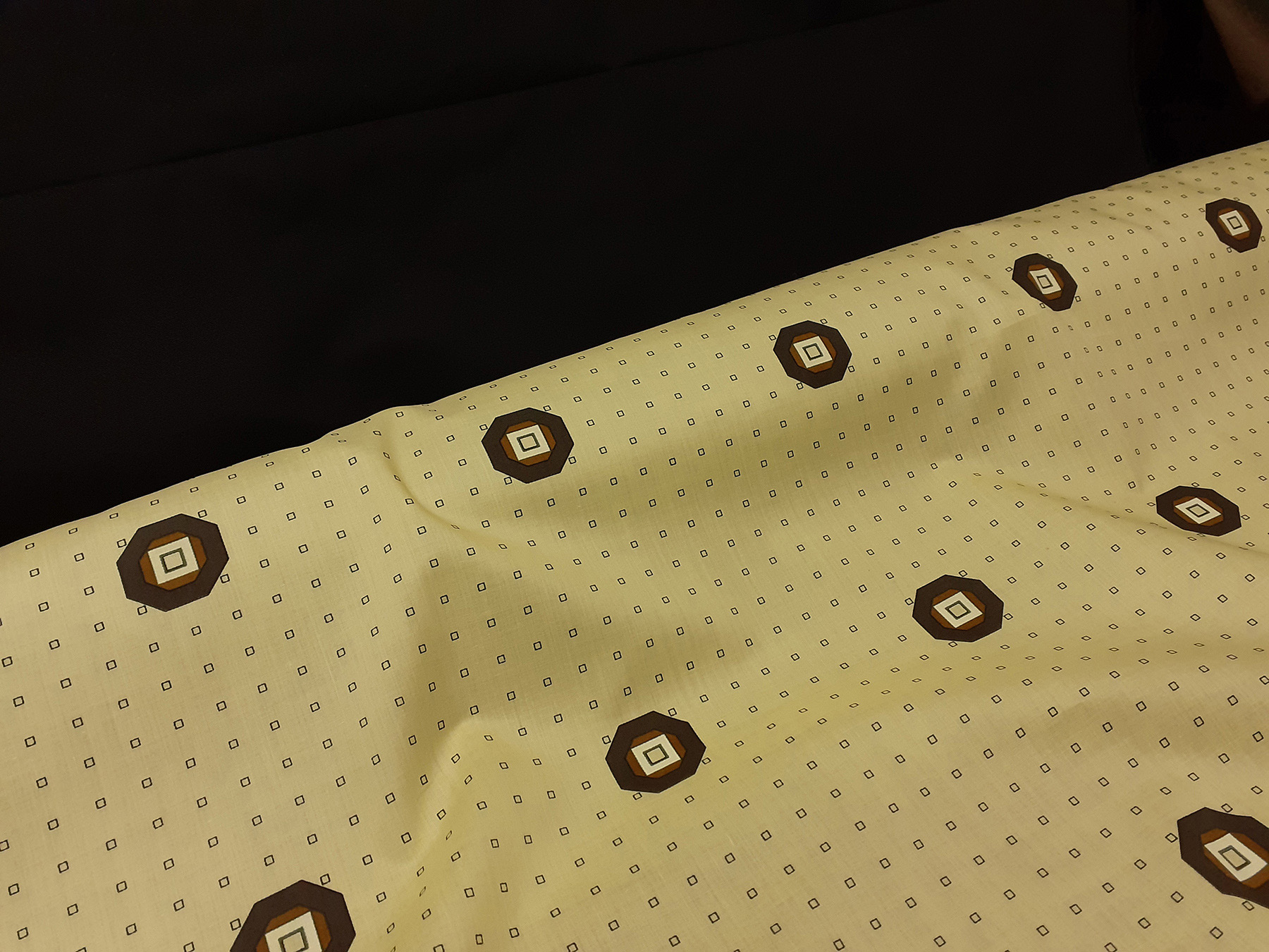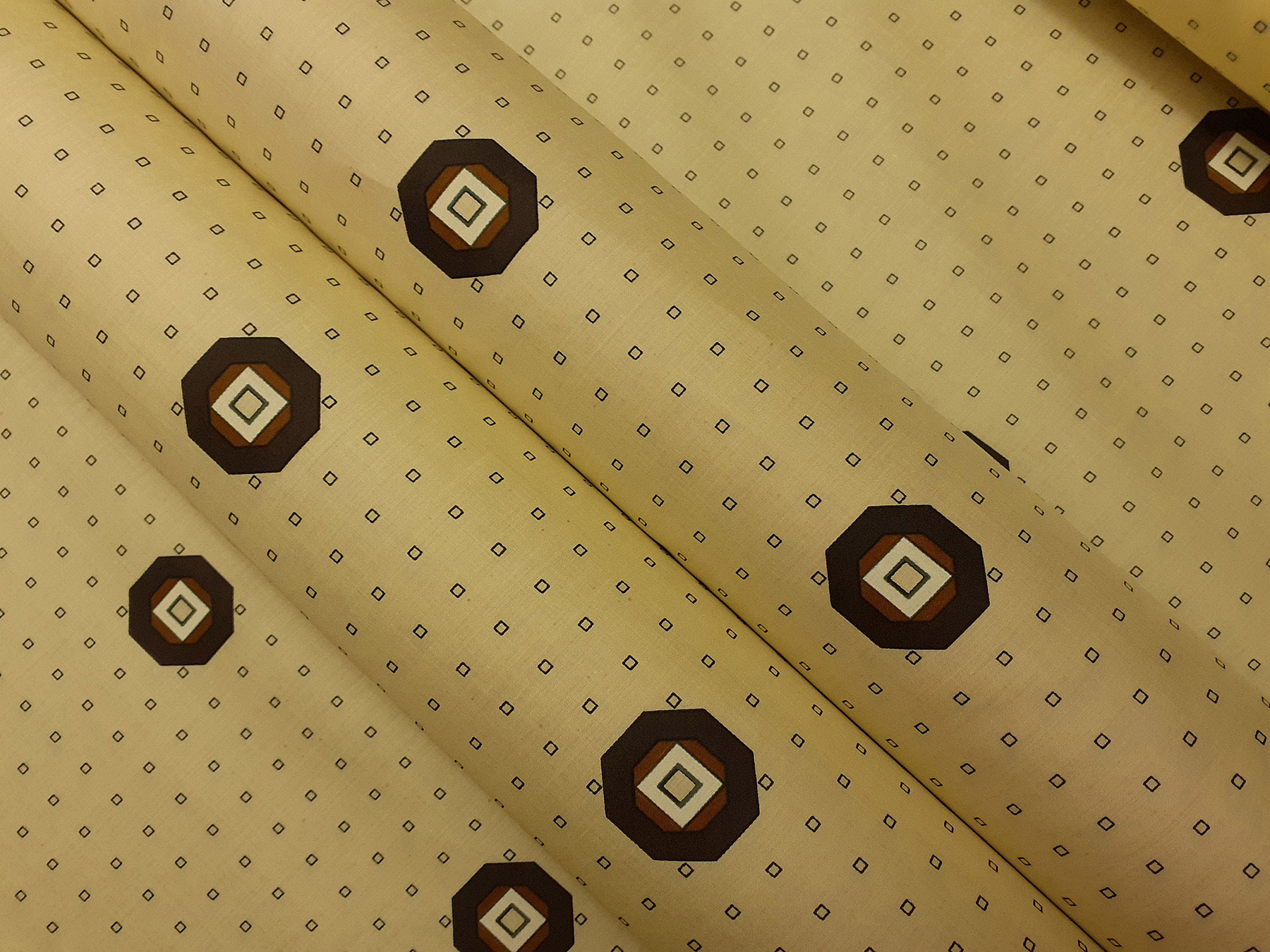 Tessuto per abiti, gonne morbide e camicie di peso medioleggero in puro cotone mercerizzato. Ha mano morbida e aspetto lucente che si ottiene con la classica armatura a tela dove ogni filo di ordito si intreccia con ogni filo di trama.