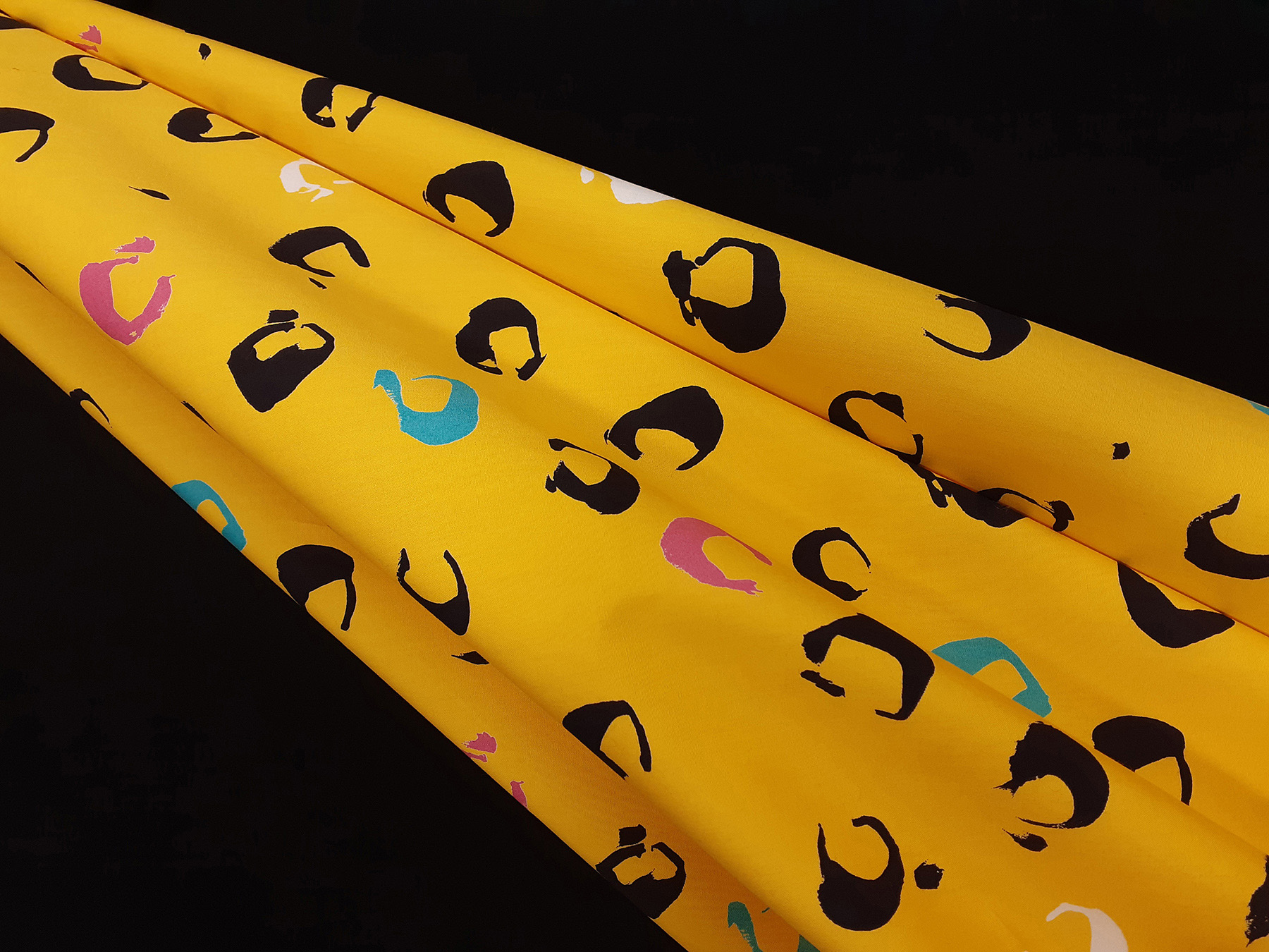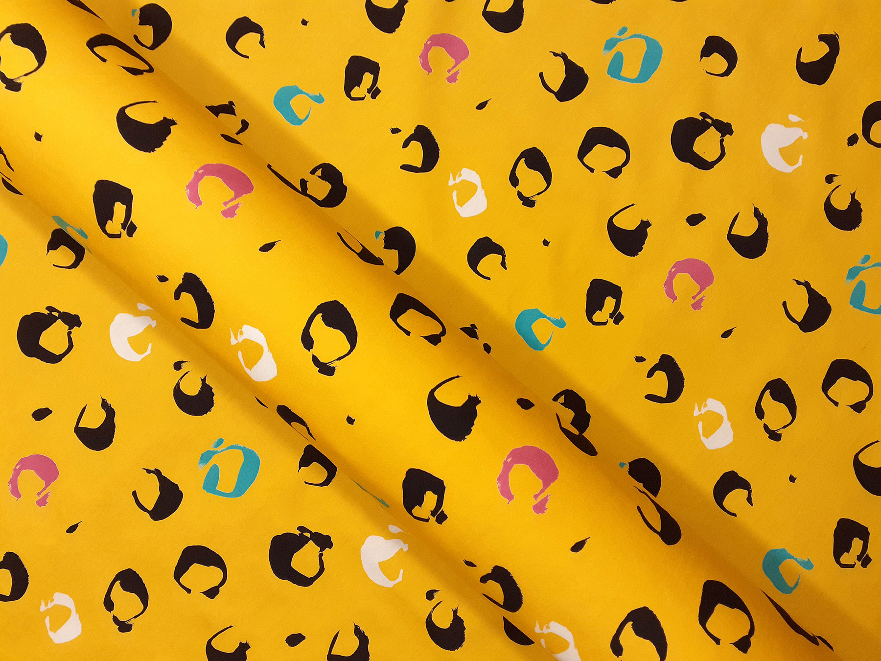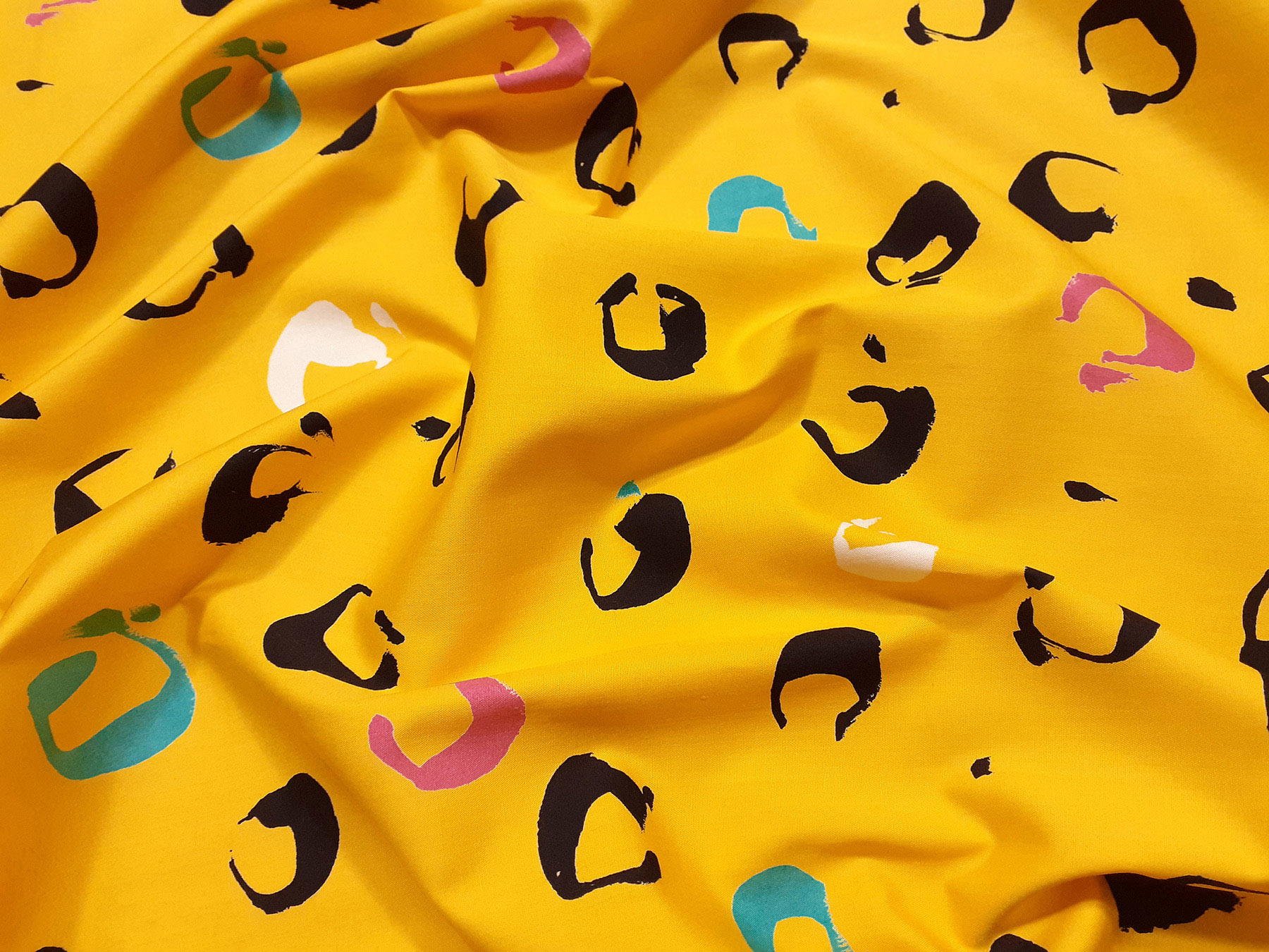 Popeline in cotone satinato fantasia astratta fondo giallo