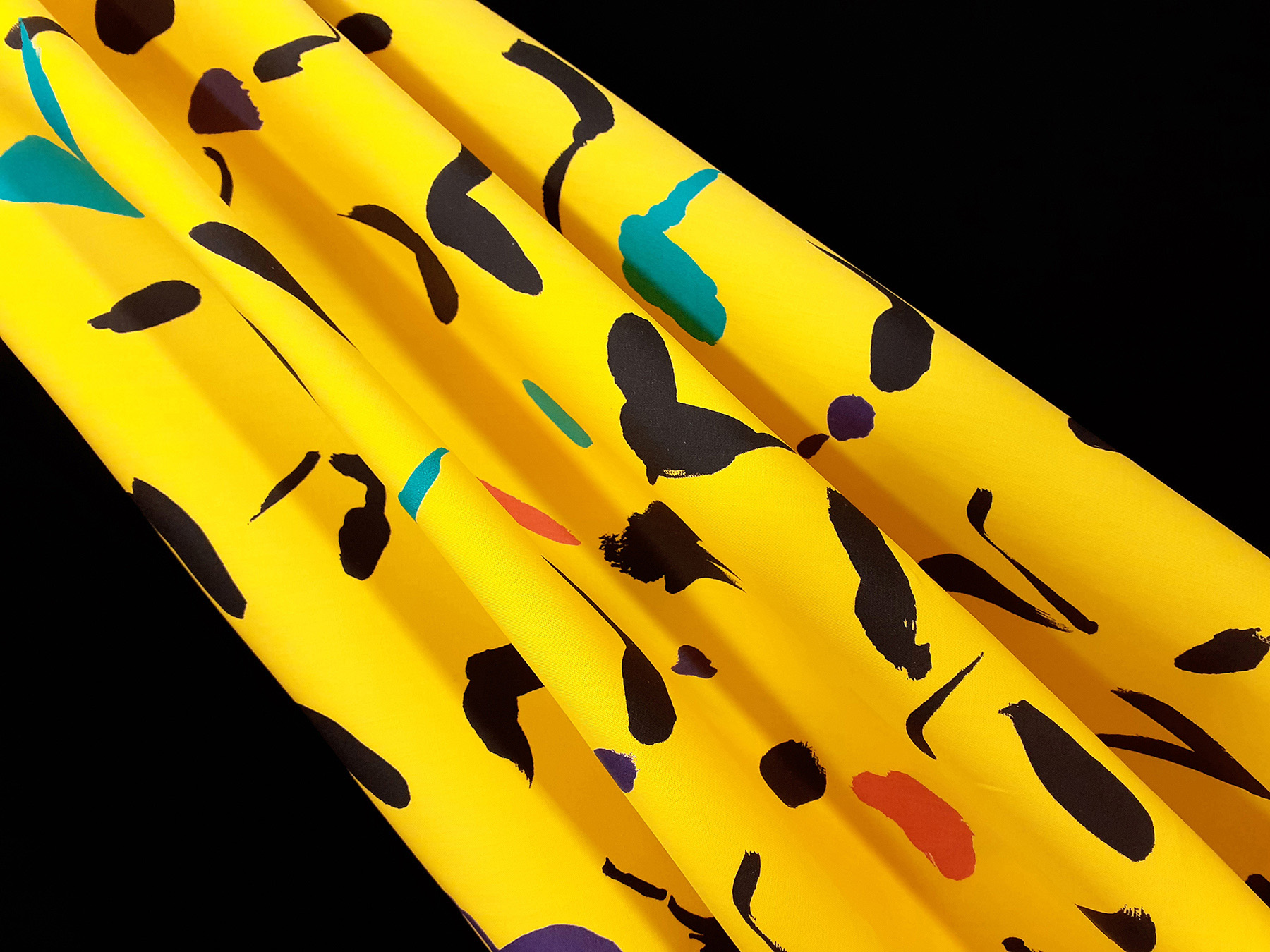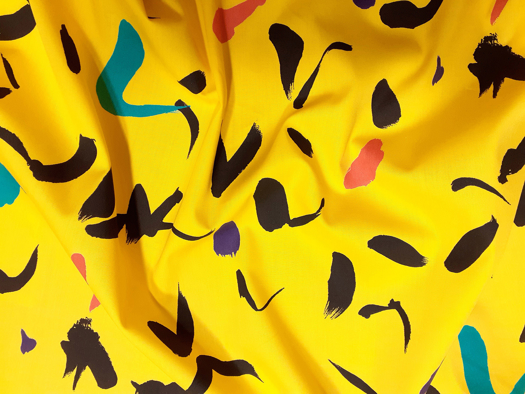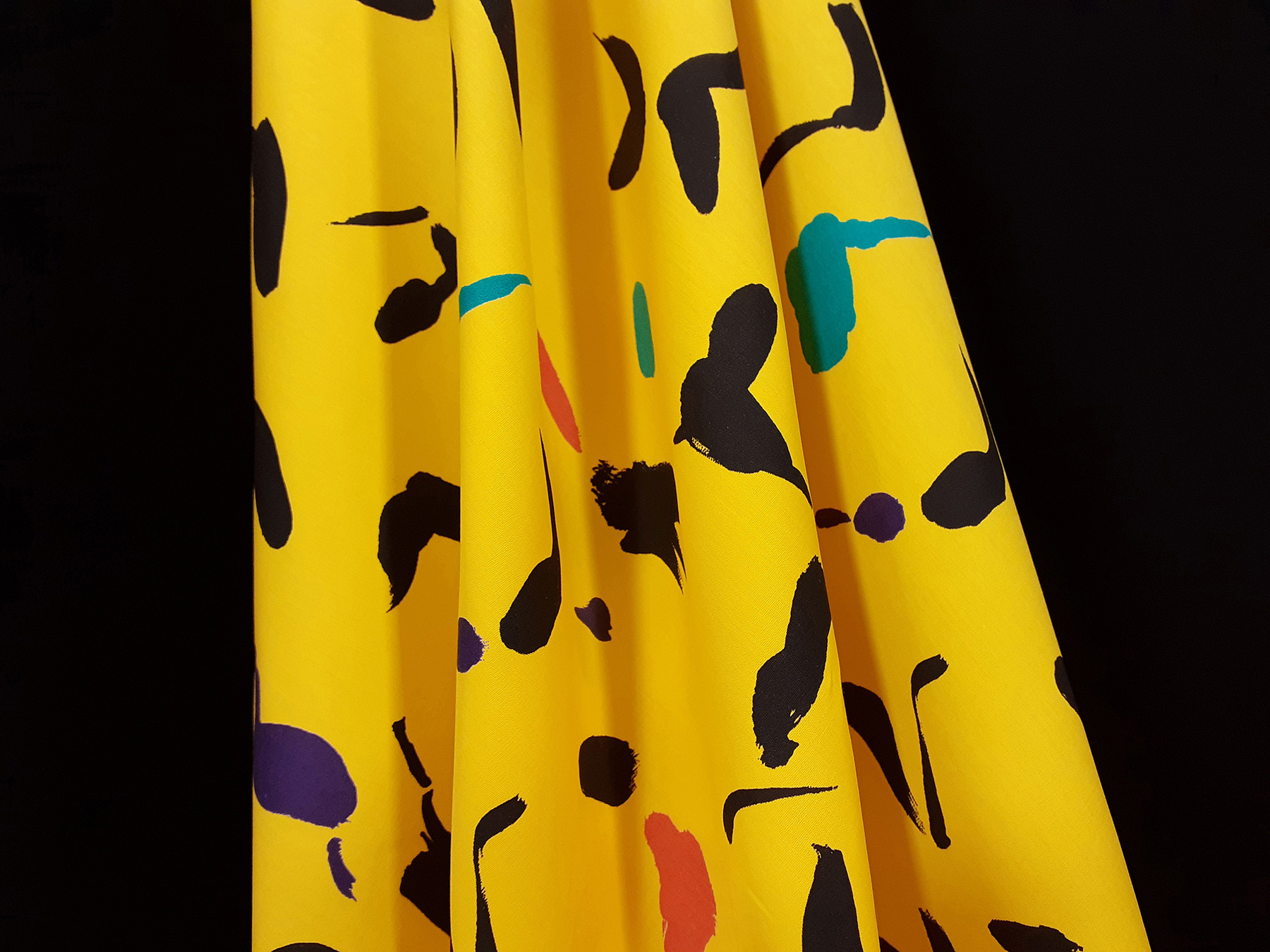 Popeline in cotone satinato fantasia astratta fondo giallo