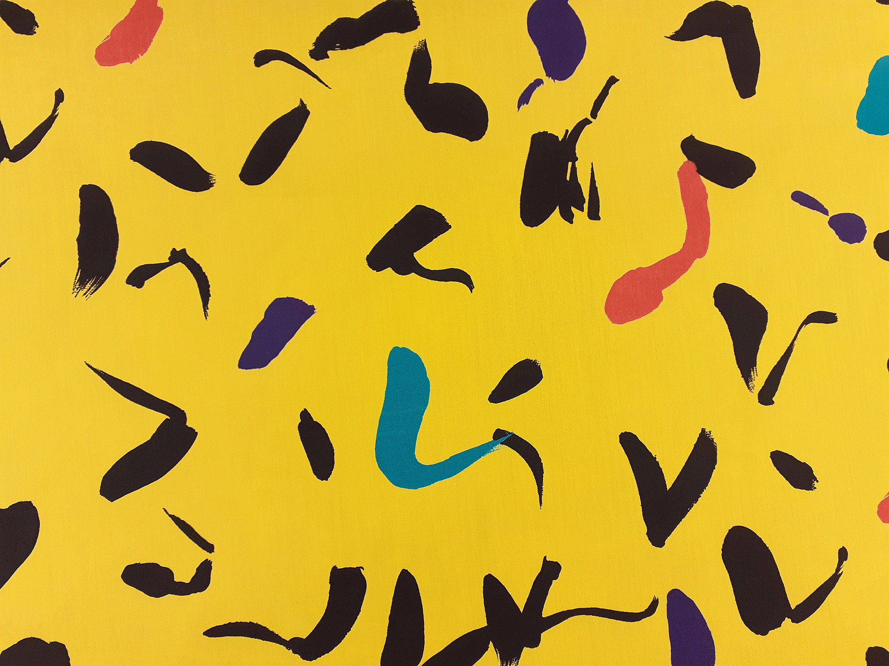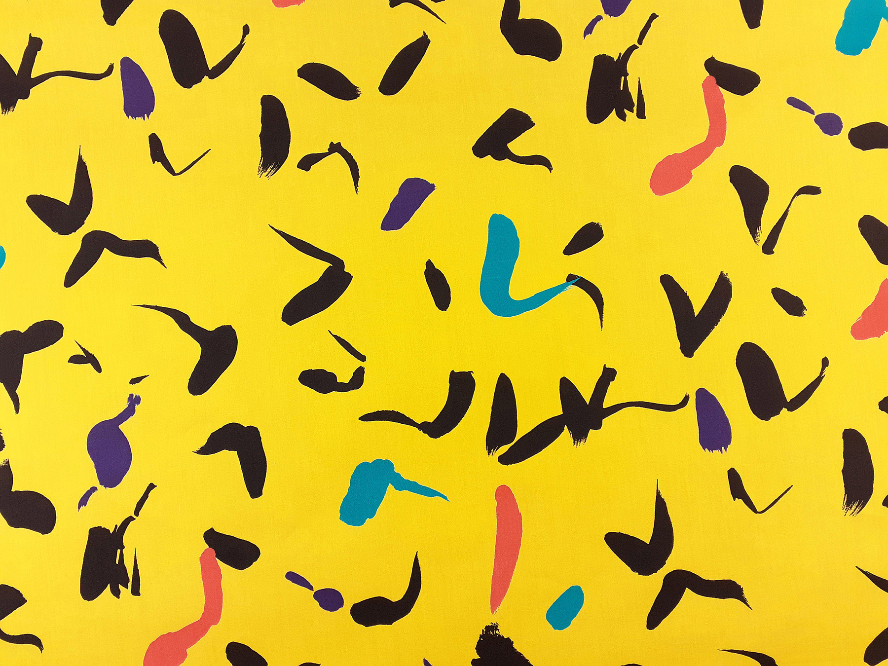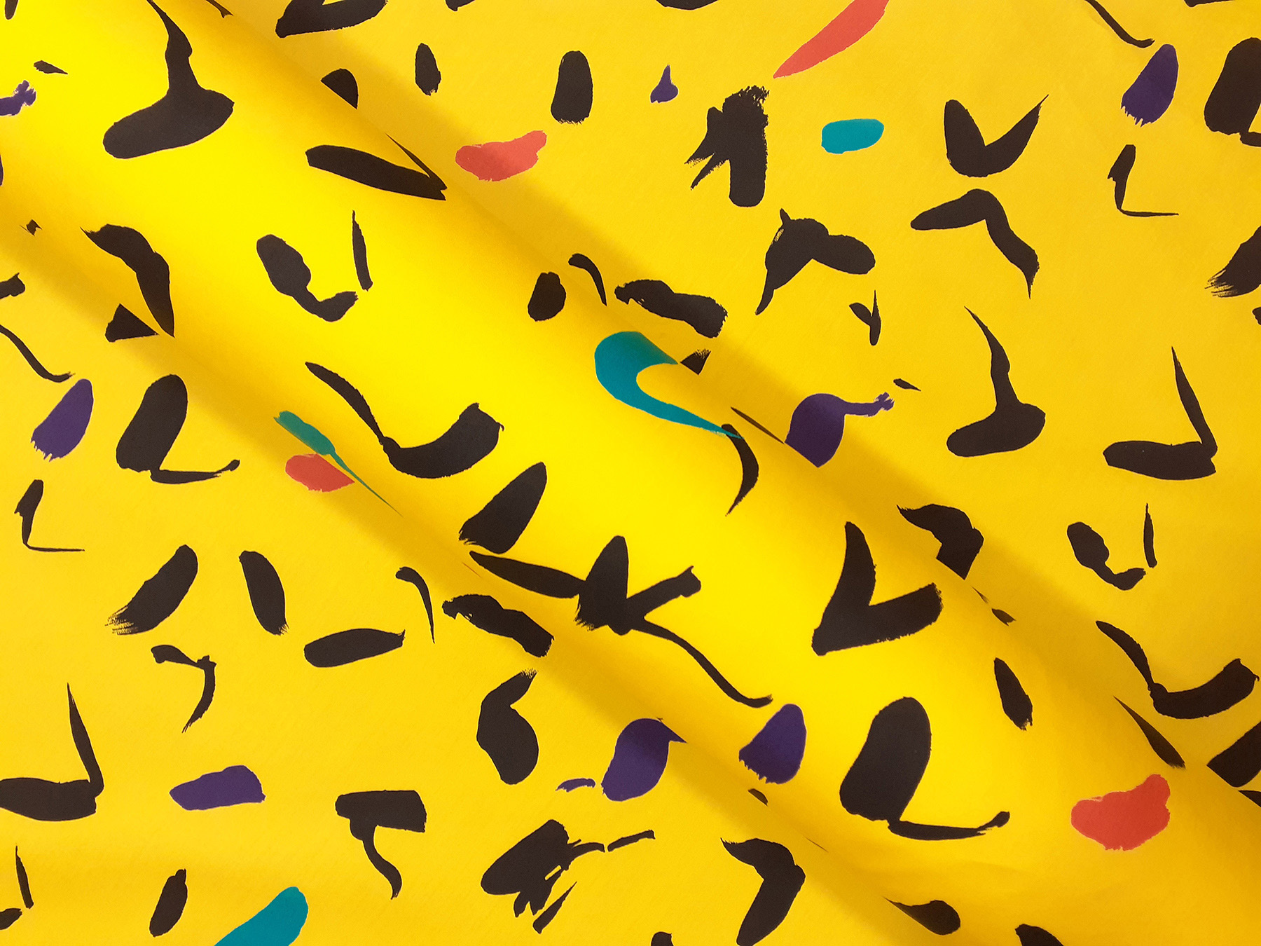 Popeline in cotone satinato fantasia astratta fondo giallo