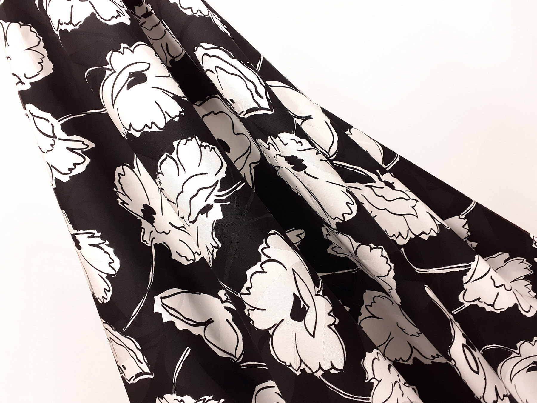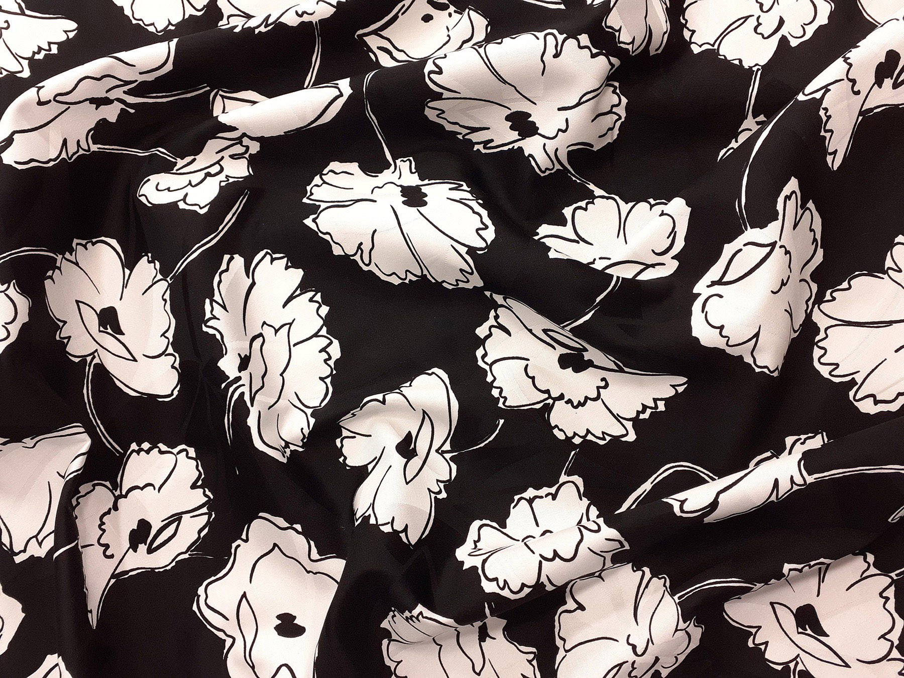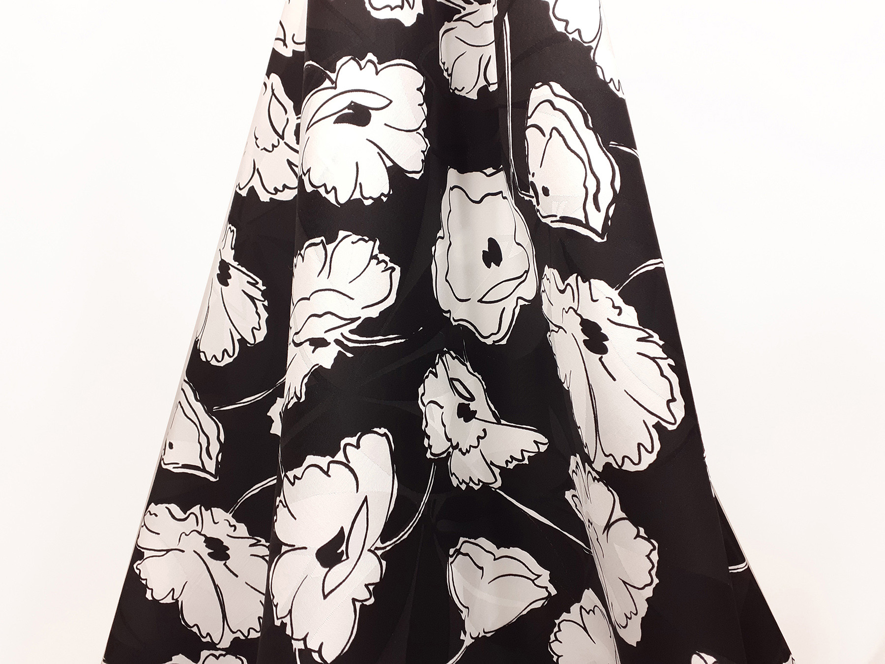 Raso in cotone jacquard fantasia floreale in bianco e nero
