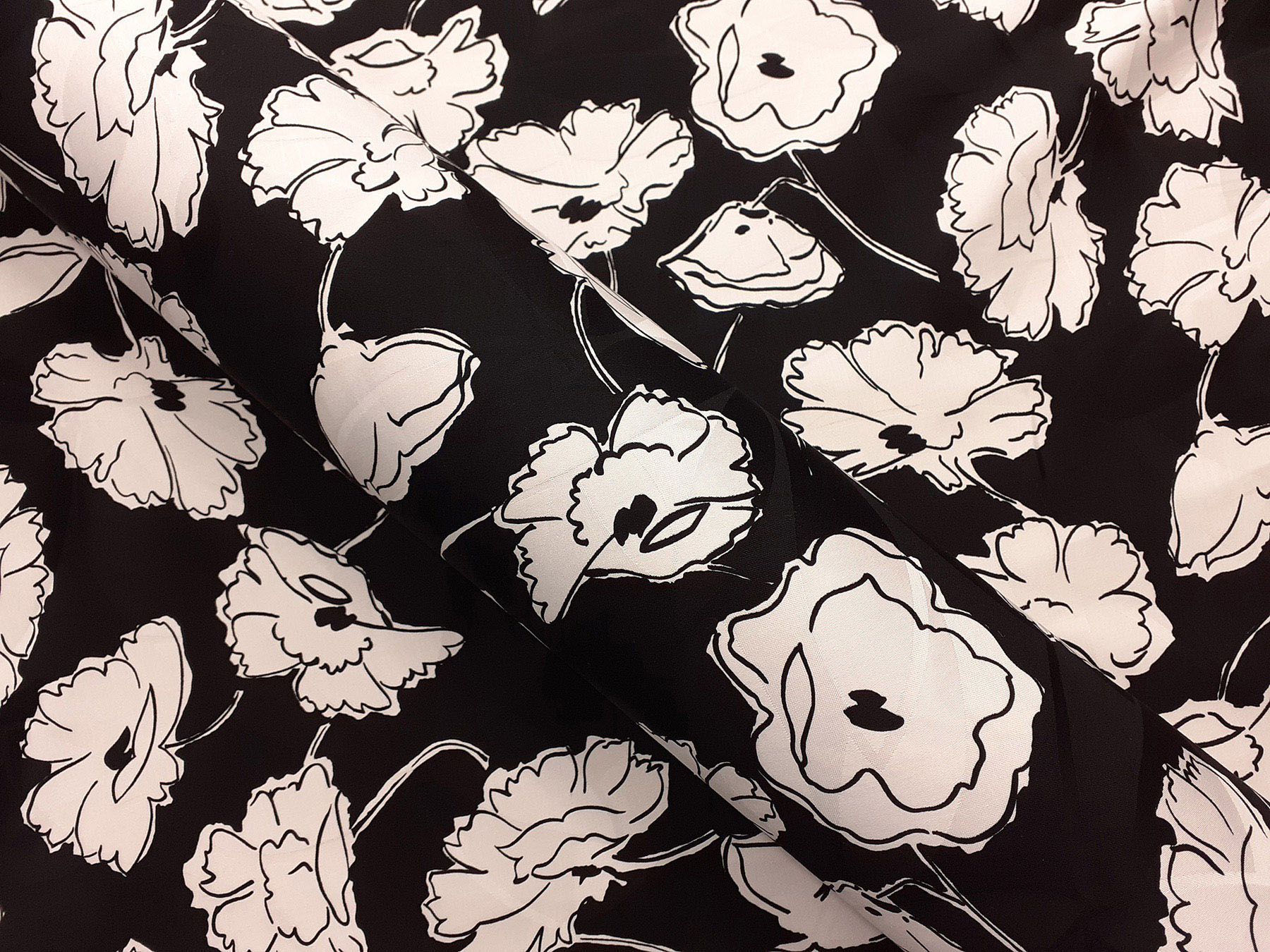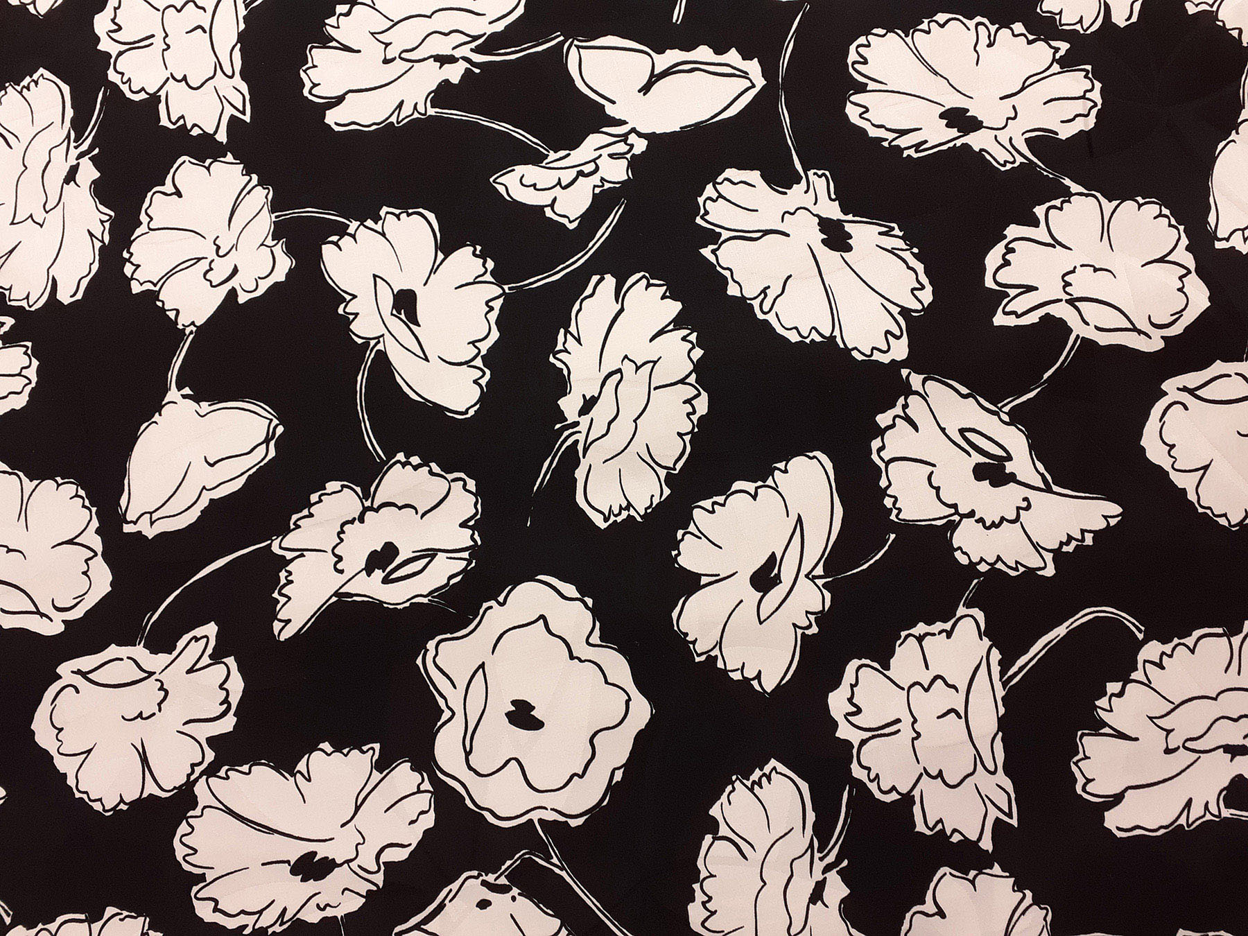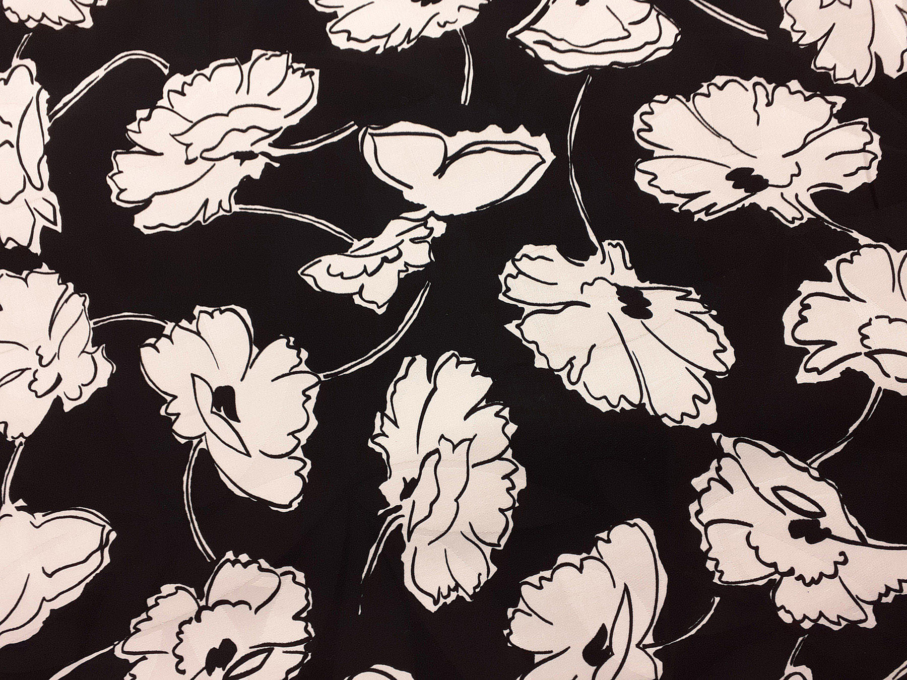 Raso in cotone jacquard fantasia floreale in bianco e nero
